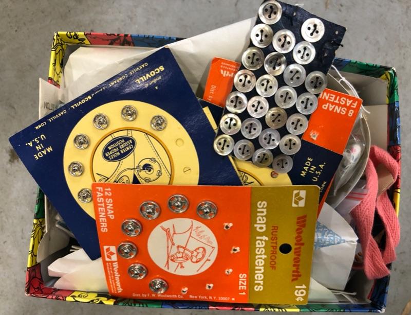2 boxes of Vintage Sewing Drawer Contents - What you see in this lot is what you get. Just as we pulled it from the sewing cabinet.