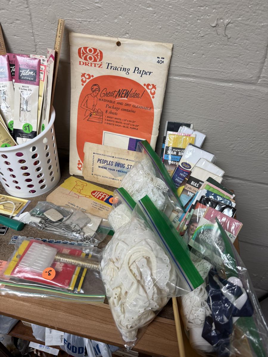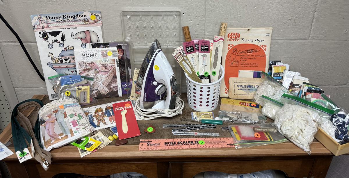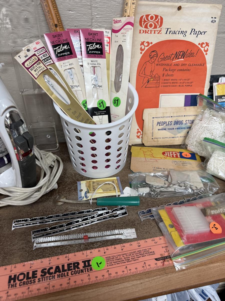 Zippers, patterns, tools, Black & Decker iron, accessories