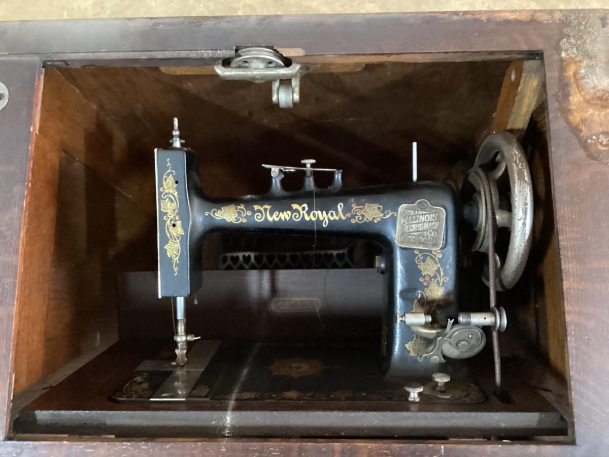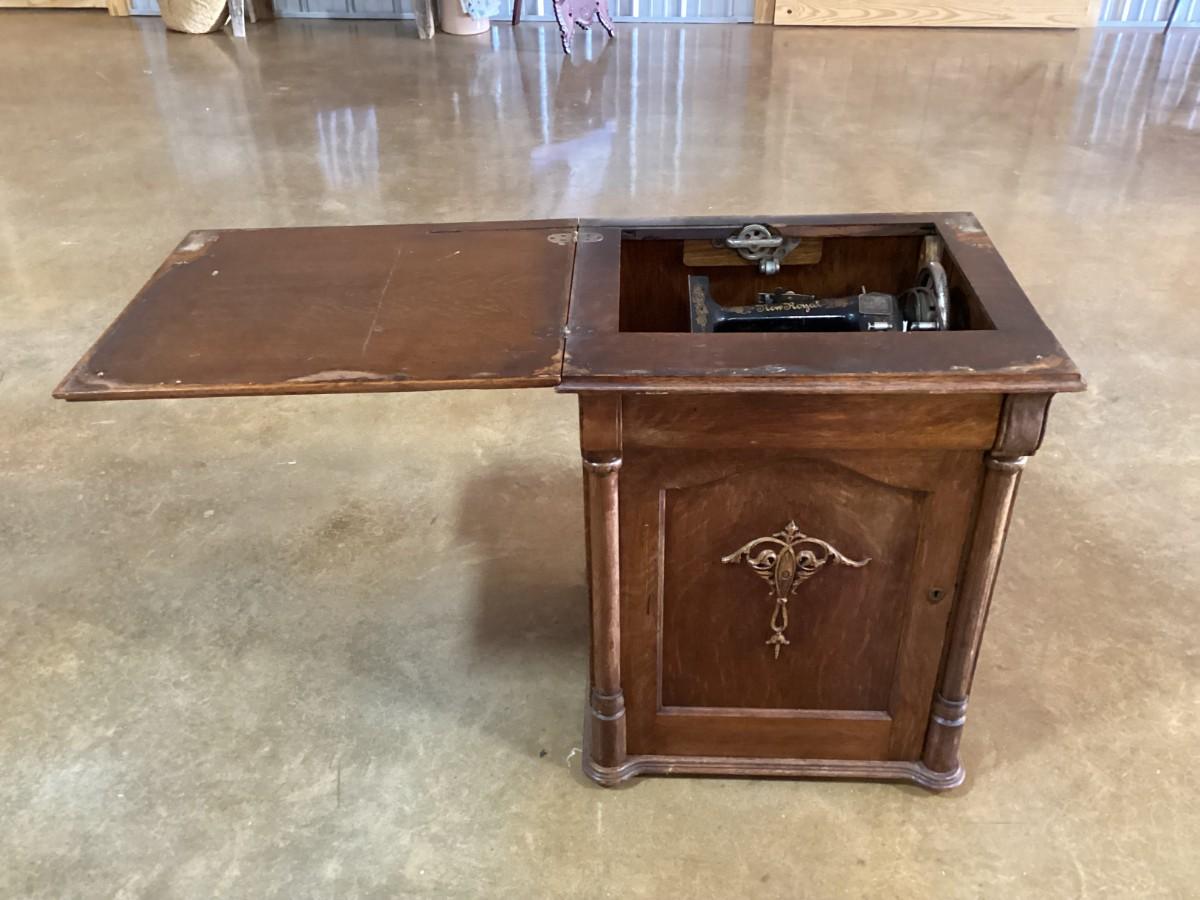 OLD New Royal pedal sewing machine in cabinet