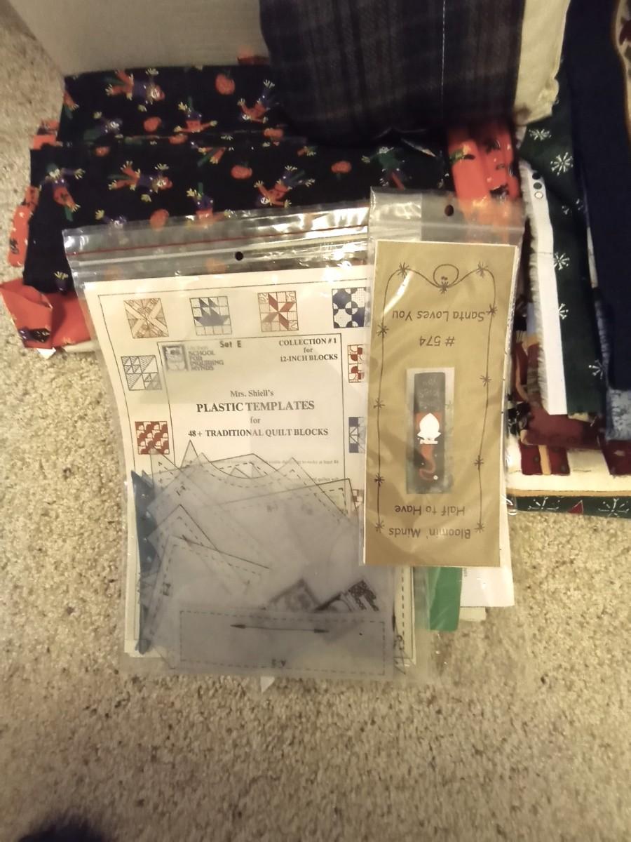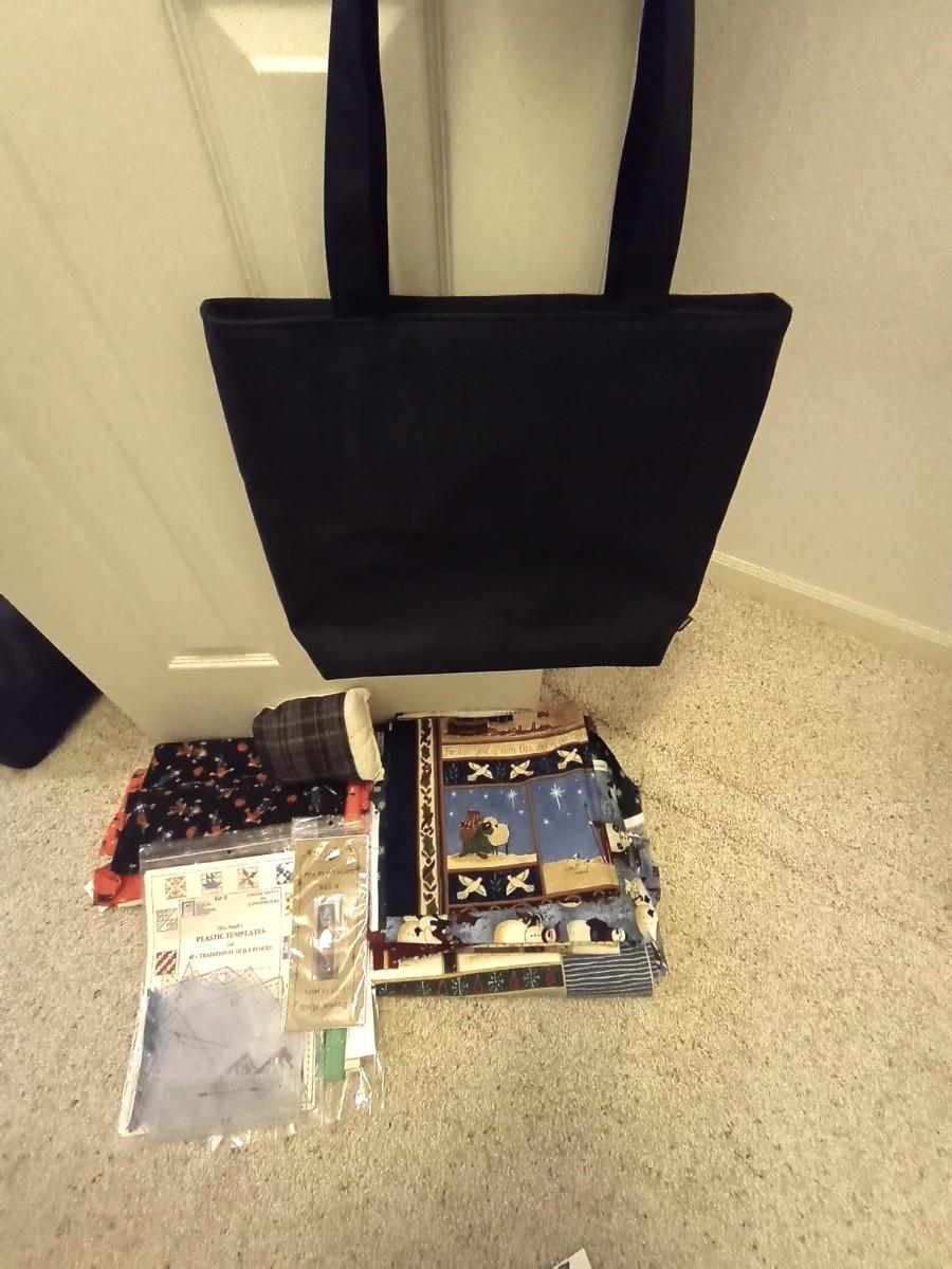 SEWING MATERIAL, PLASTIC QUILT TEMPLATES AND TOTE BAG