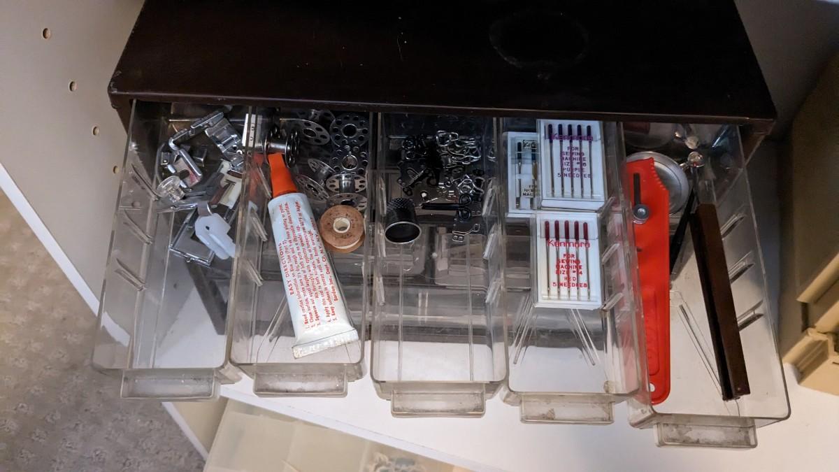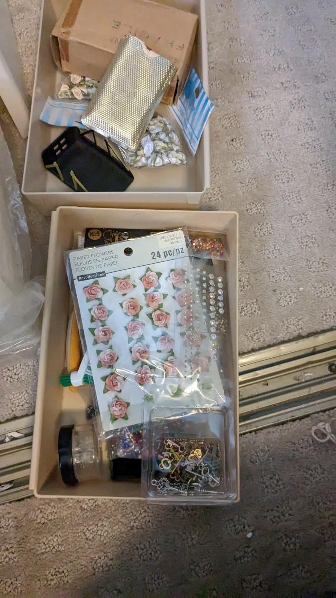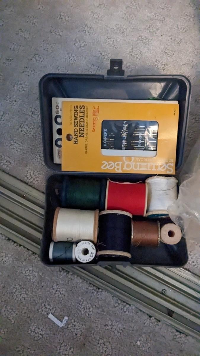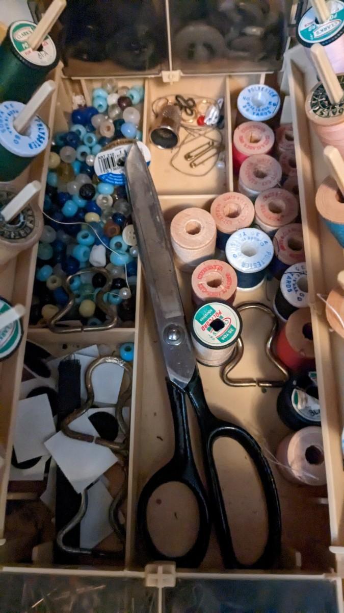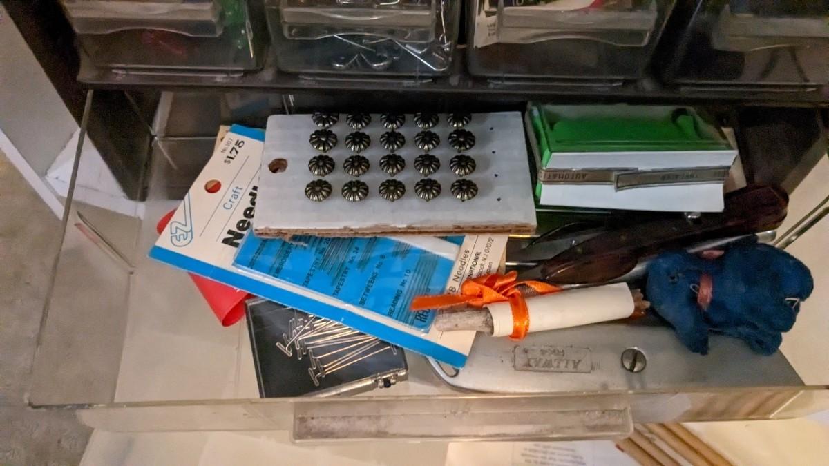 over 5 storage/organization cases plum full of vintage and contemporary sewing and crafting items. Lots of good stuff in here. bdrm2