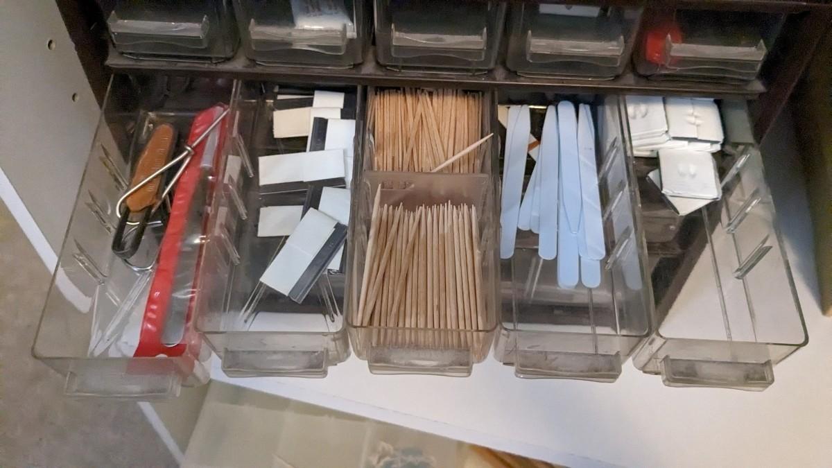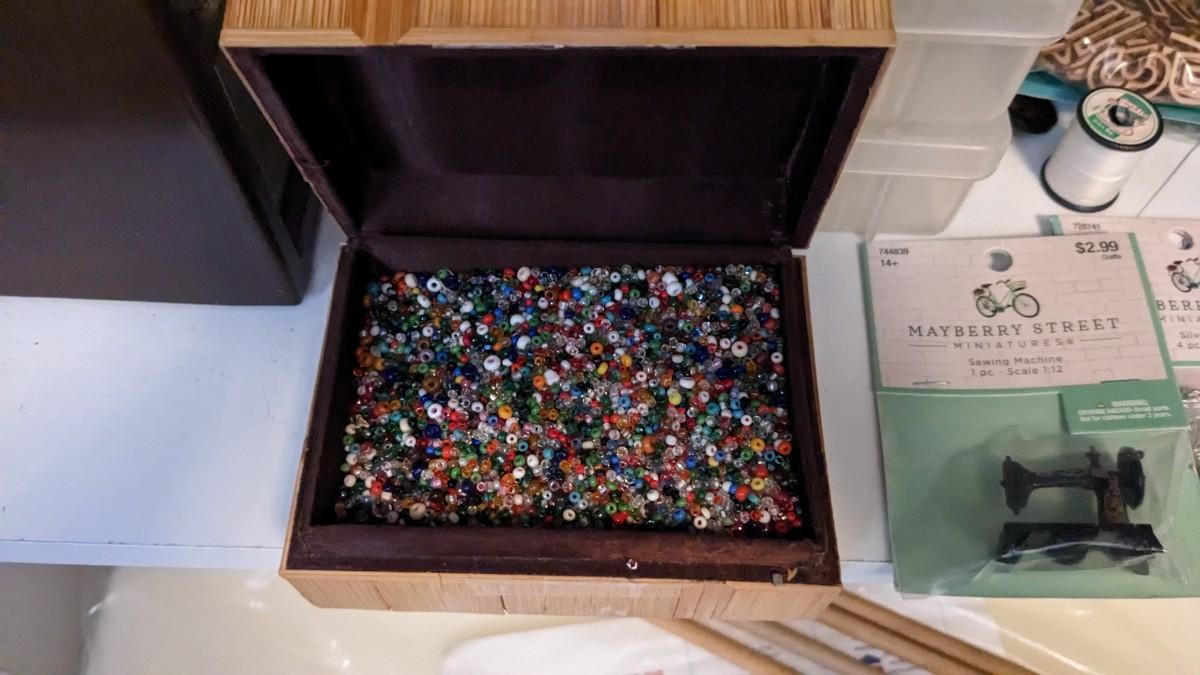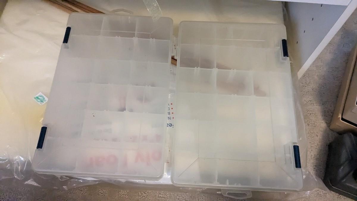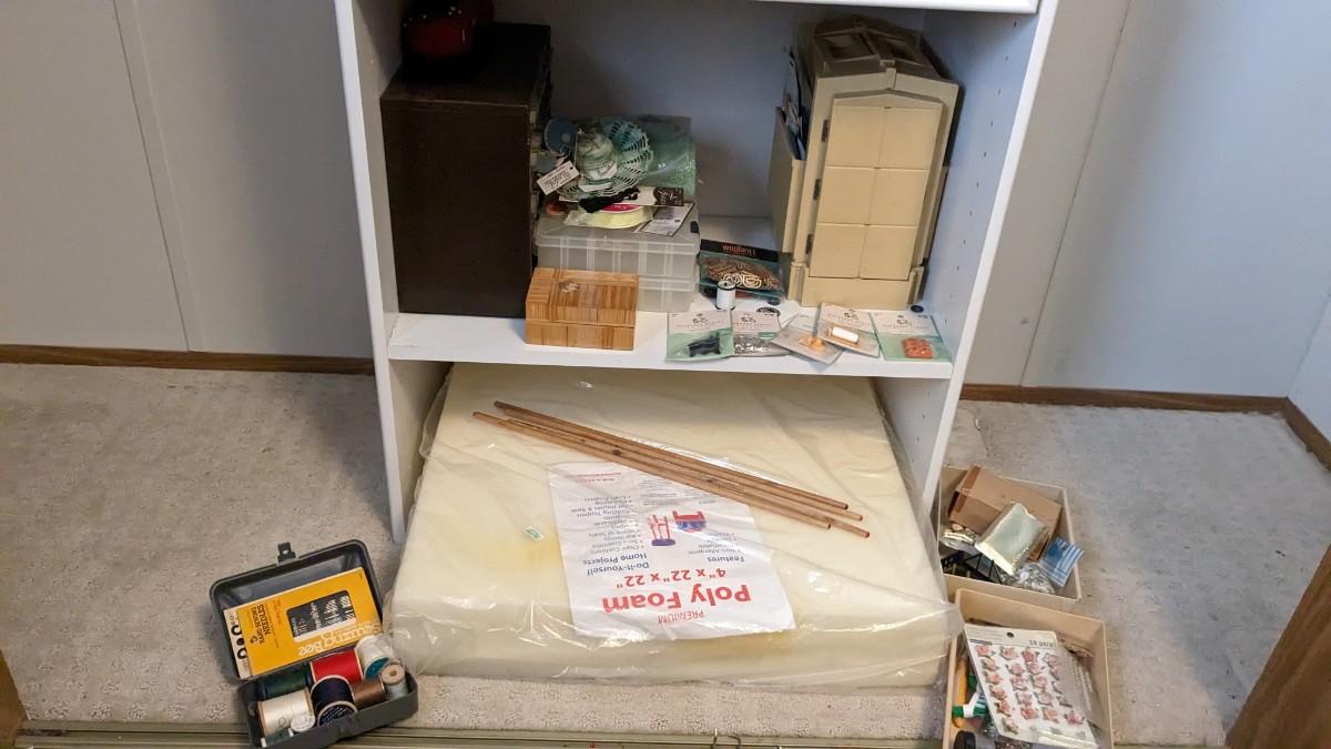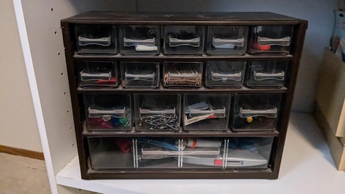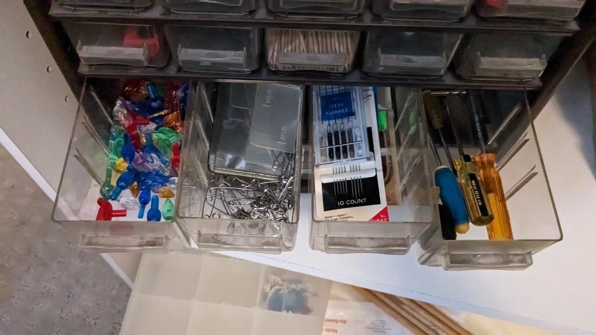 over 5 storage/organization cases plum full of vintage and contemporary sewing and crafting items. Lots of good stuff in here. bdrm2