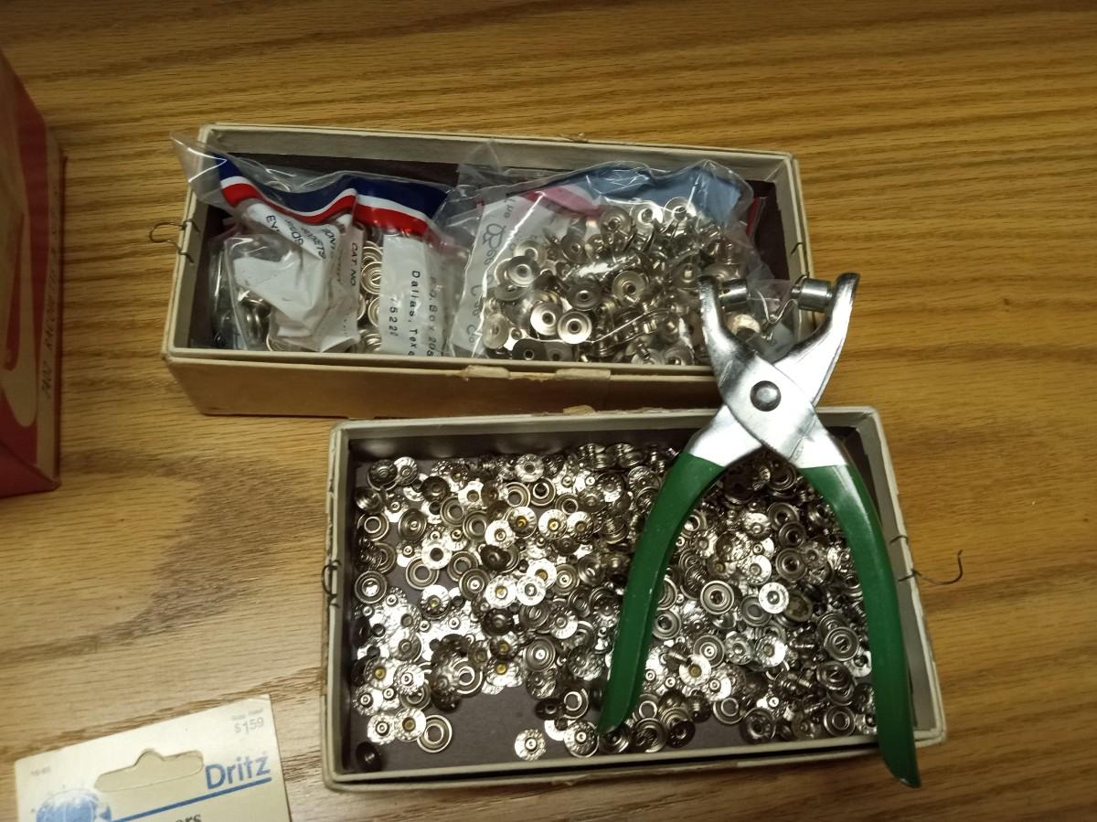 SEWING NOTIONS, MANY RIVETING SNAPS AND NECCHI MACHINR PARTS