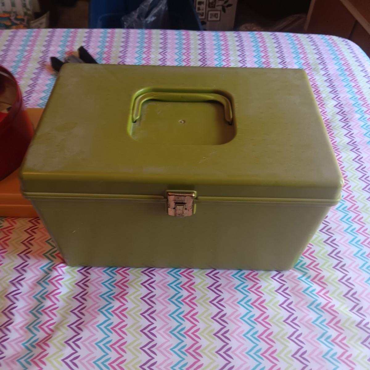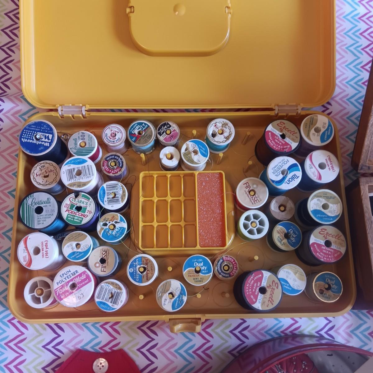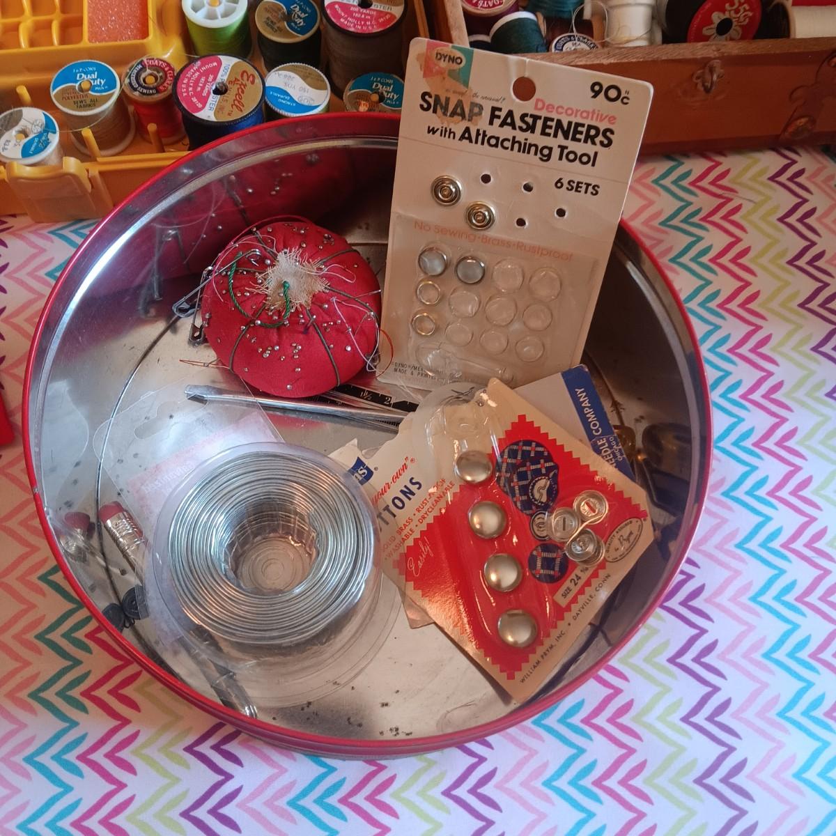 SEWING NOTIONS WITH 2 SEWING BOXES AND 1 WOOD BOX
