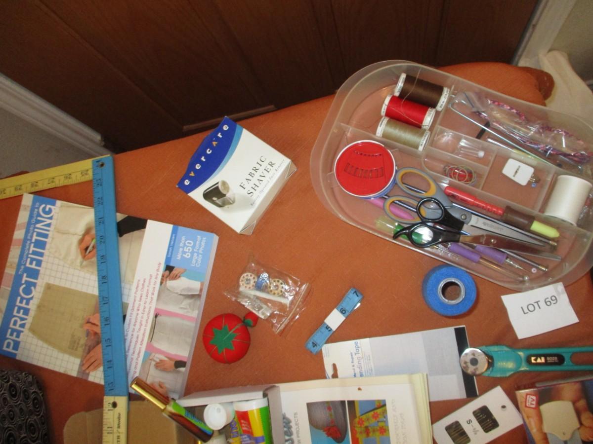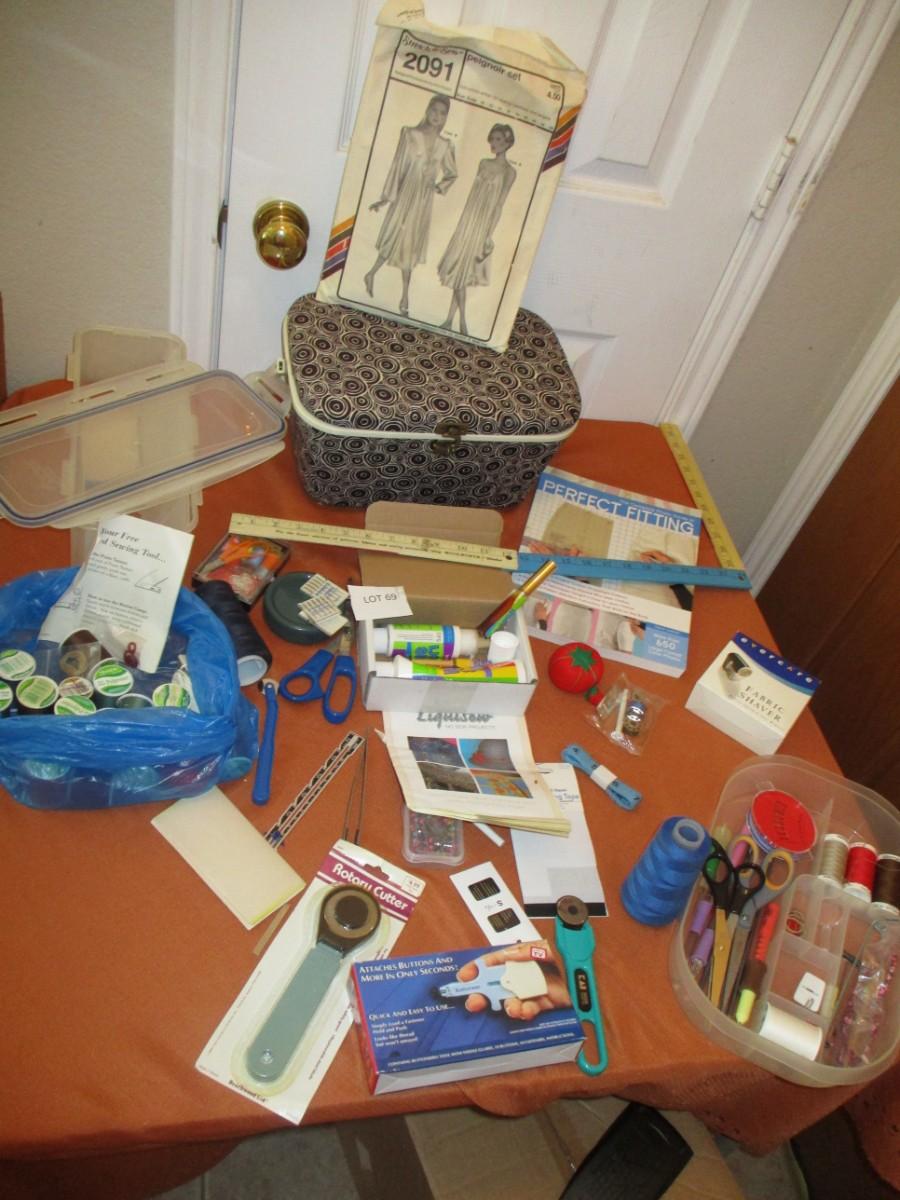 Thread, button Attacher, Sewing Box, rulers, Scissors, rotary Cutters, Fabric Shaver