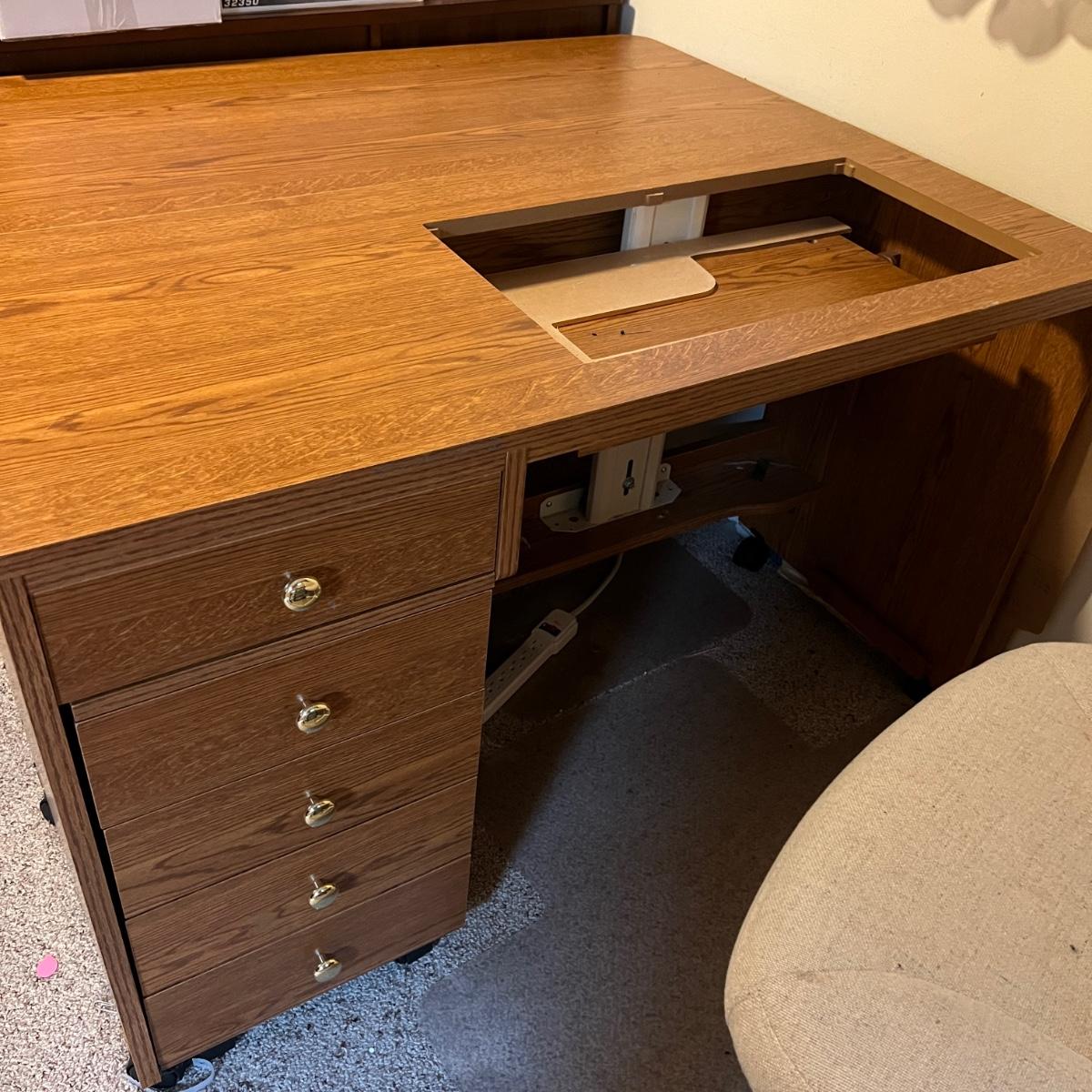 Quilting Sewing Table Desk w Chair, Rolling Cabinet
