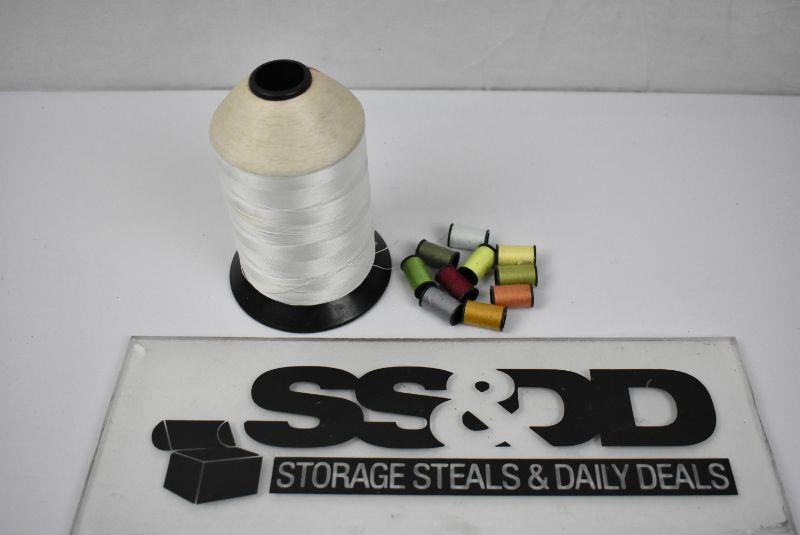 Sewing Thread: 1 large bolt of white, 10 tiny bolts