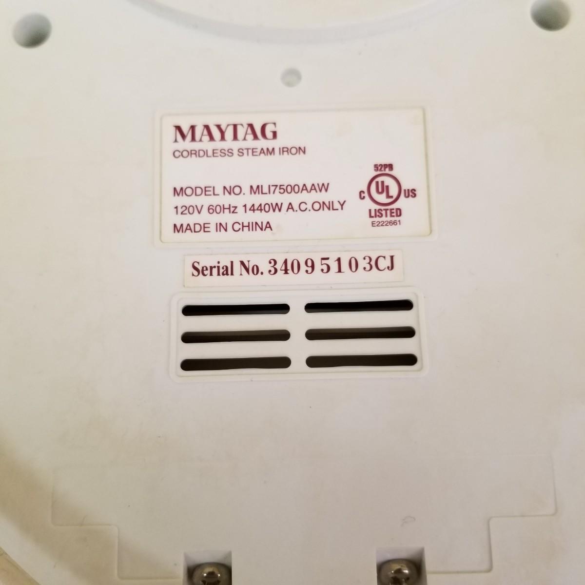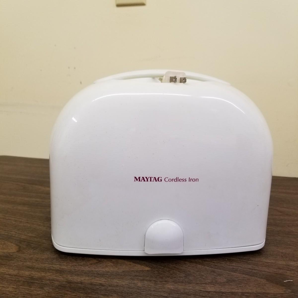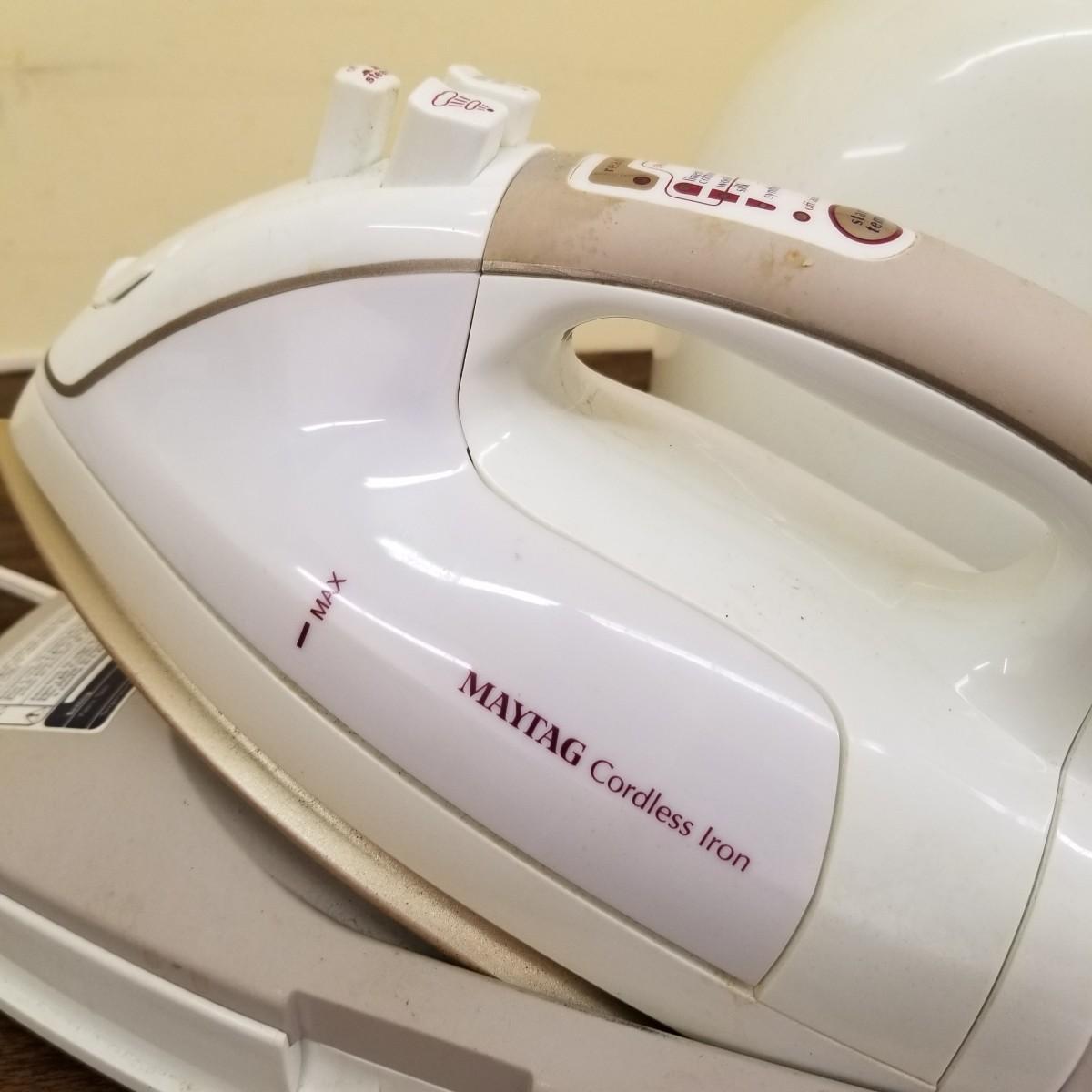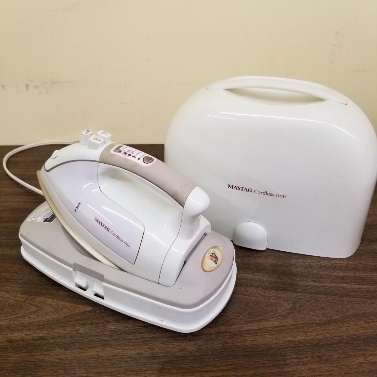 One standard size Seymour brand ironing board, 14.5"x55" with adjustable height. Cover has small hole in it. Three steam irons; one T-Fal Ultraglide, one Rowenta Sew n Press, and a Maytag cordless iron with charging stand and cover. All irons tested working. See photos for details. Local pickup only.