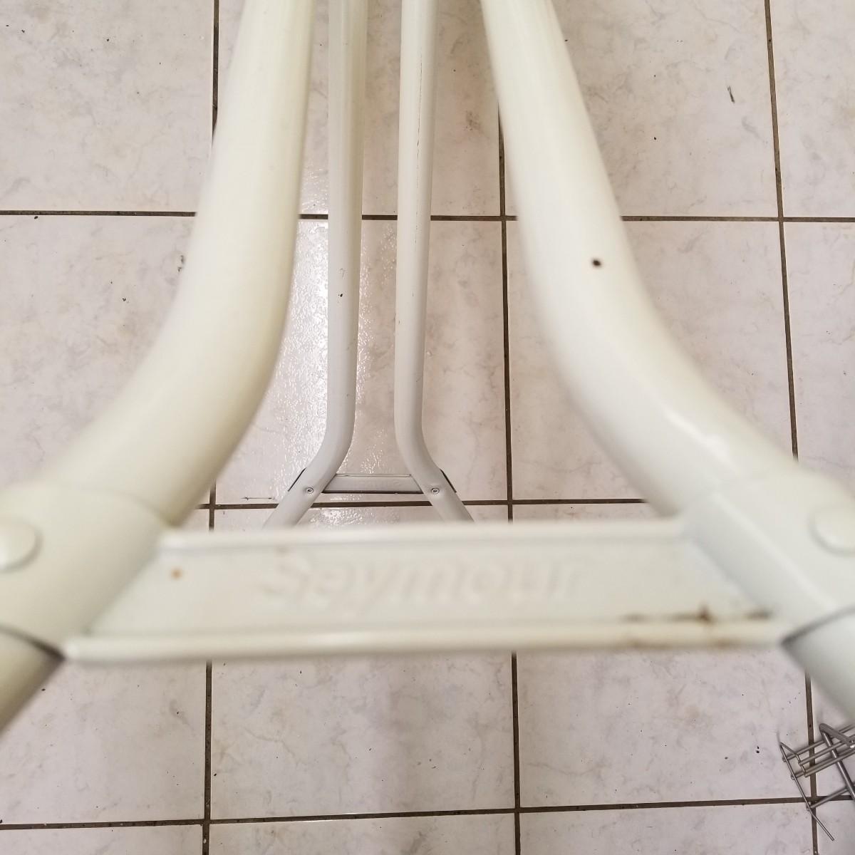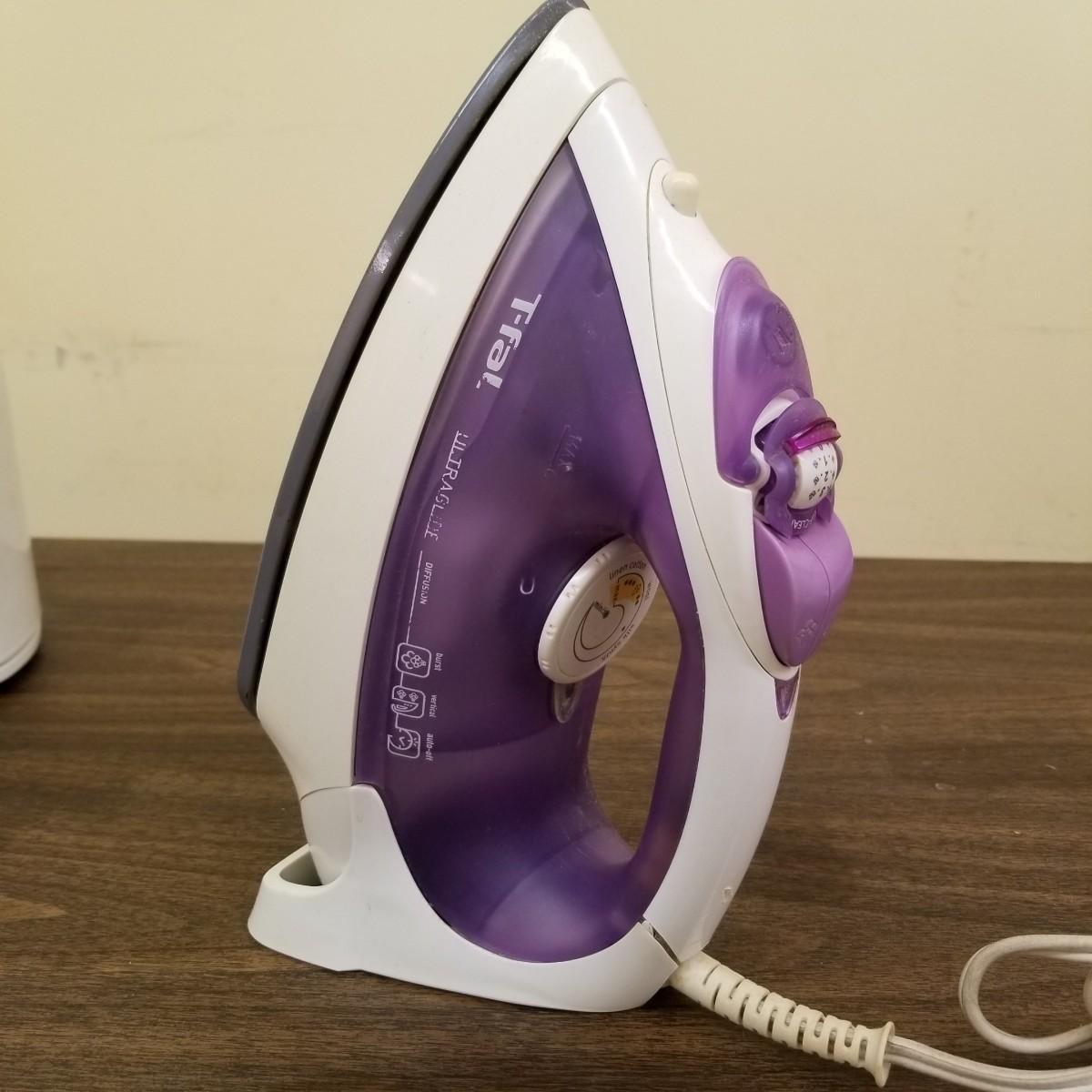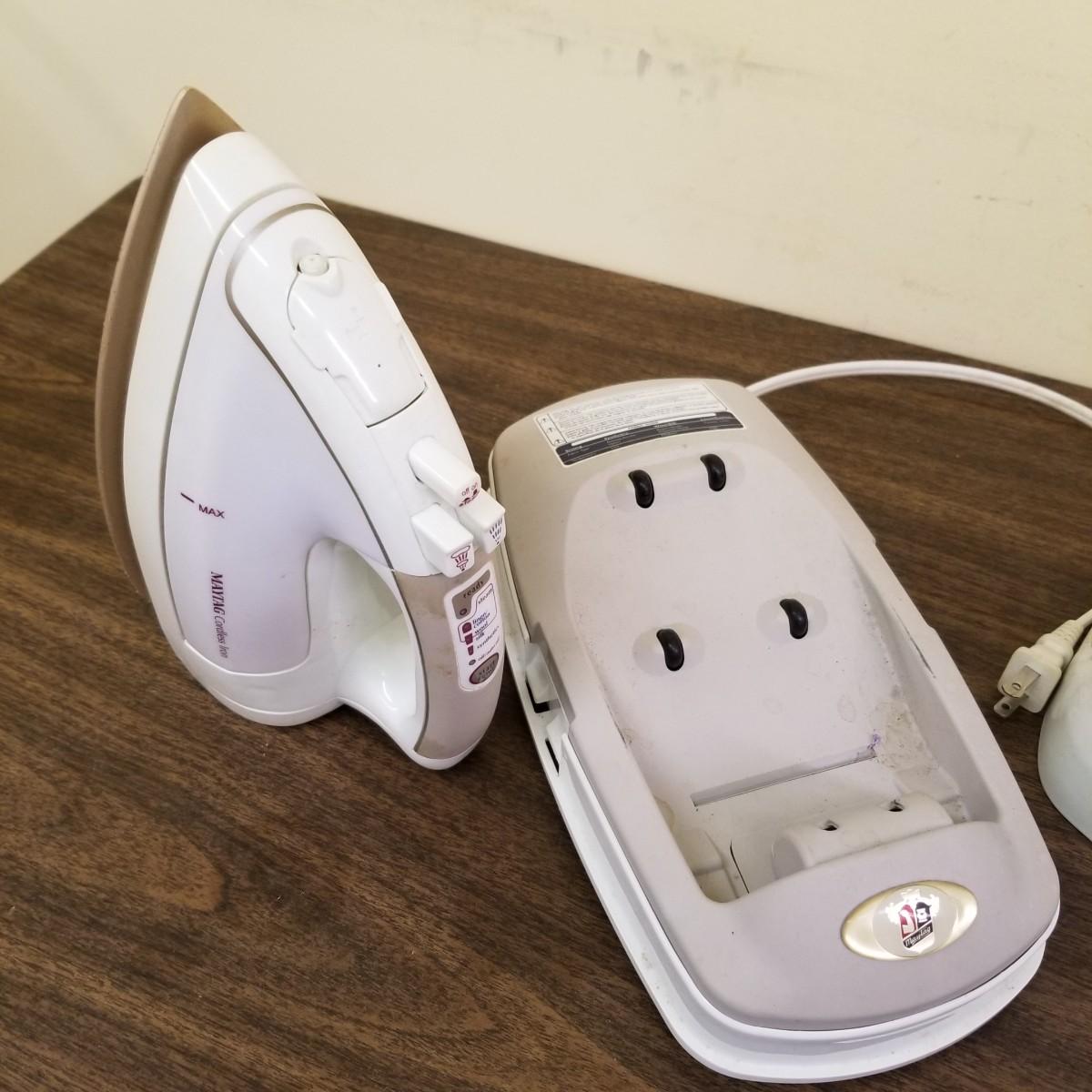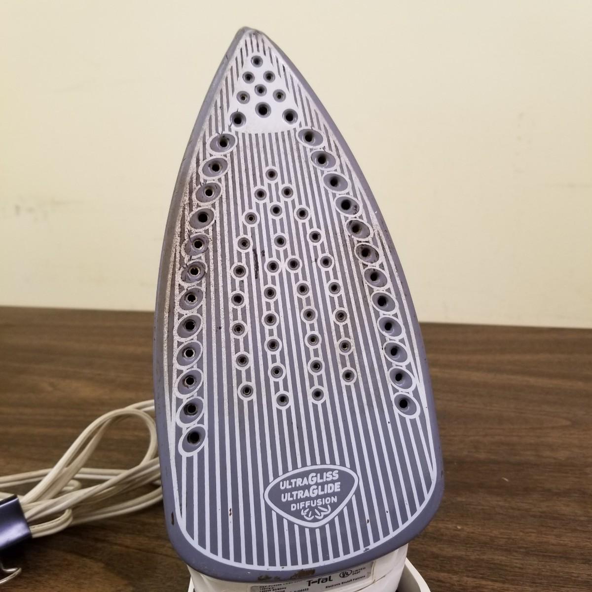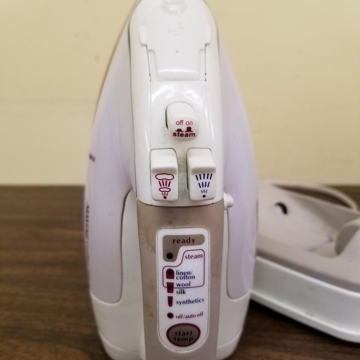 One standard size Seymour brand ironing board, 14.5"x55" with adjustable height. Cover has small hole in it. Three steam irons; one T-Fal Ultraglide, one Rowenta Sew n Press, and a Maytag cordless iron with charging stand and cover. All irons tested working. See photos for details. Local pickup only.