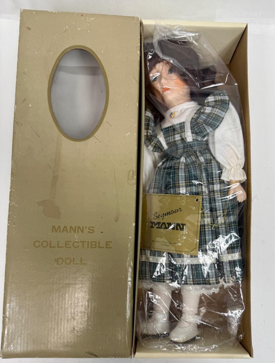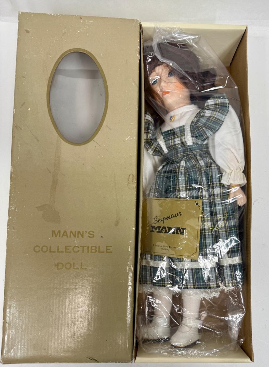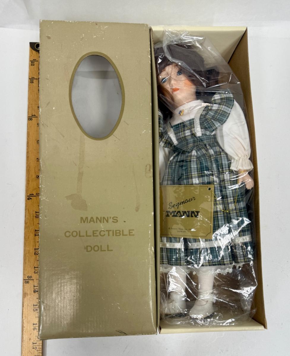 Seymour Mann's Collectible Doll in Green Blue Plaid Dress 15" tall