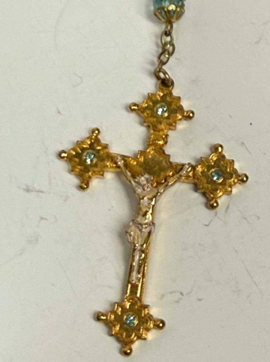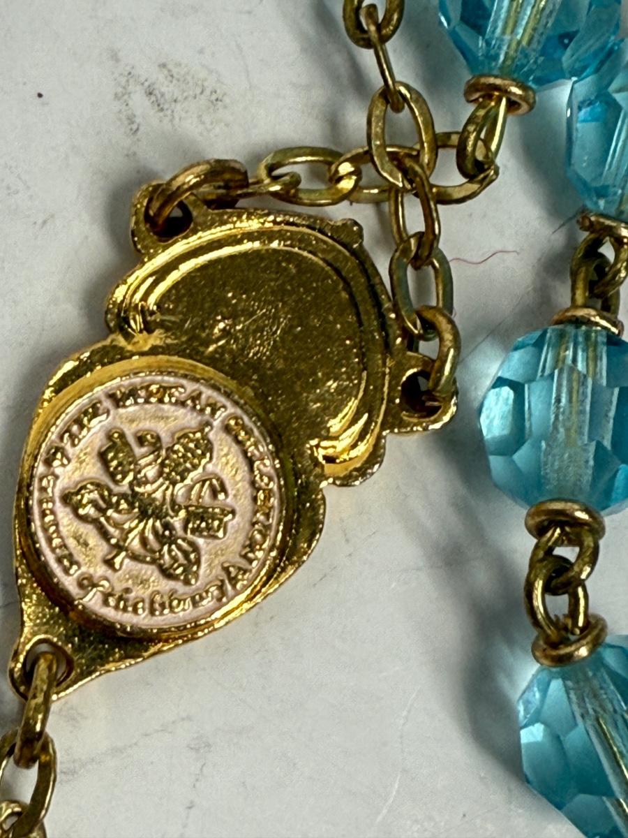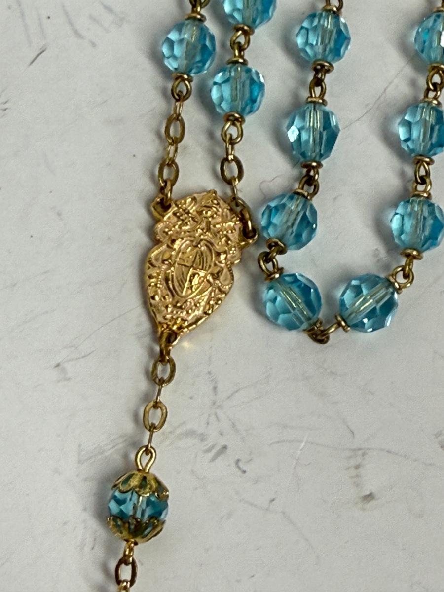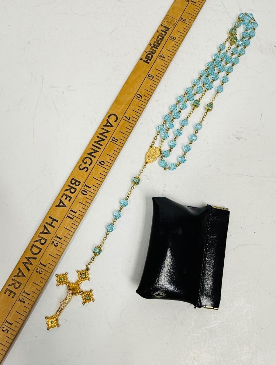 Vintage Turquoise Blue Acrylic Bead Rosary Beads and Pouch