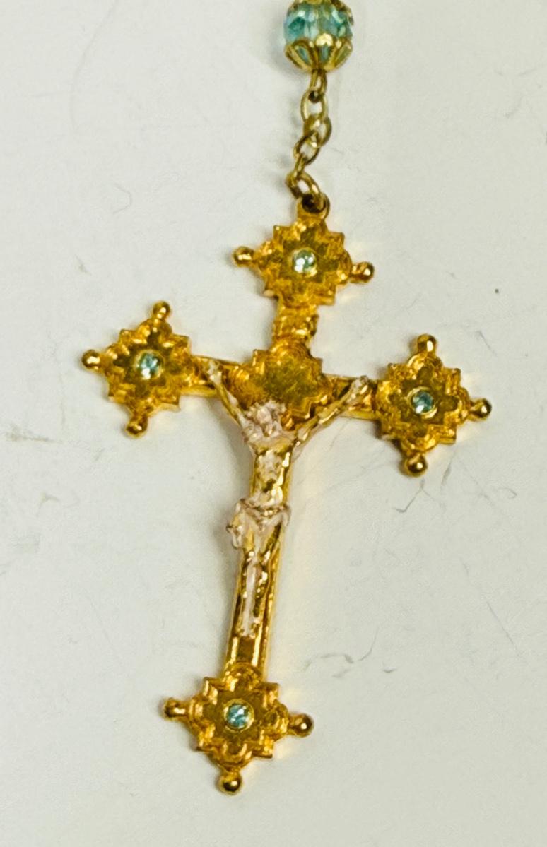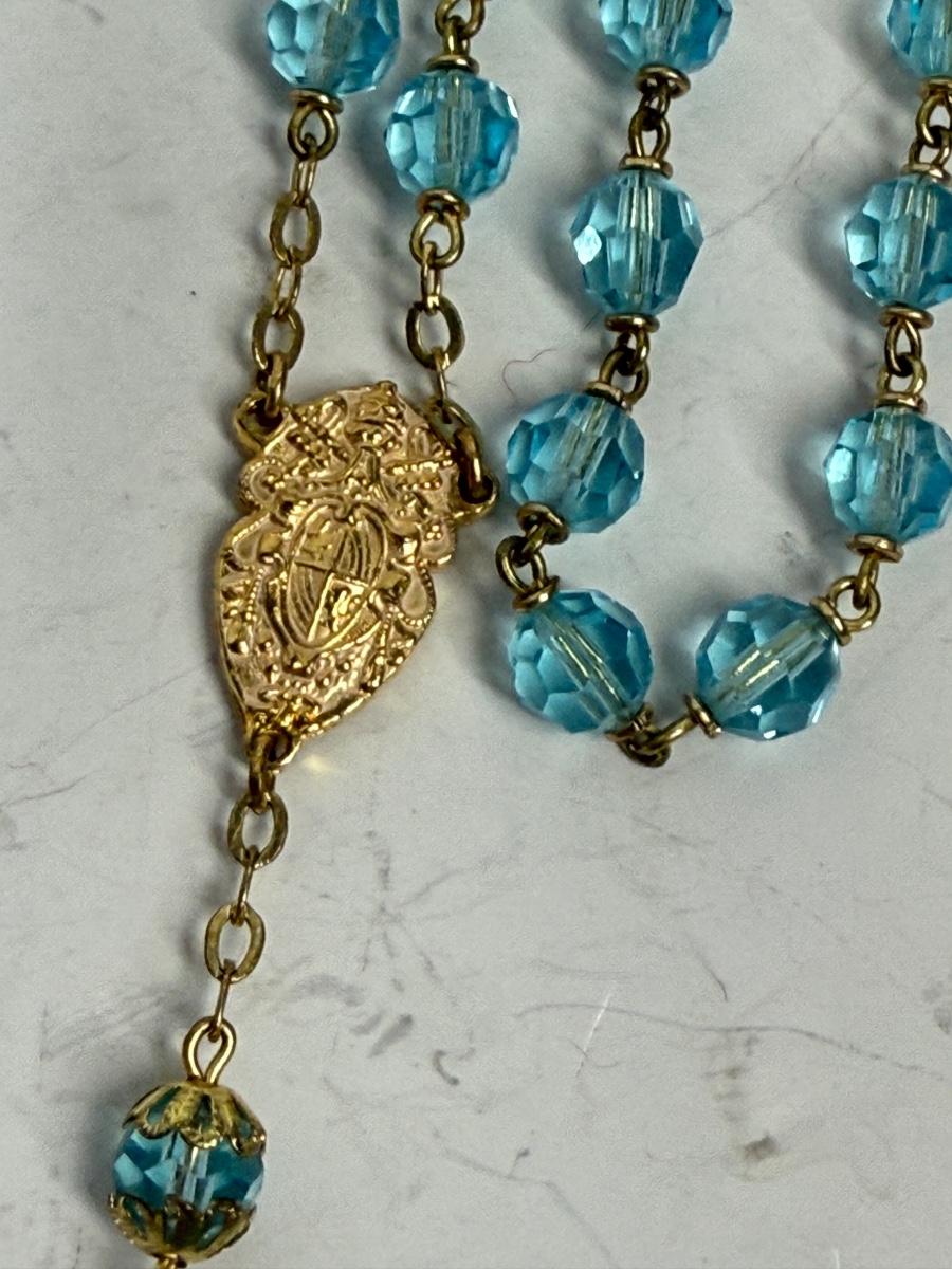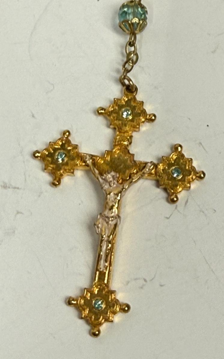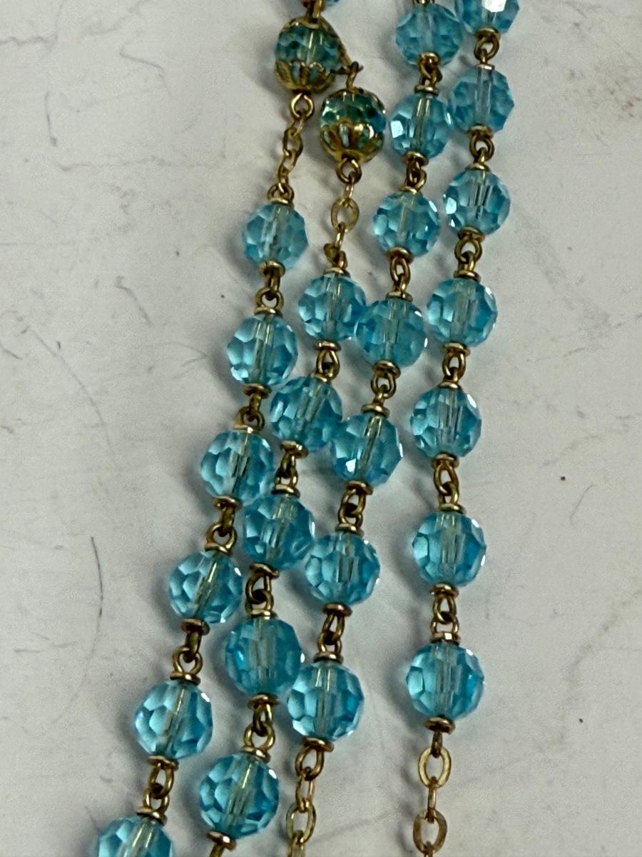 Vintage Turquoise Blue Acrylic Bead Rosary Beads and Pouch