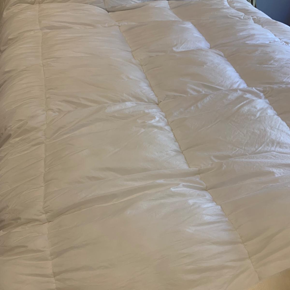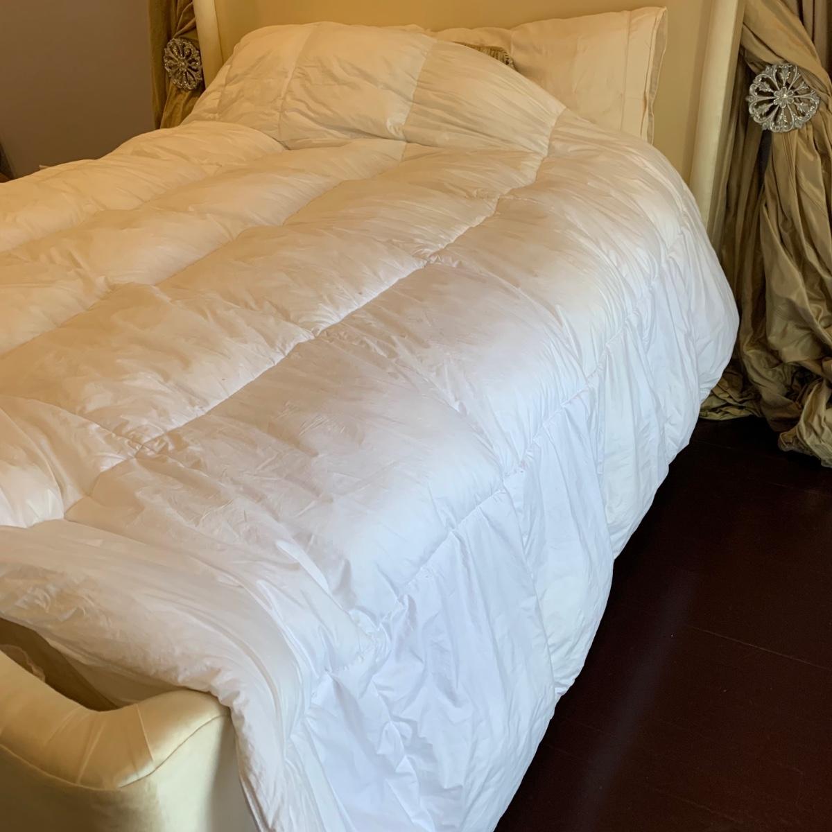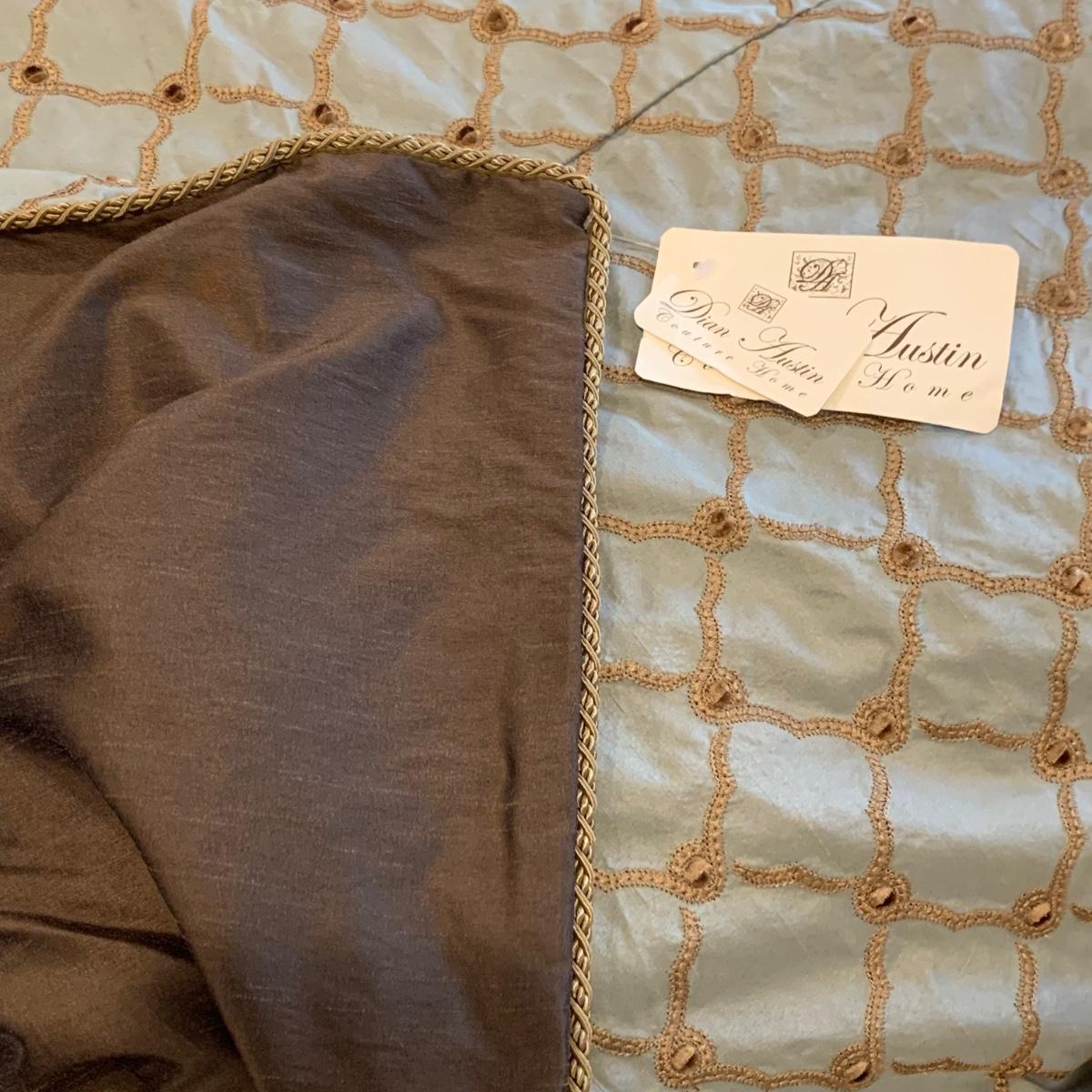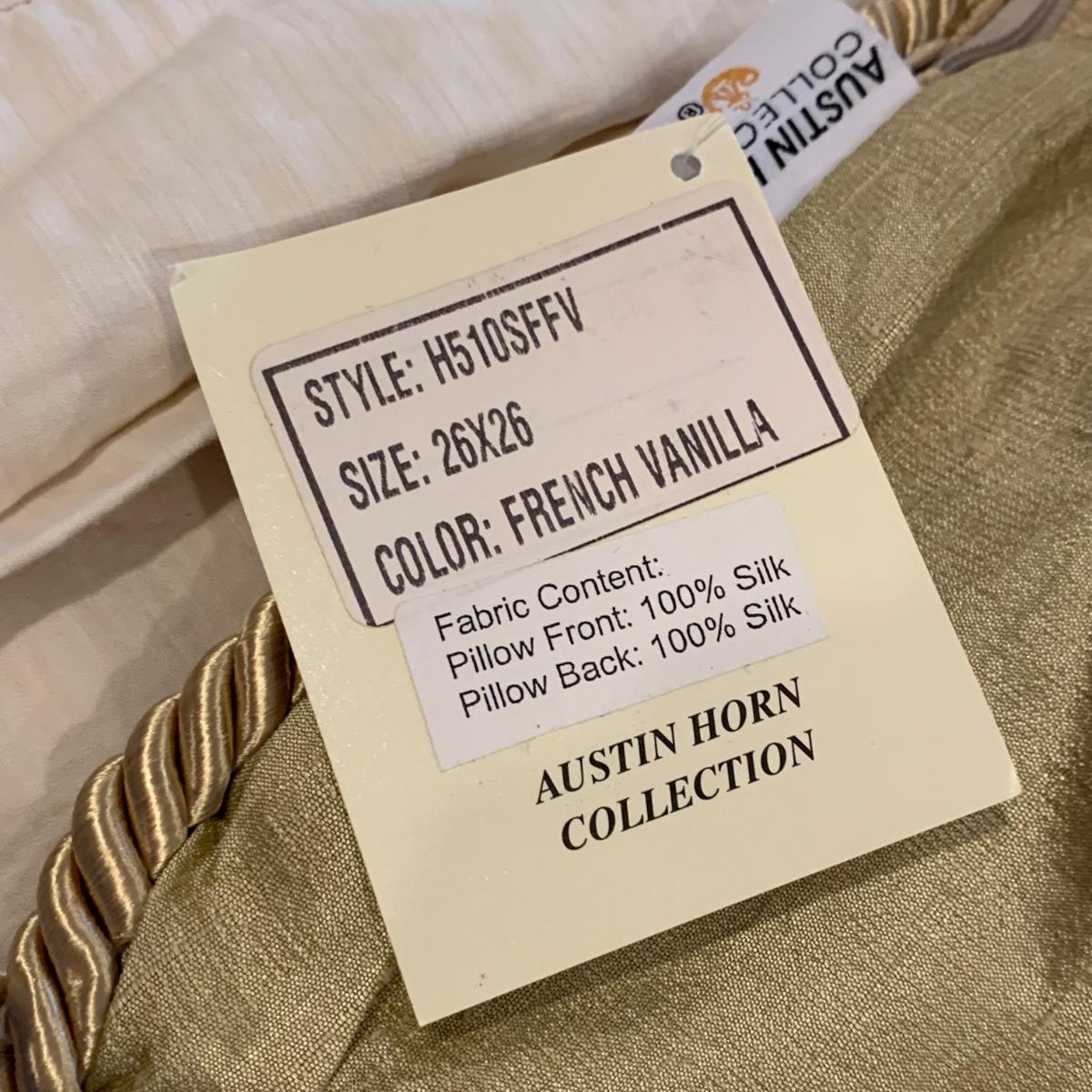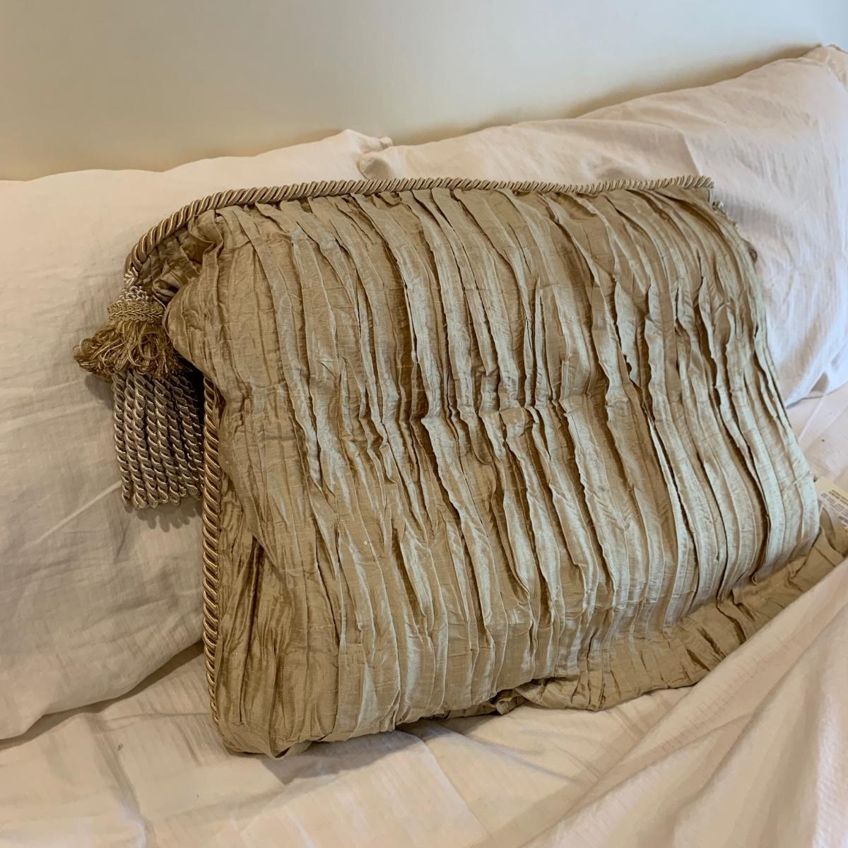 Two queen size sheet sets, one by Sferra and the other Ralph Lauren. The Ralph Lauren set is a cotton/silk blend that feels luxurious. Also included is a silk Austin Horn pillowcase with tassels and a Dian Austin queen size duvet cover, as well as a king size Cuddledown duvet with king size linen duvet cover. There is also a Ralph Lauren queen size mattress pad.