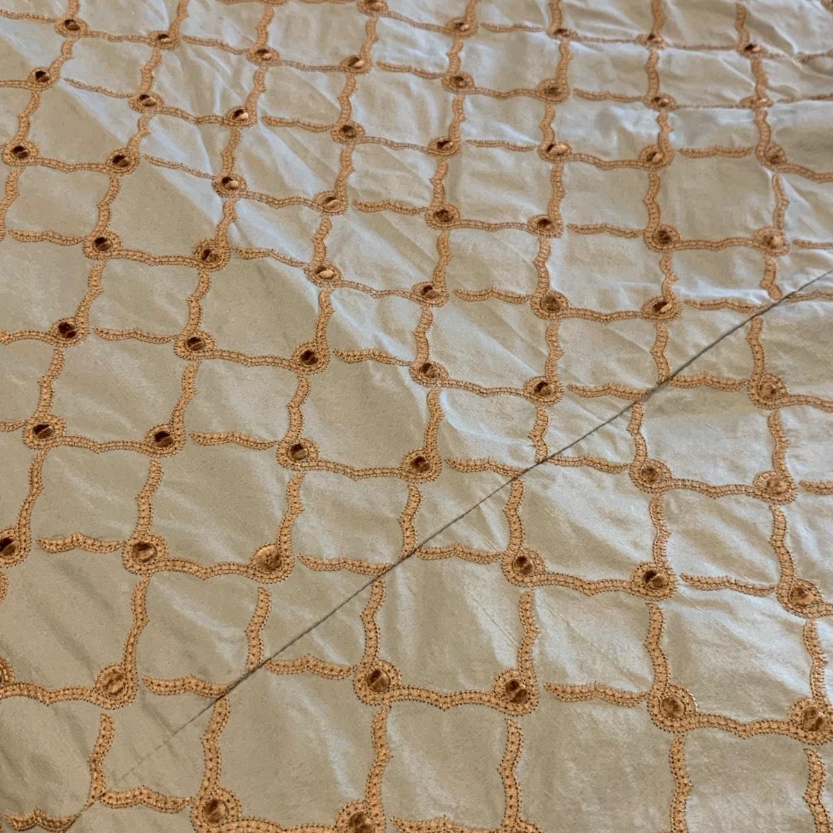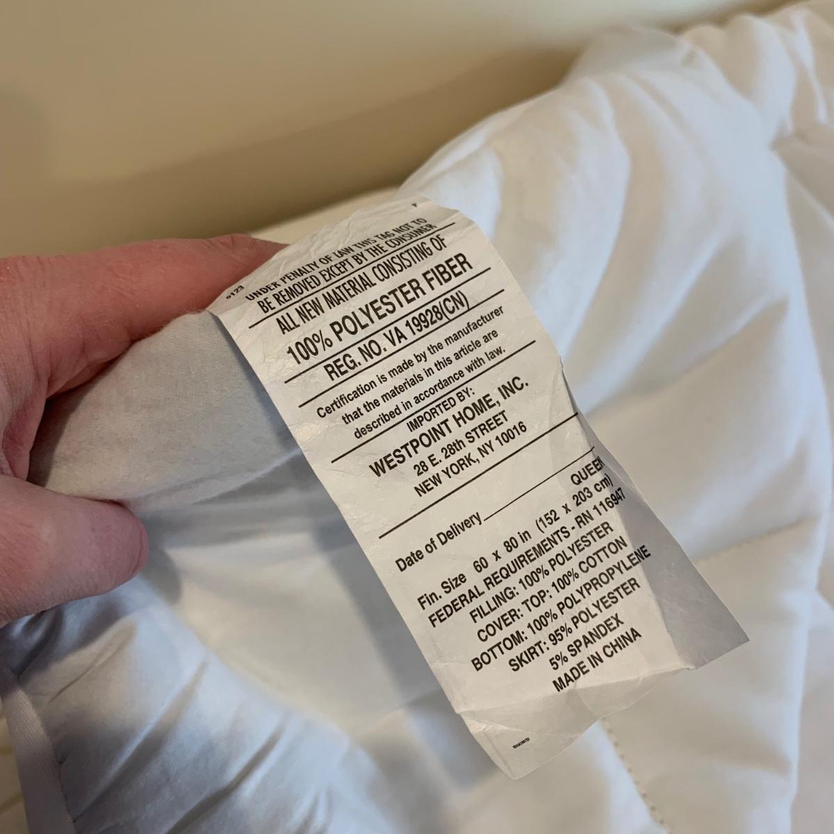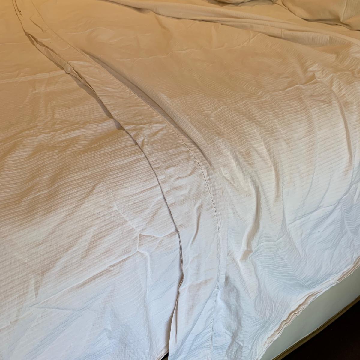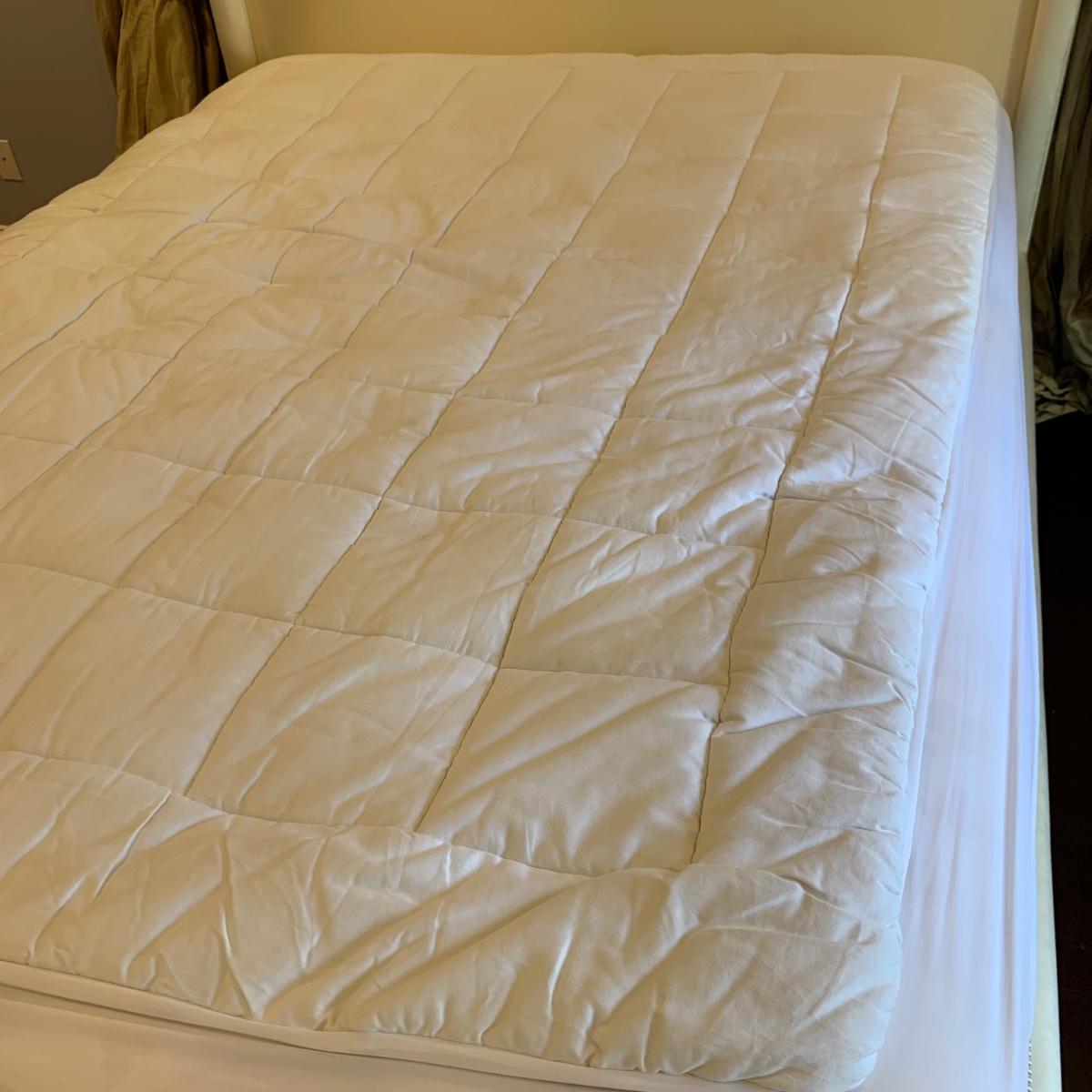 Two queen size sheet sets, one by Sferra and the other Ralph Lauren. The Ralph Lauren set is a cotton/silk blend that feels luxurious. Also included is a silk Austin Horn pillowcase with tassels and a Dian Austin queen size duvet cover, as well as a king size Cuddledown duvet with king size linen duvet cover. There is also a Ralph Lauren queen size mattress pad.