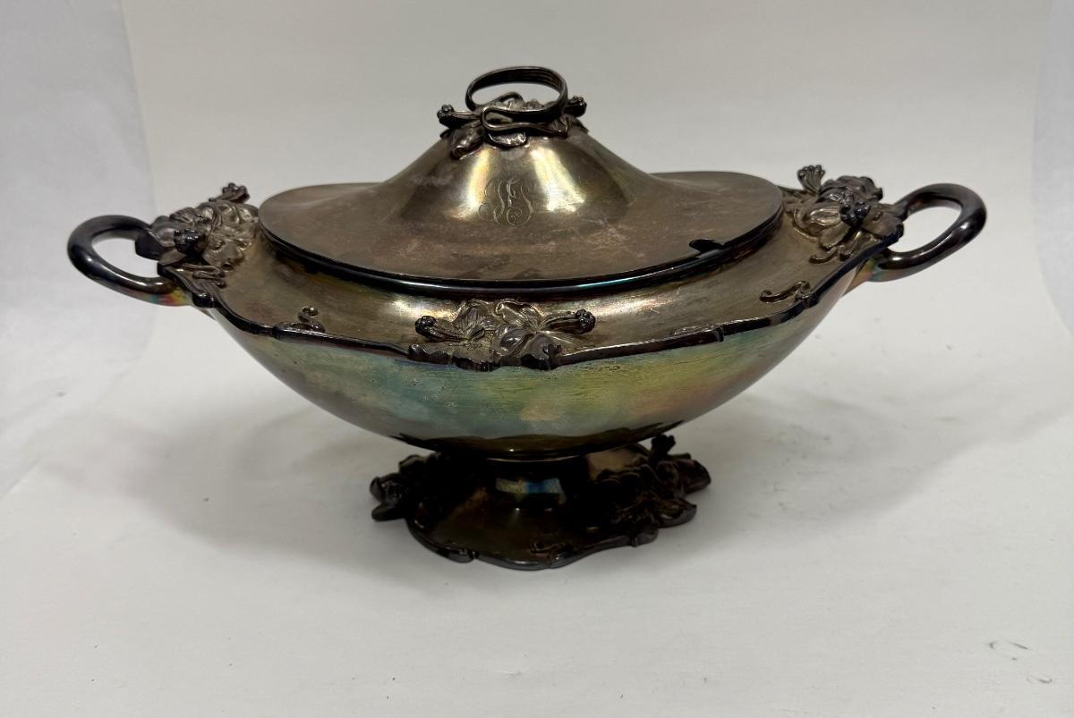 Meriden Silver Plate Oval Lidded Tureen Serving Bowl