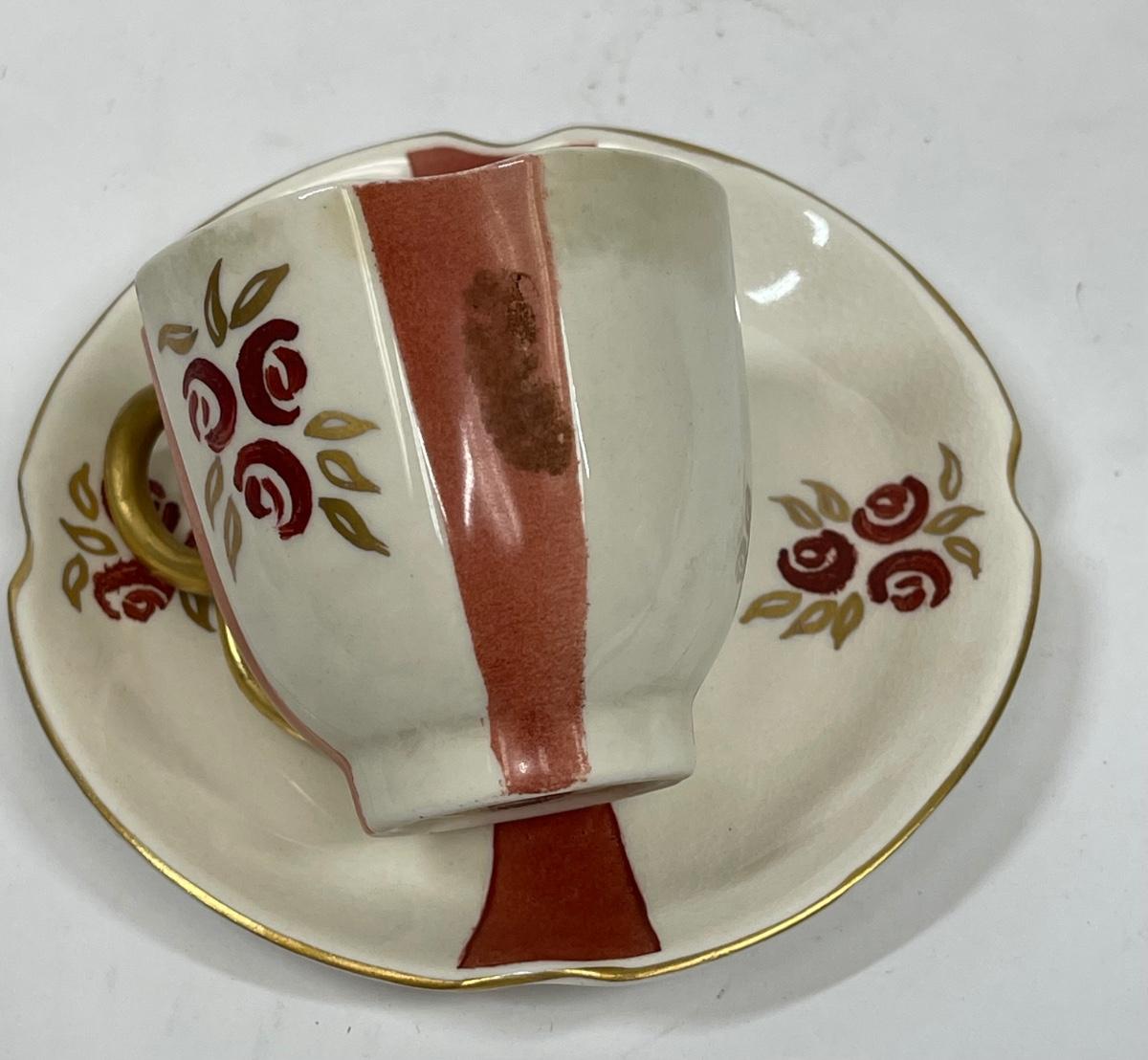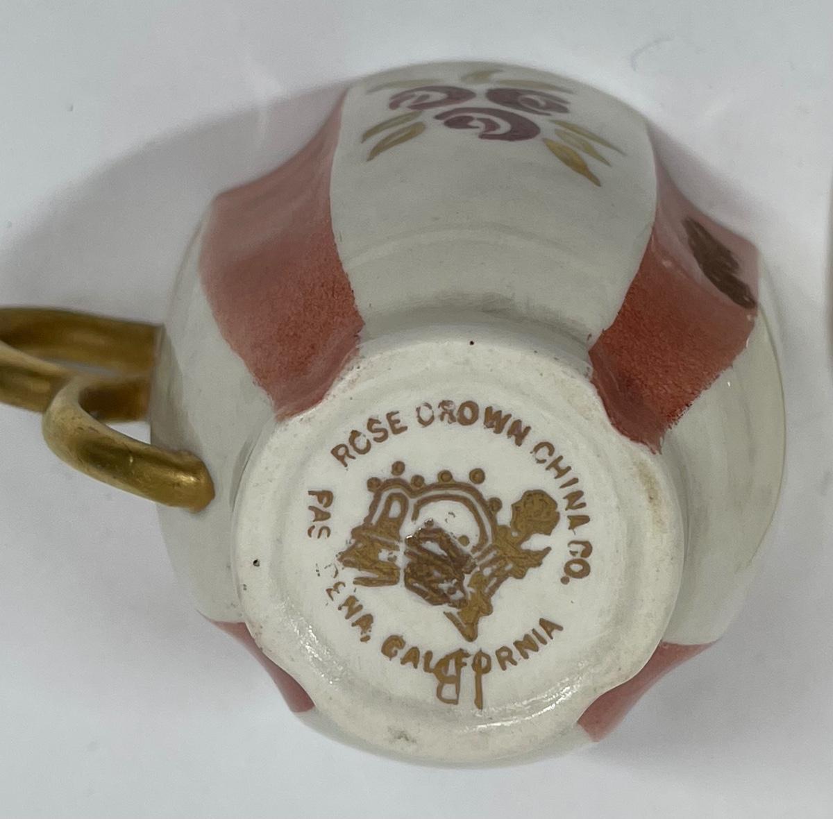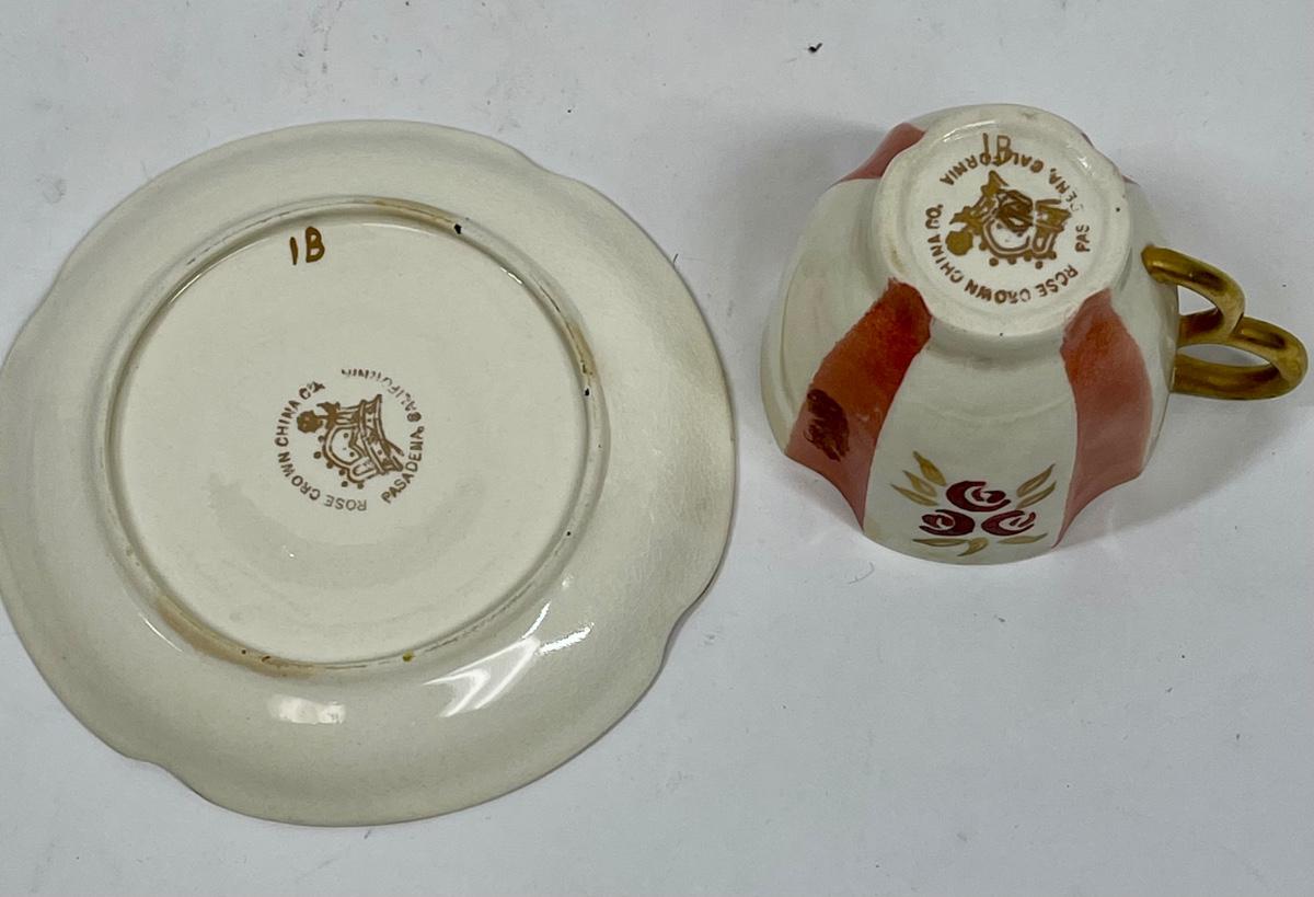 Rose Crown China Vintage Floral Striped Demitasse Teacup & Saucer