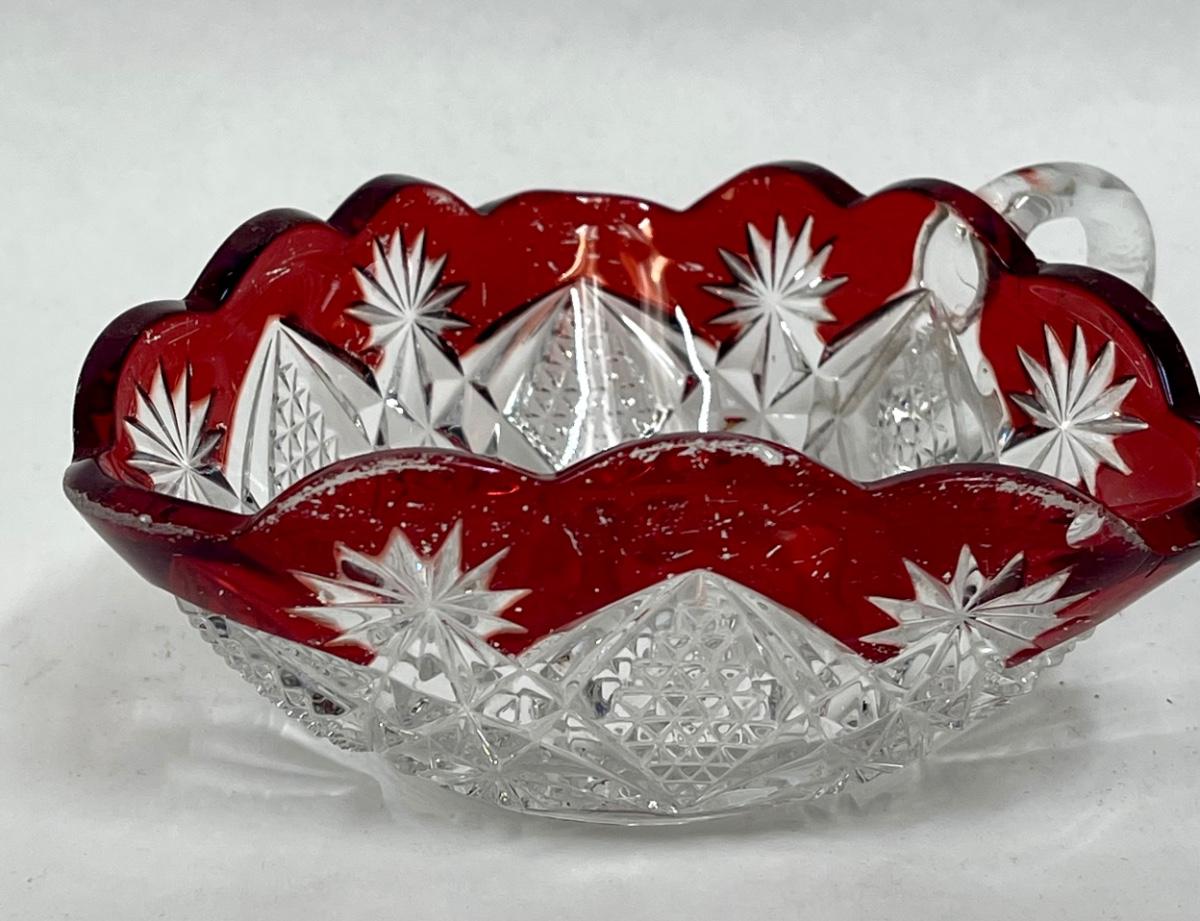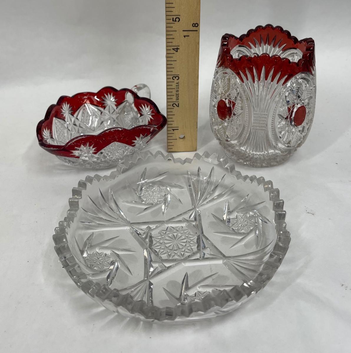 3 pieces of Vintage Glass Bohemian & American Brilliant clear & red