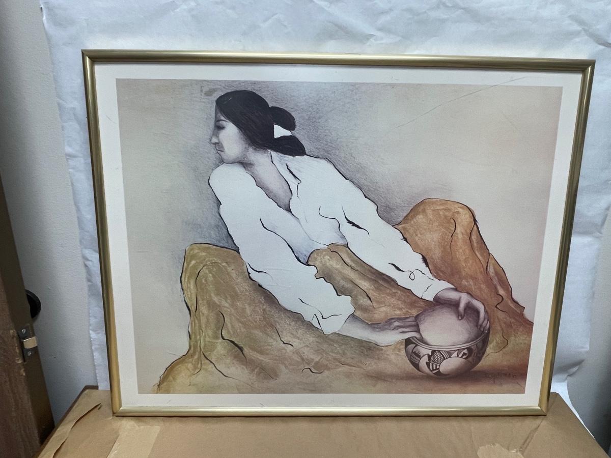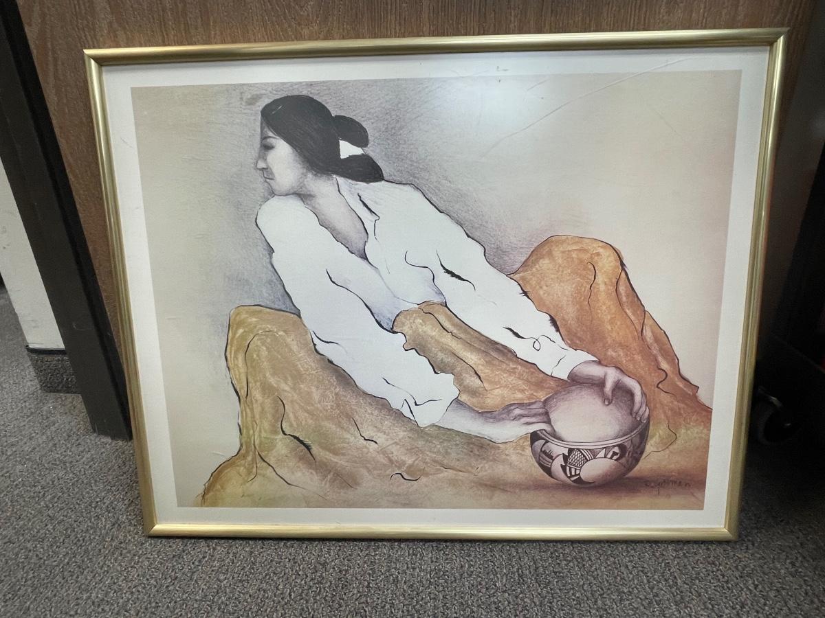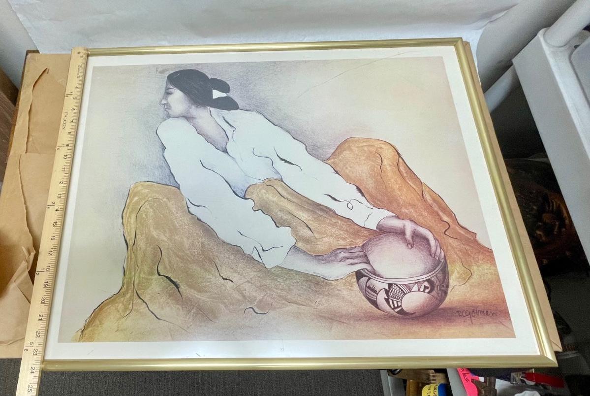 R.C. Gorman Native American Lithograph Signed Framed Art "Pottery Keeper"