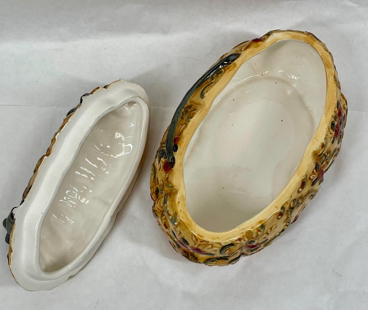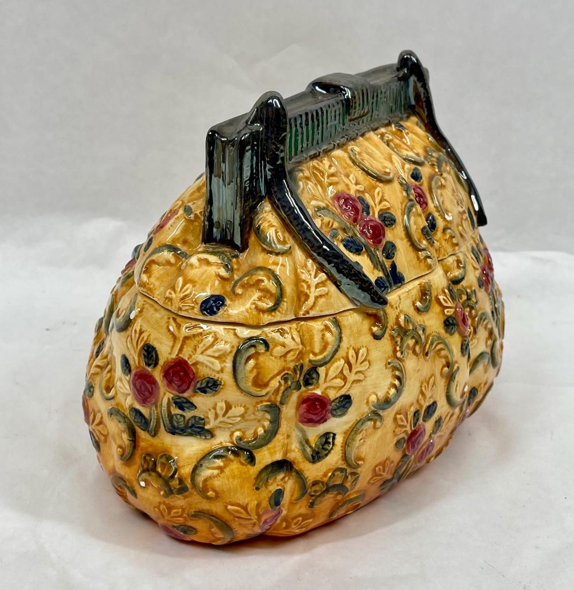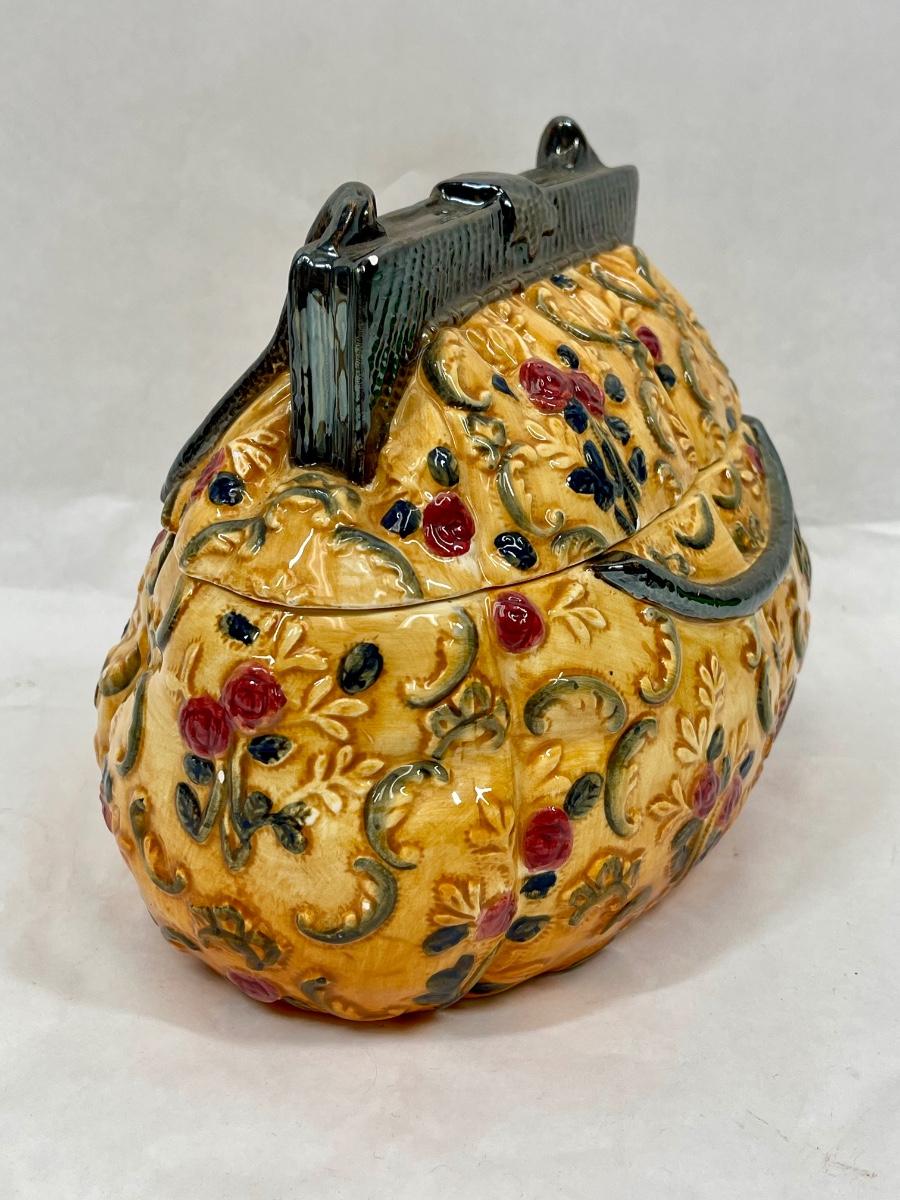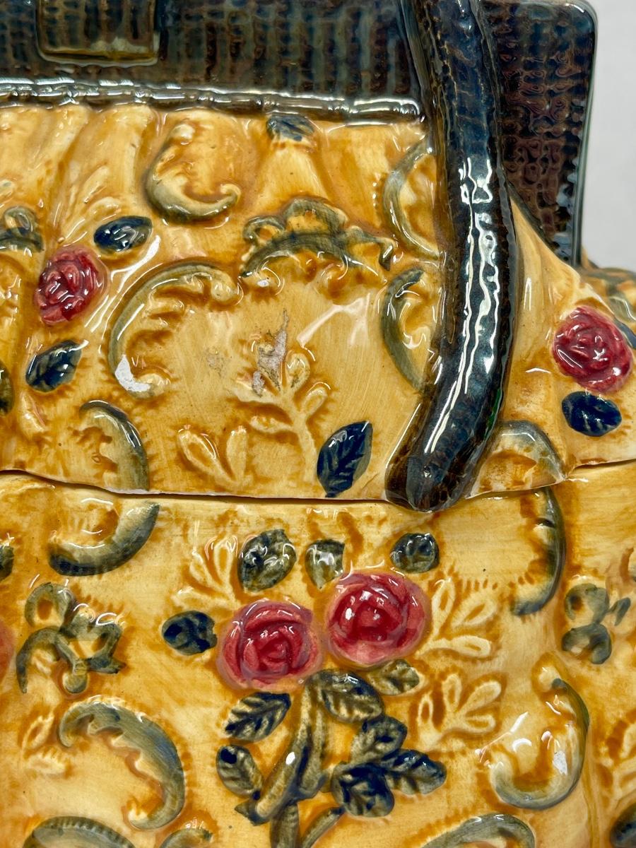 Vintage Rose Covered Yellow Clutch Purse Ceramic Cookie Jar