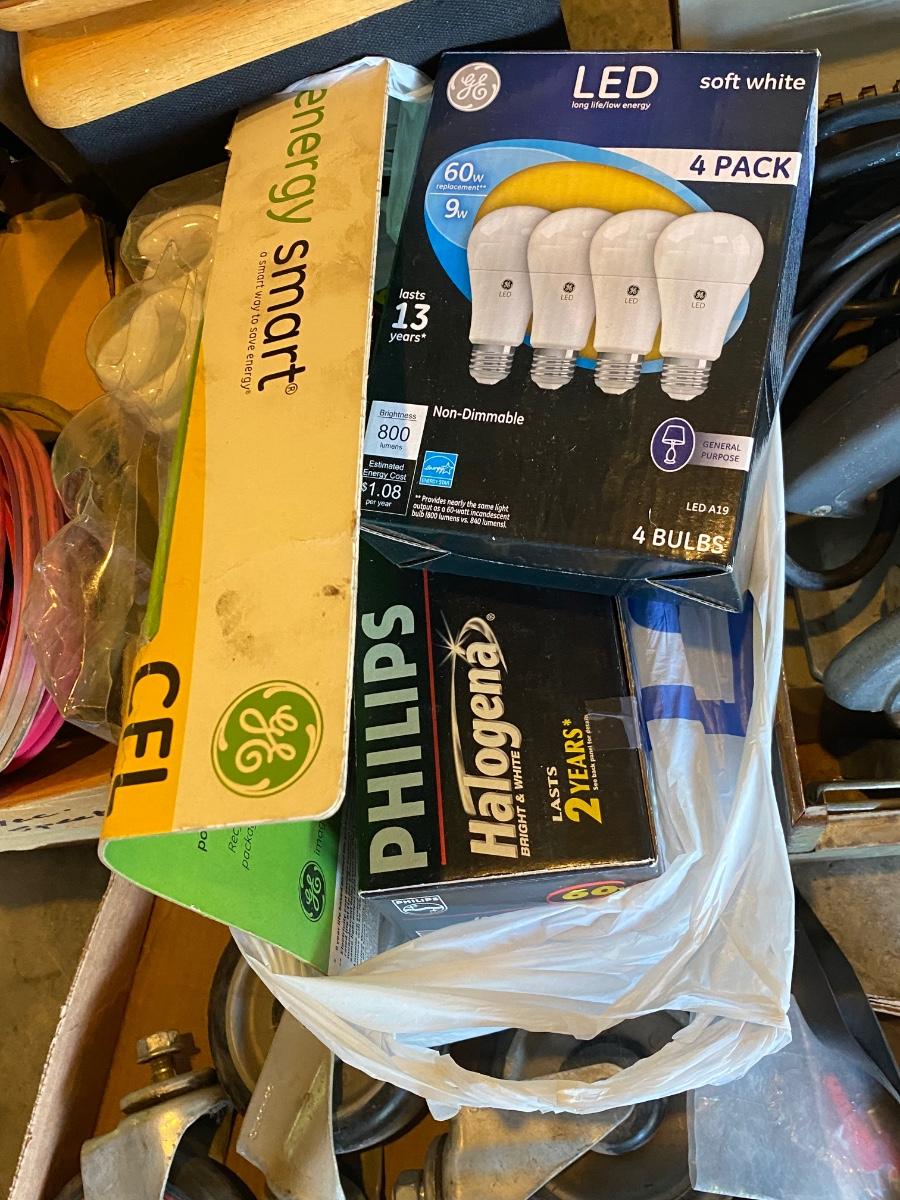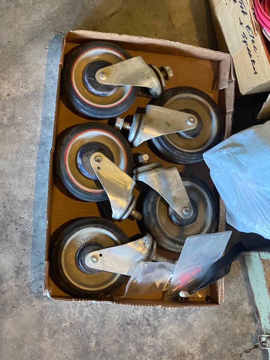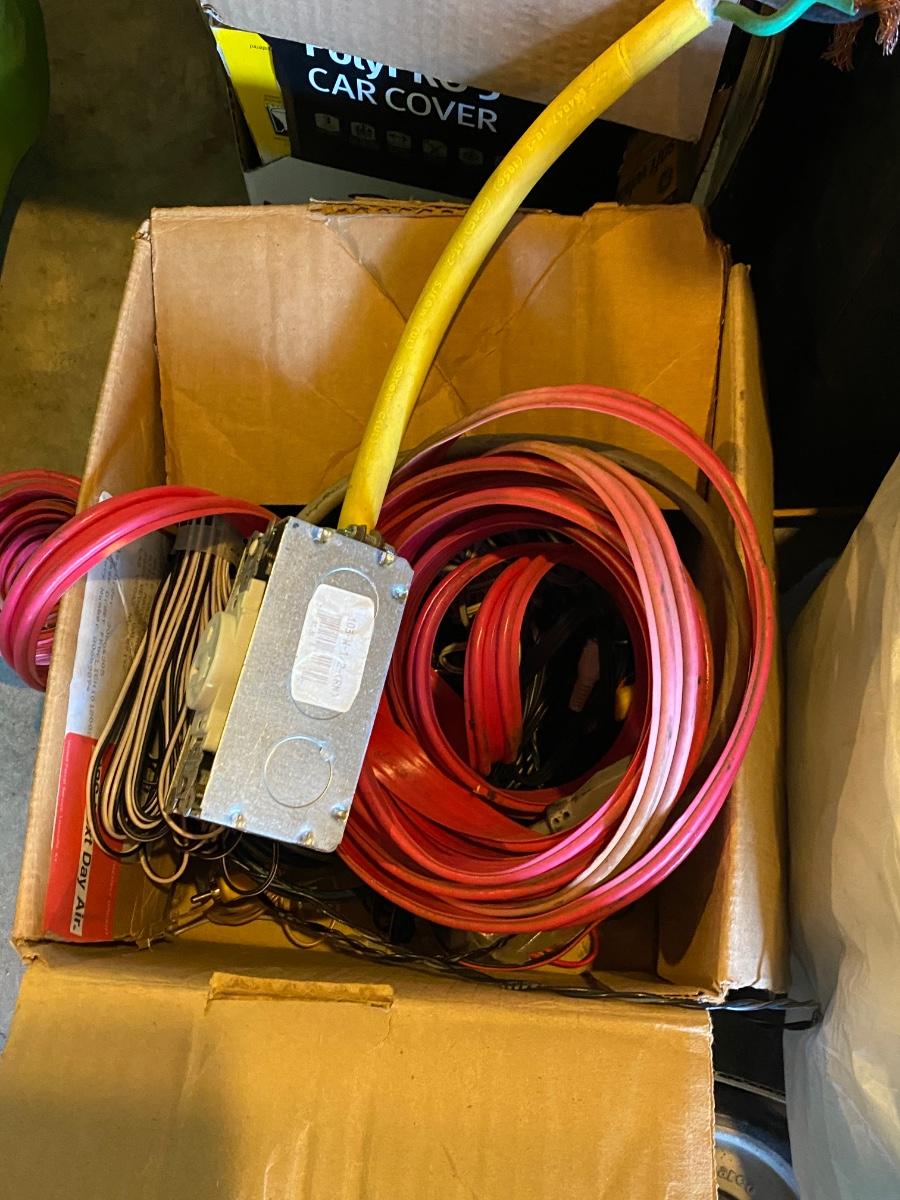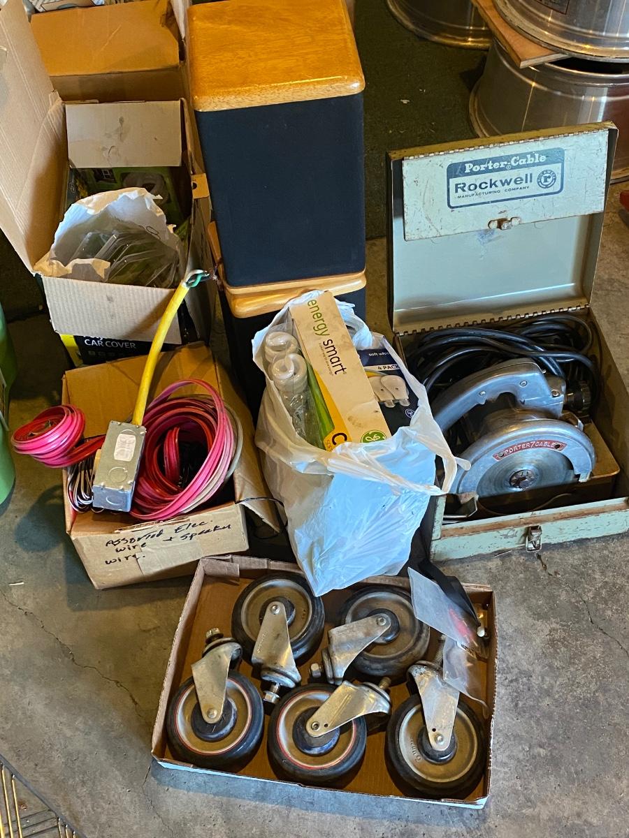 SH88 Casters, circular saw, lightbulbs, miscellaneous wires, speakers