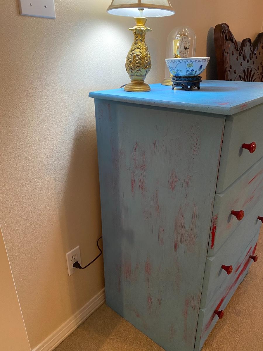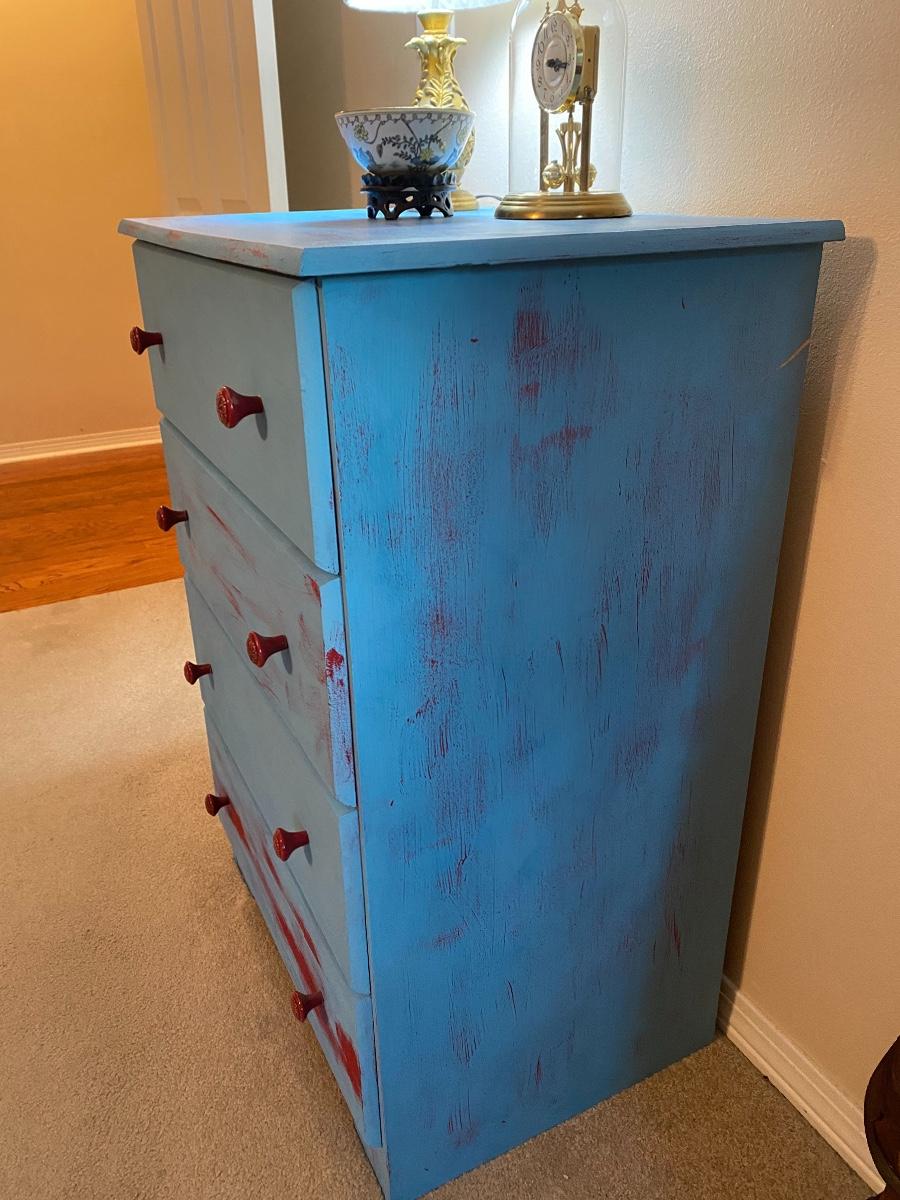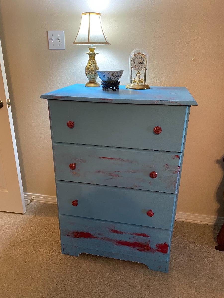 Shabby chic turquoise chest of drawers. Four drawers. 48 1/2 H x 40 1/2 W x 19 1/2 D. Not vintage, but very cute, in great condition