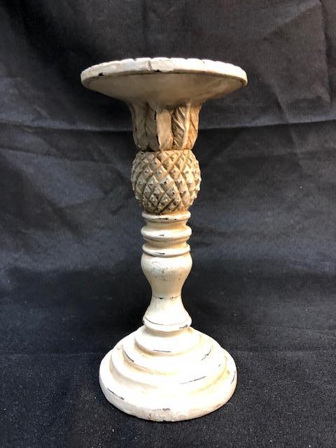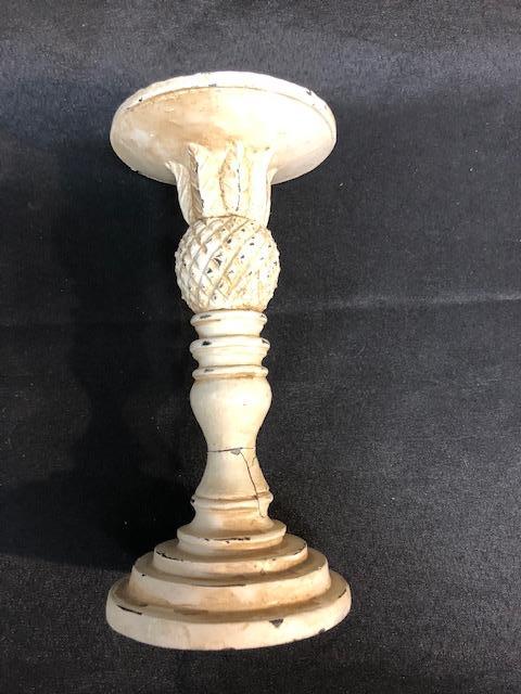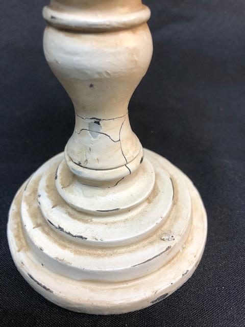 Rustic shabby chic look candleholder pillar. Off white worn paint look. Does have some cracks in the finish.