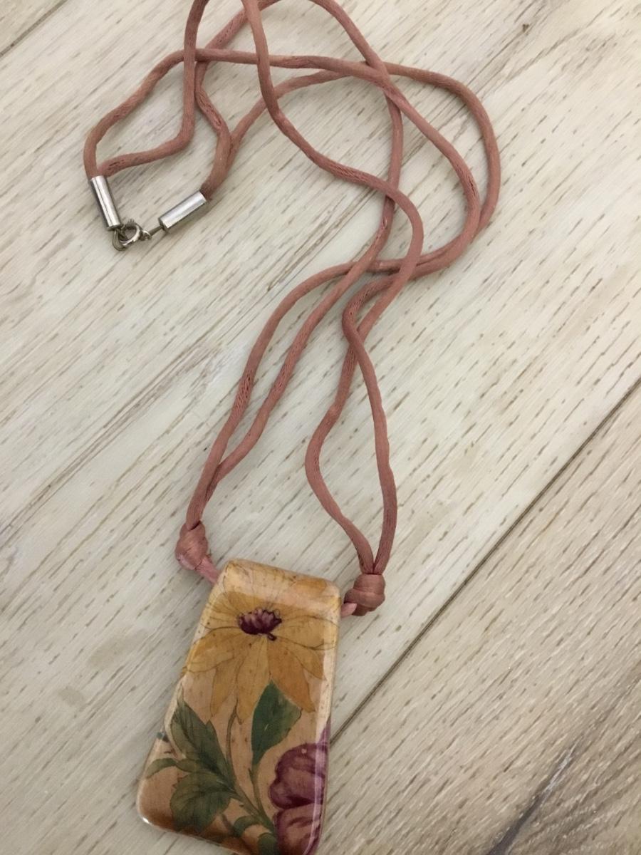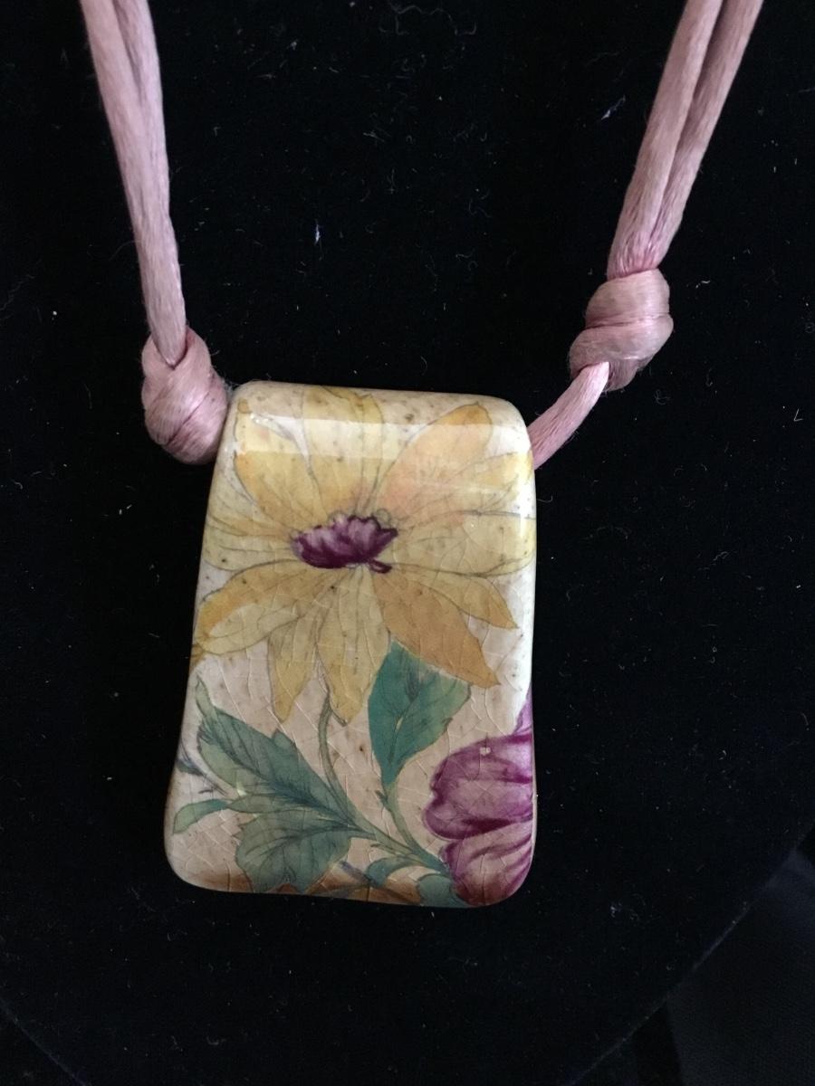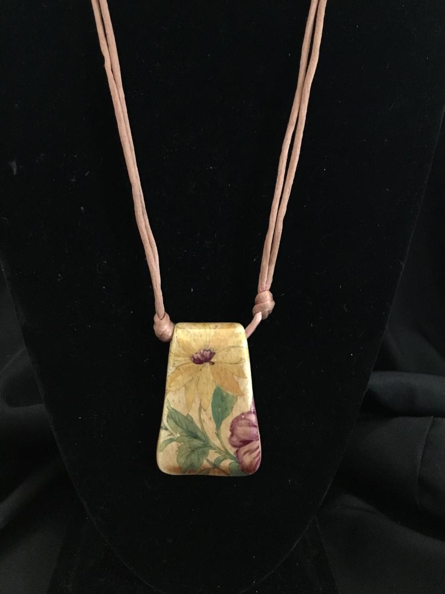 Shabby chic, suede necklace, and floral, ceramic pendant