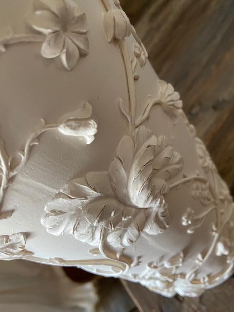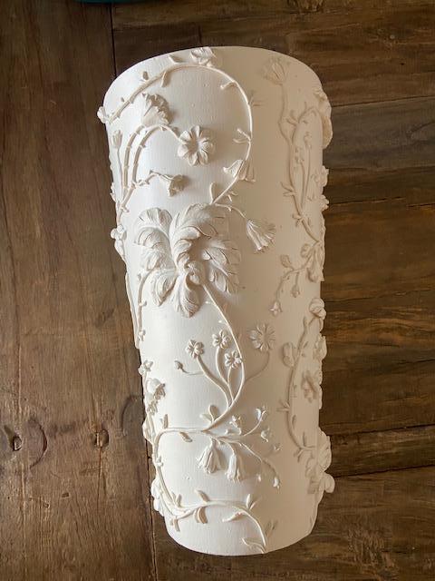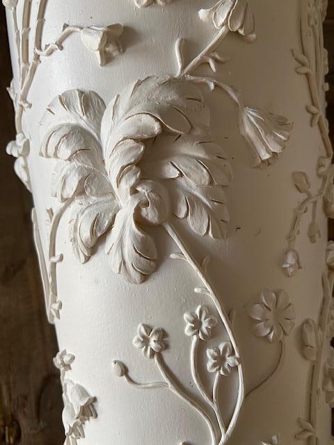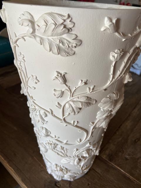 SHABBY CHIC (original) tall white plaster Vase (high Bas-Relief style)