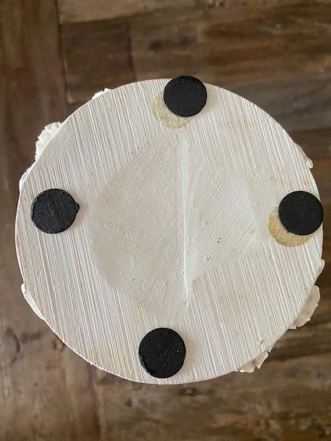 Purchased from the old Shabby Chic store in Malibu, this vase is gorgeous. Stands 11.5" tall, 6.25" diameter at top, and 4" at the base. Made from plaster. It reminds me of High Bas-Relief style as the flowers and vines are coming out and off the vase. Very beautiful. Retail was around $95. When I use it for flowers I put a glass vase inside as the plaster won't hold water very well.