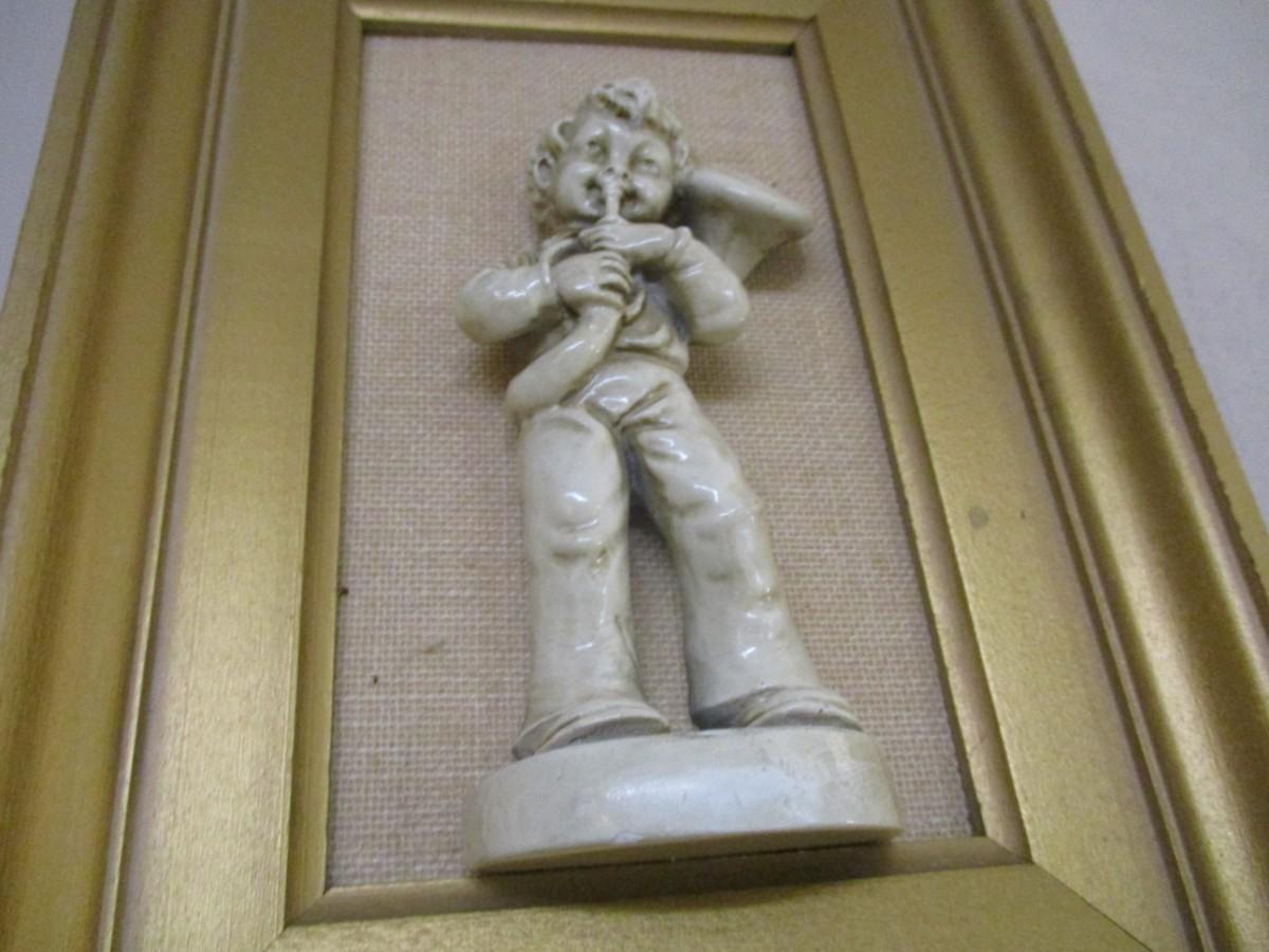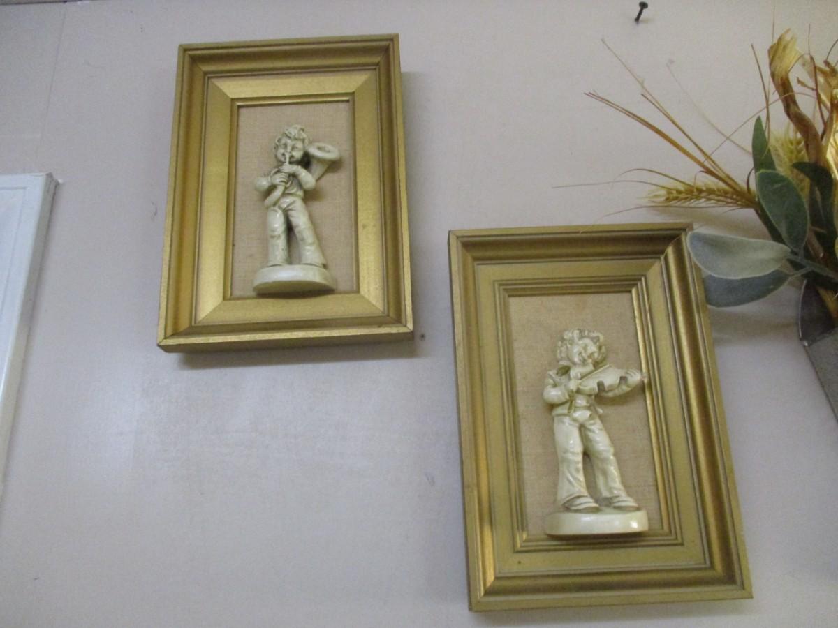 Pair of Framed Shadow Box Sculptured Musicians - F