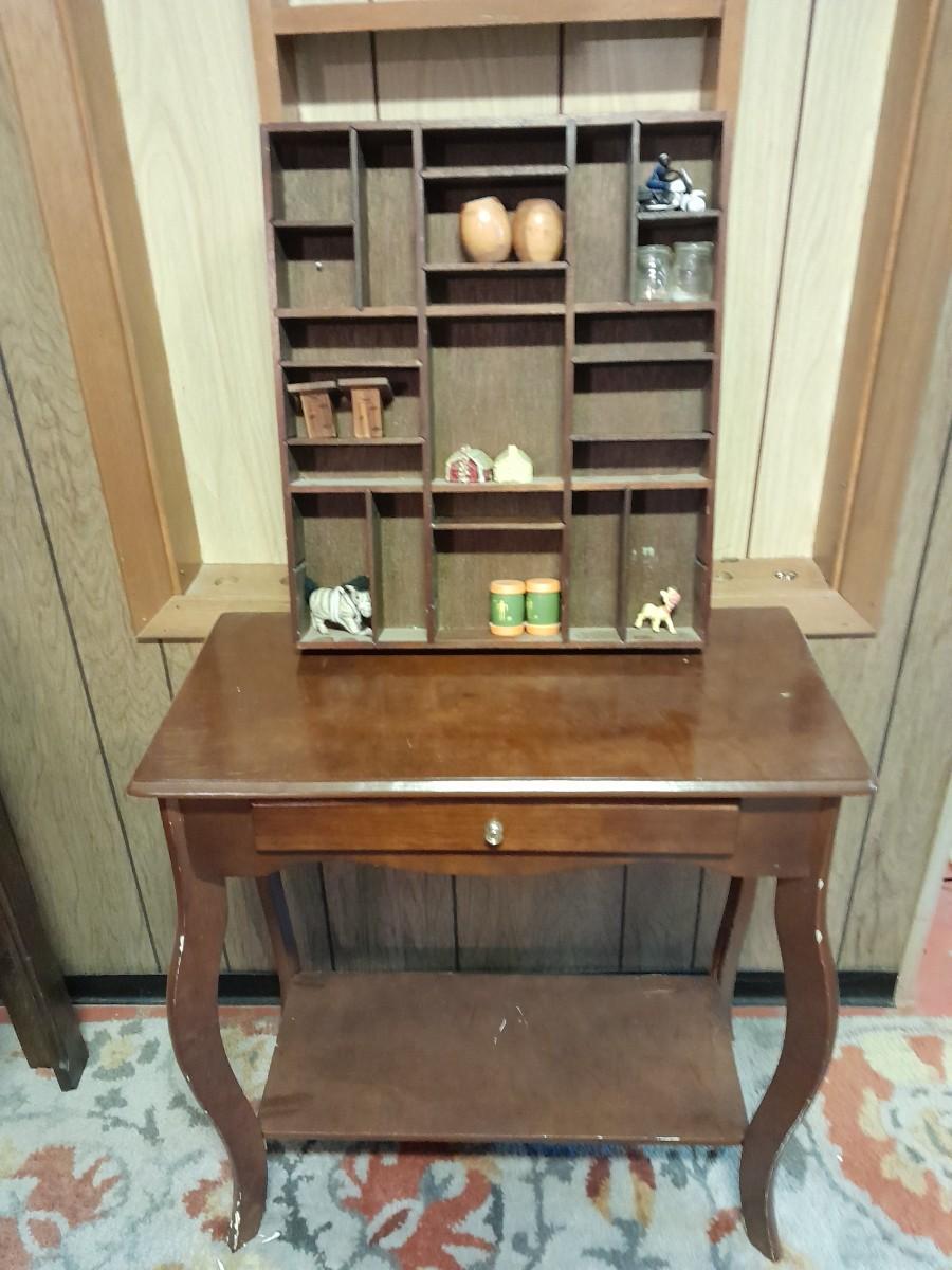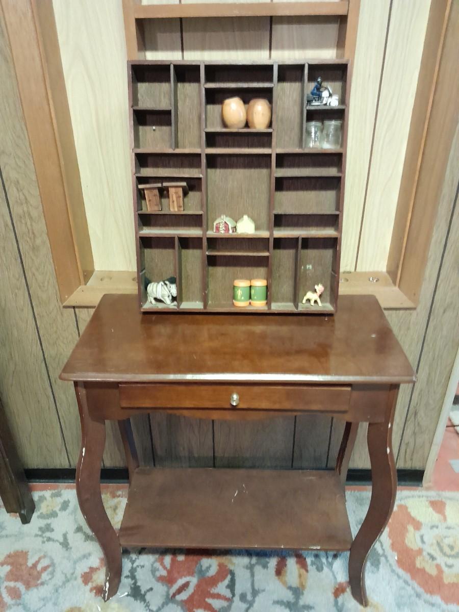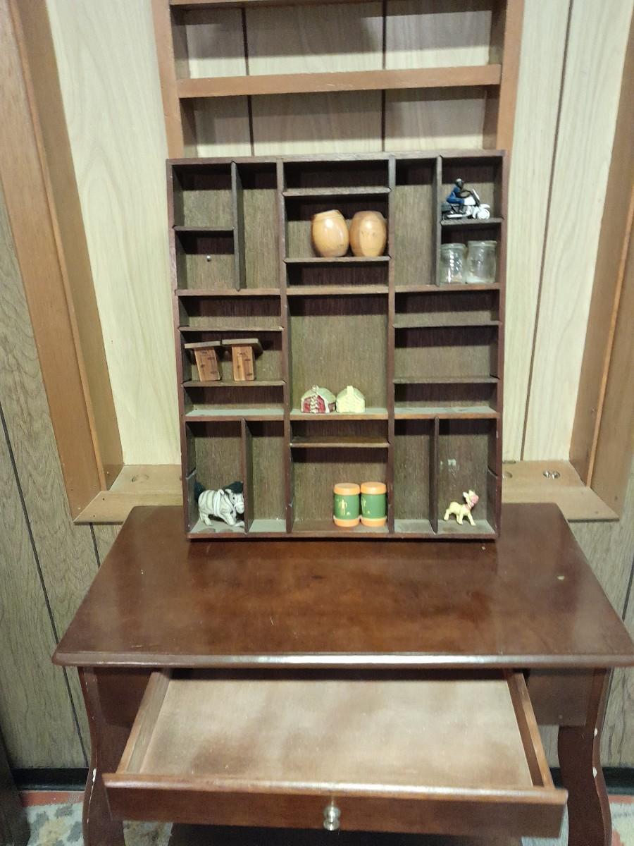 SHADOW BOX WITH SALT & PEPPER SHAKER COLLECTION AND SMALL END TABLE