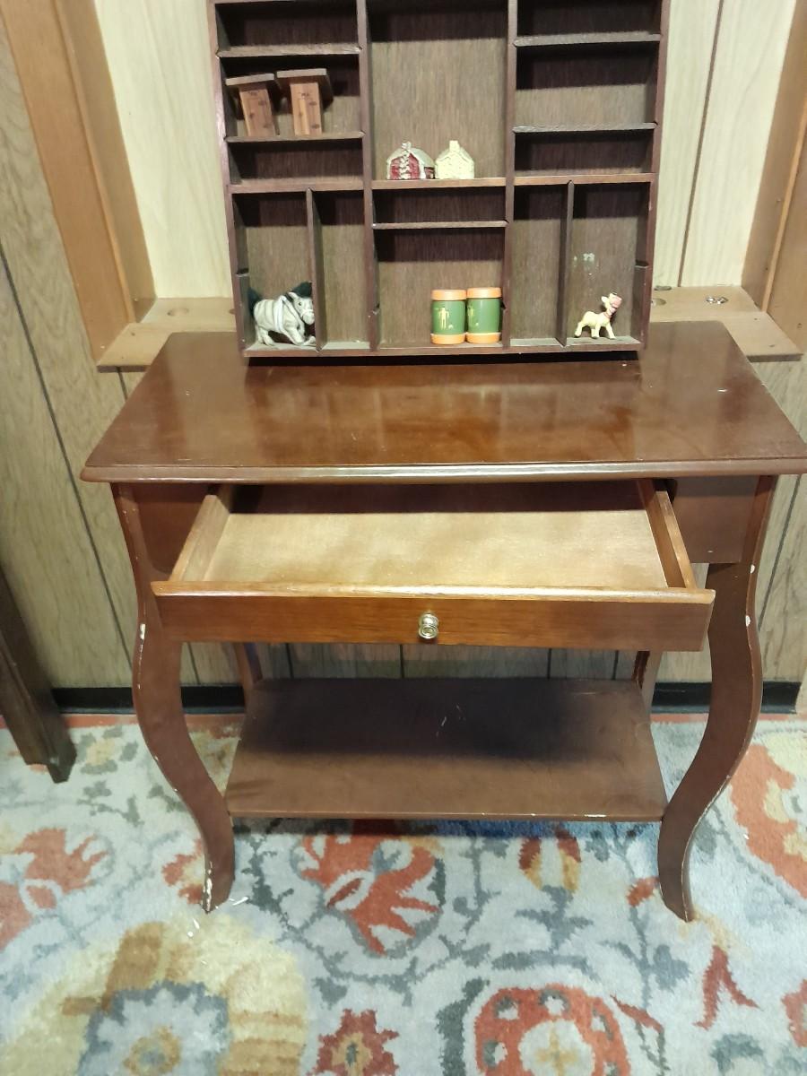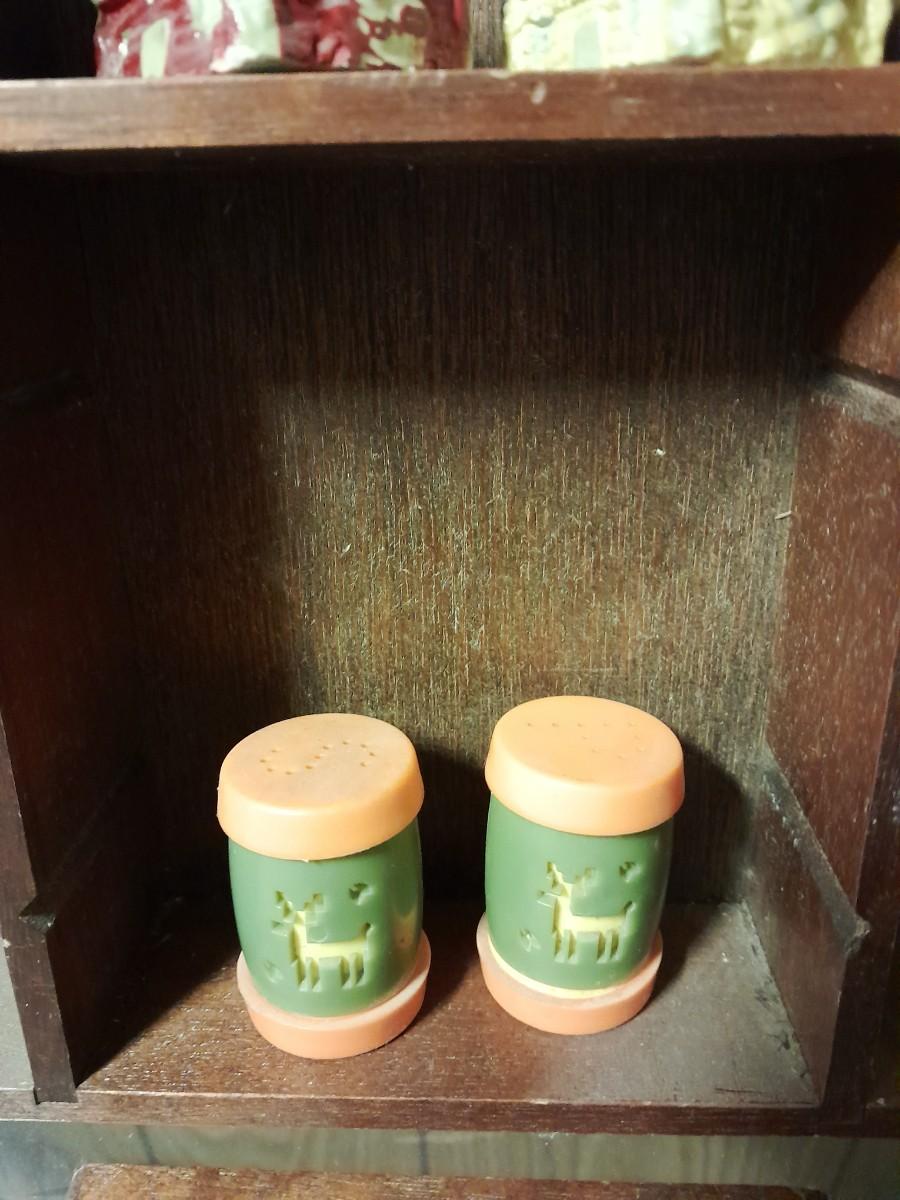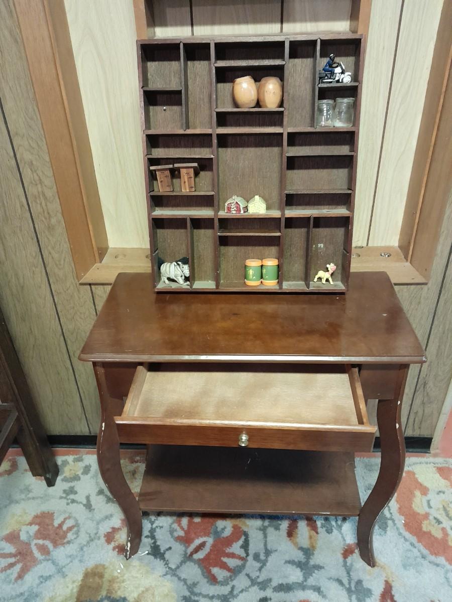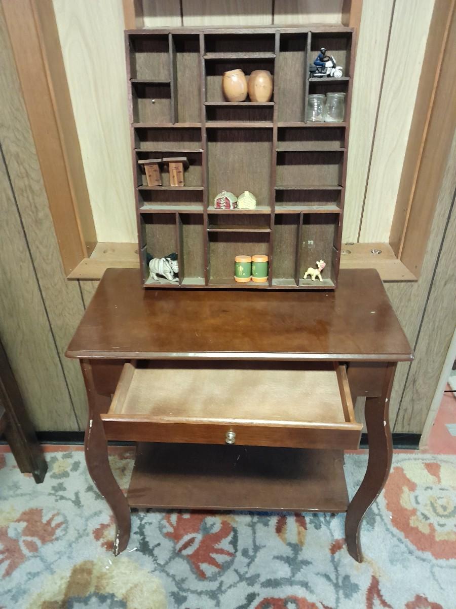 SHADOW BOX WITH SALT & PEPPER SHAKER COLLECTION AND SMALL END TABLE