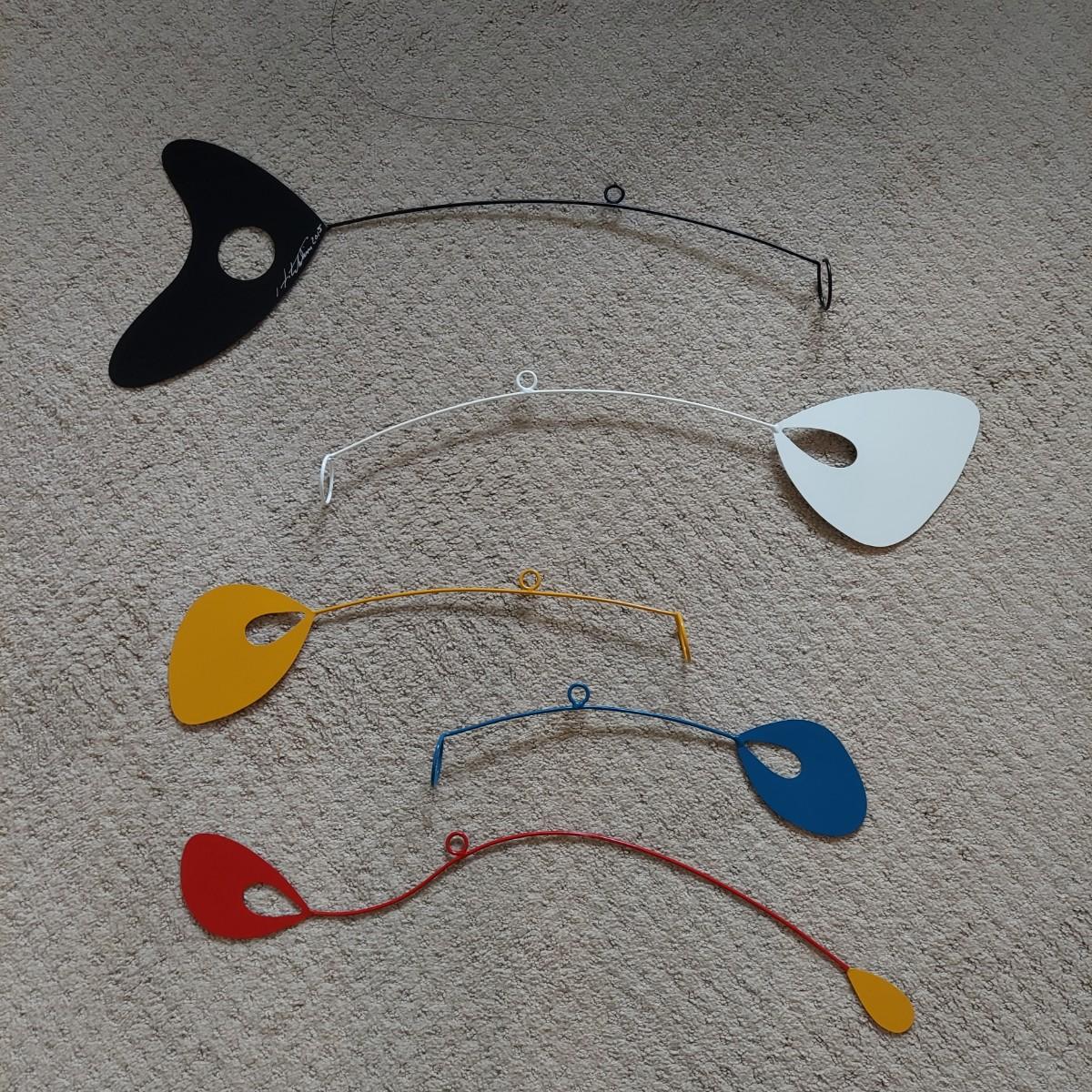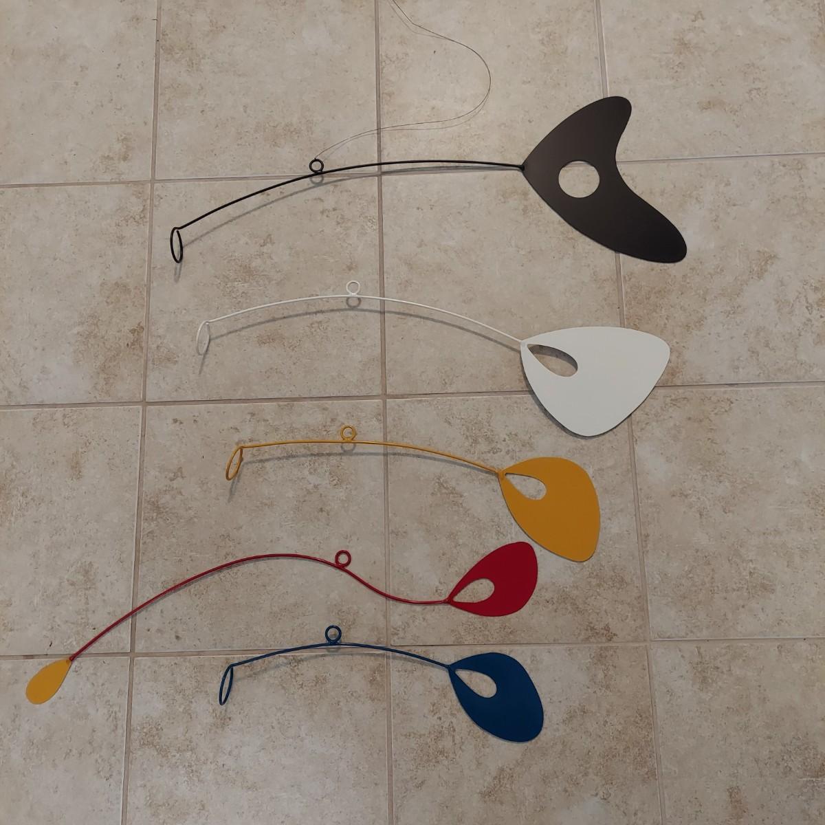 Contemporary metal mobile named Shadow Colors signed by artist Joel Hotchkiss 2015. The pieces vary from 14.5-26" long. Will need to be reconstructed. Shipping available.