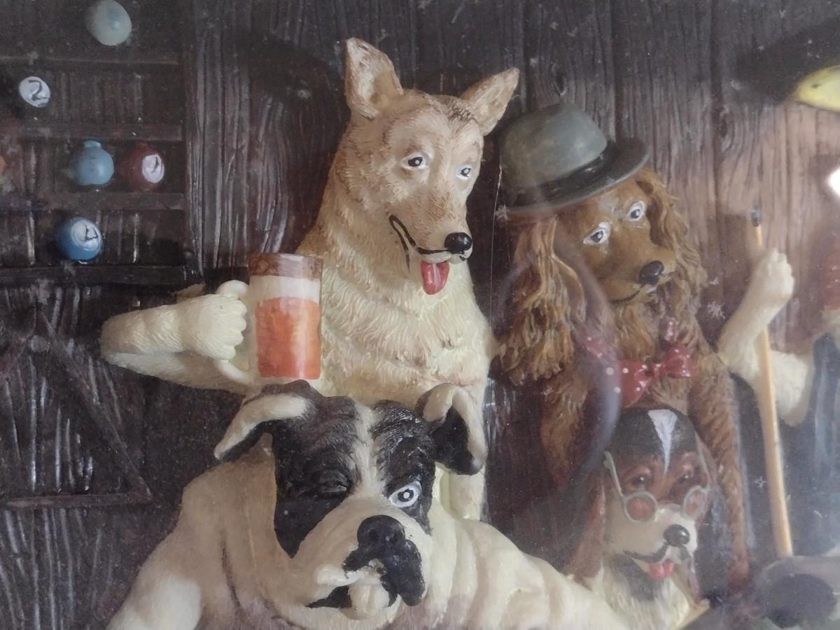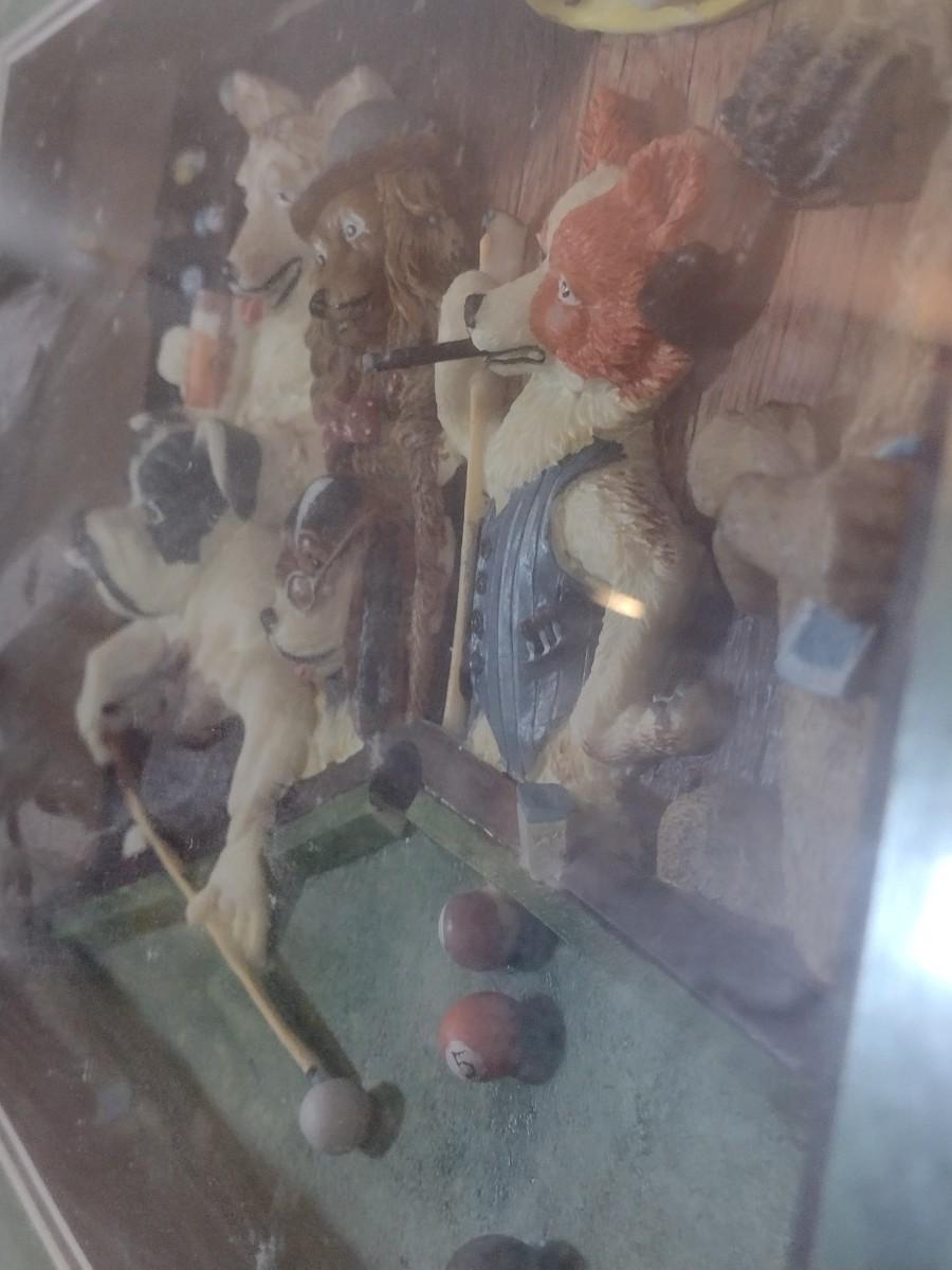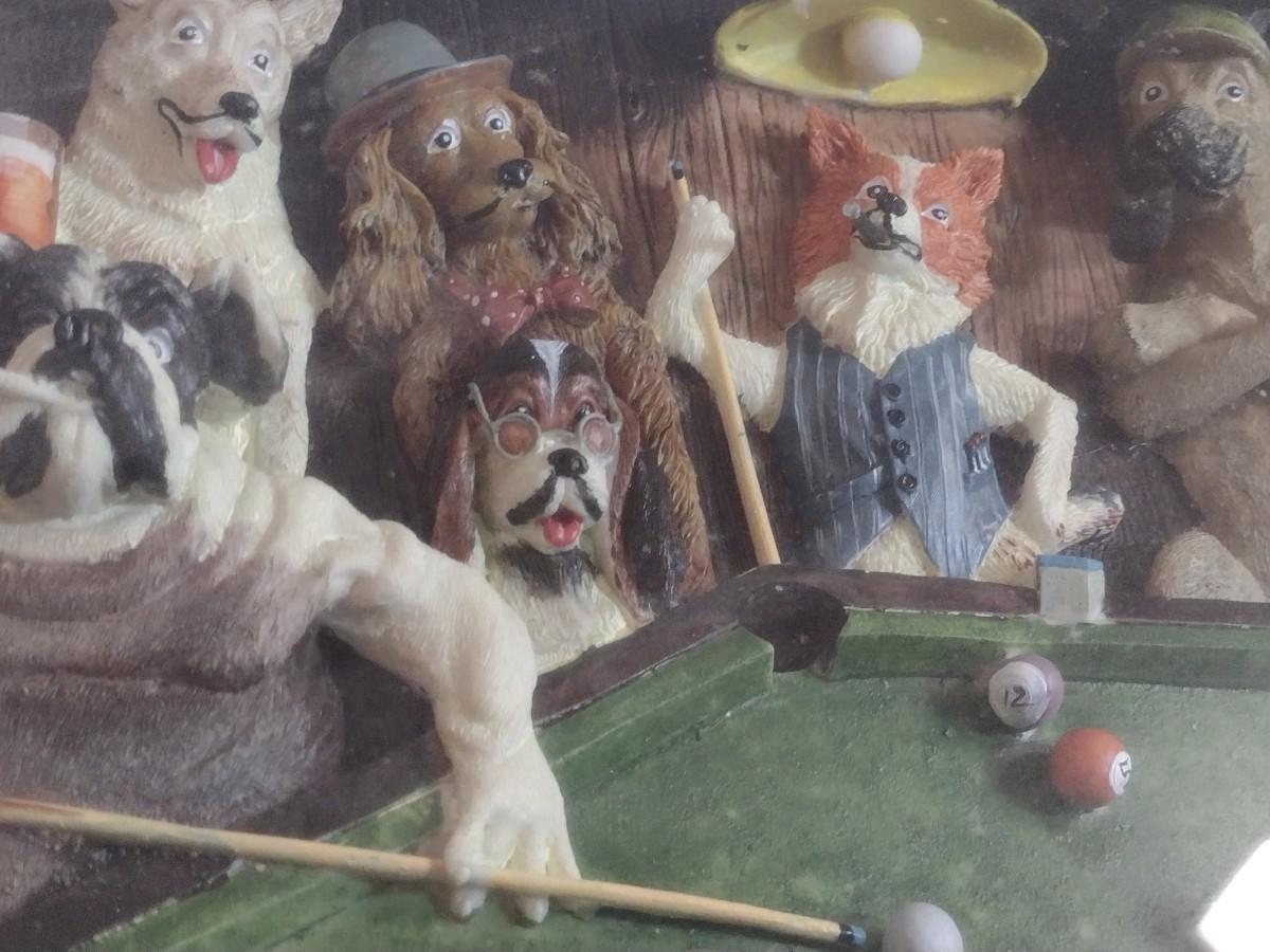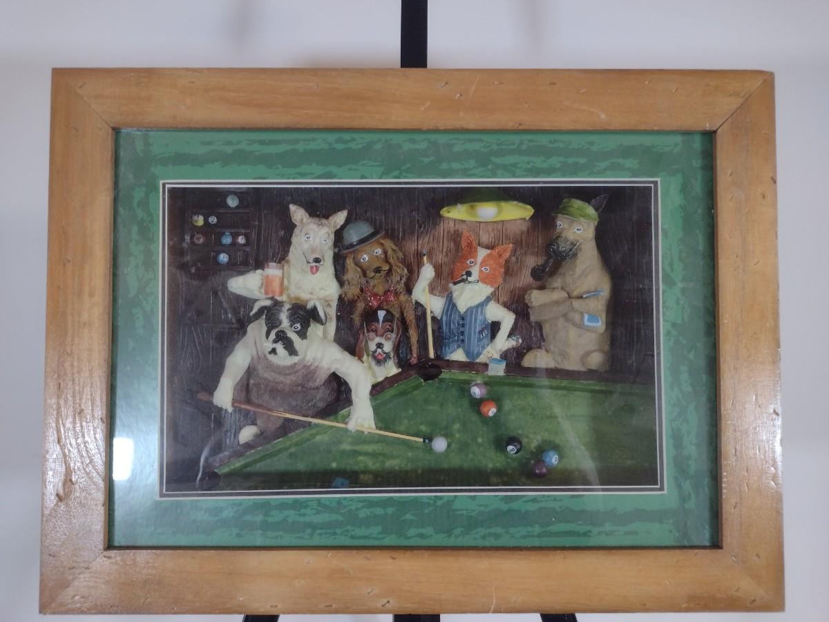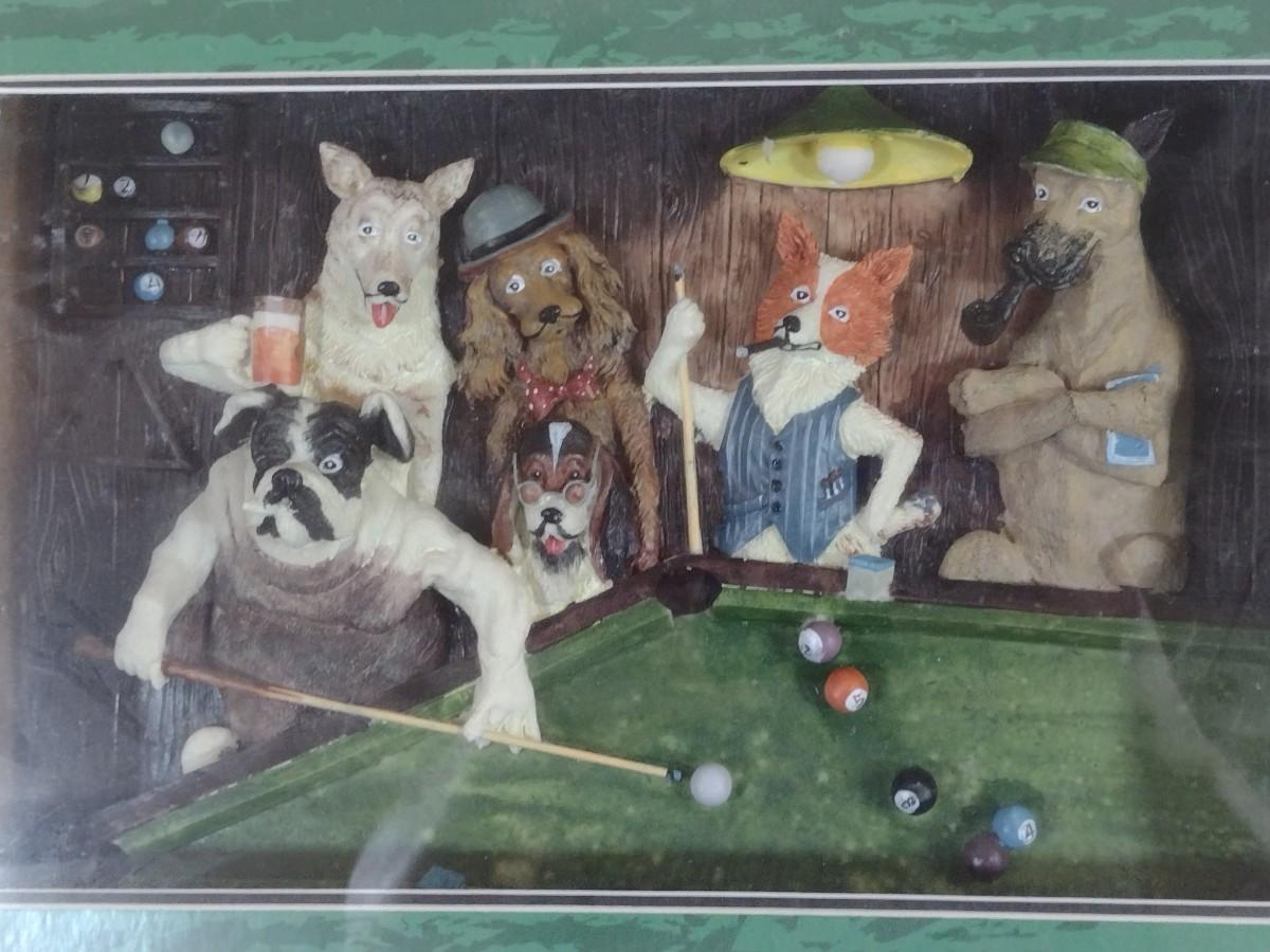 Dogs Playing Pool Relief Sculpture in Shadowbox
