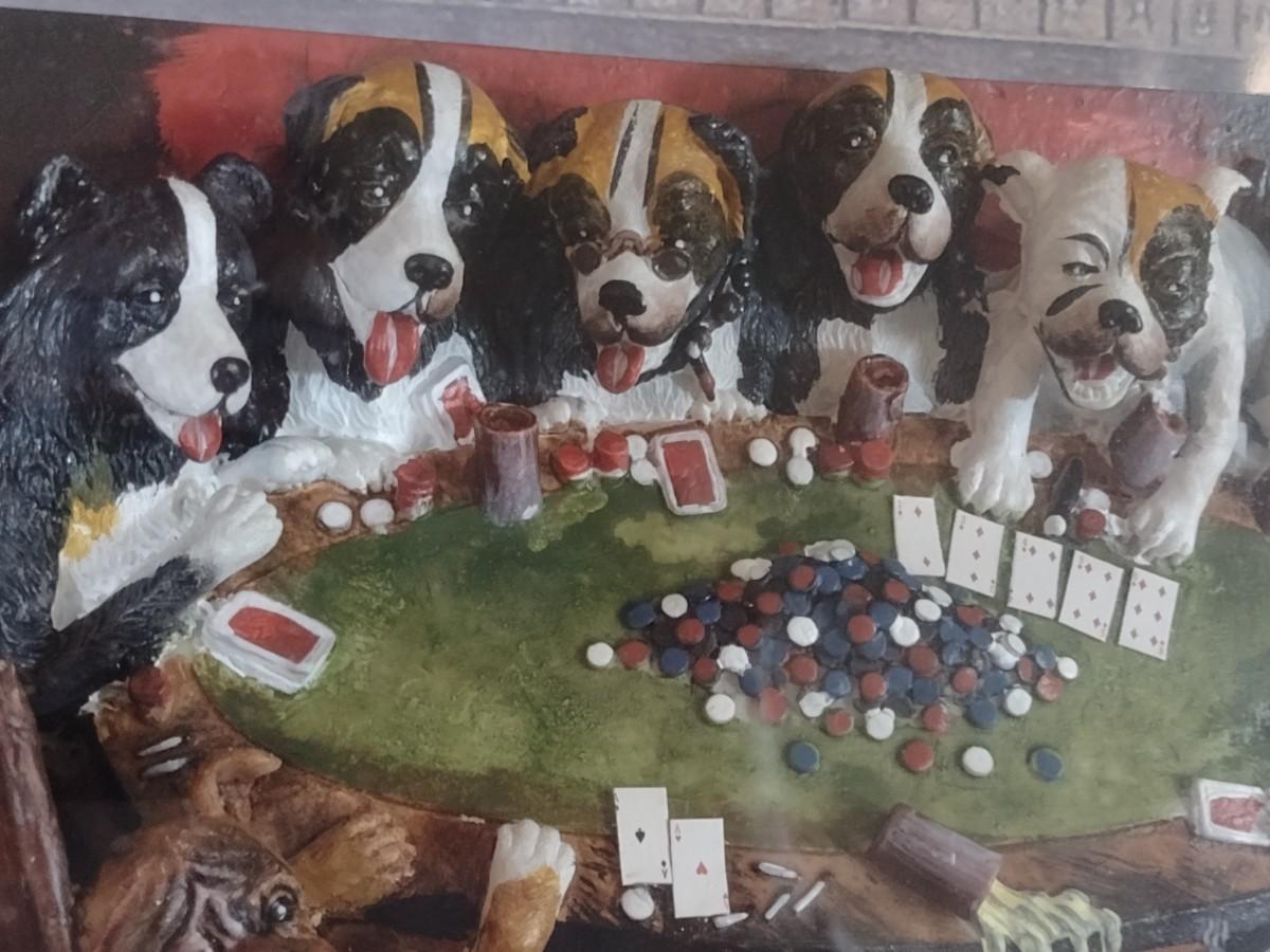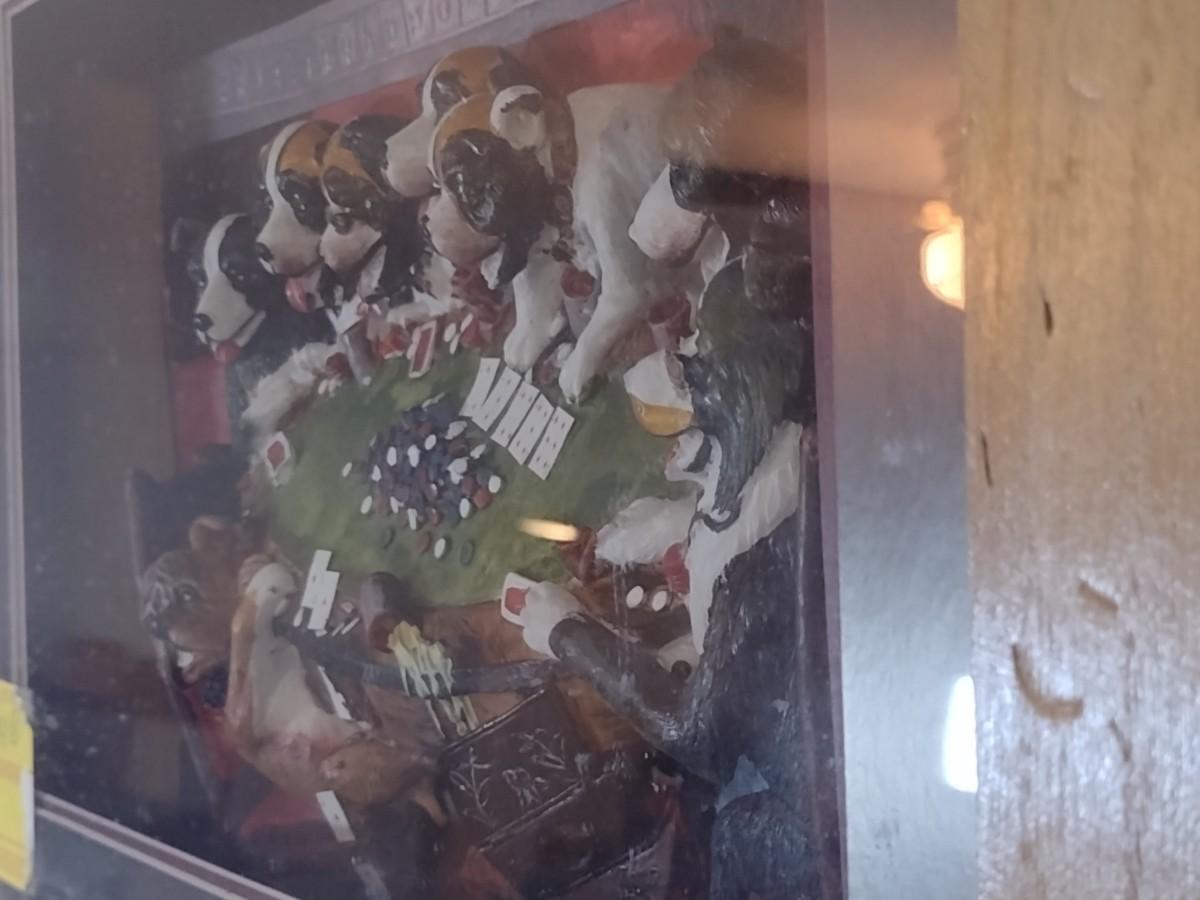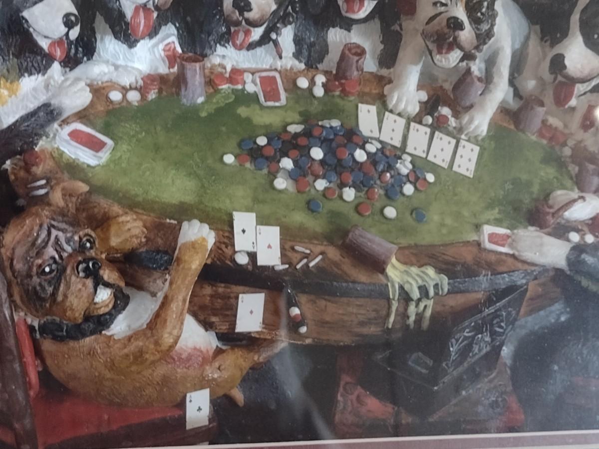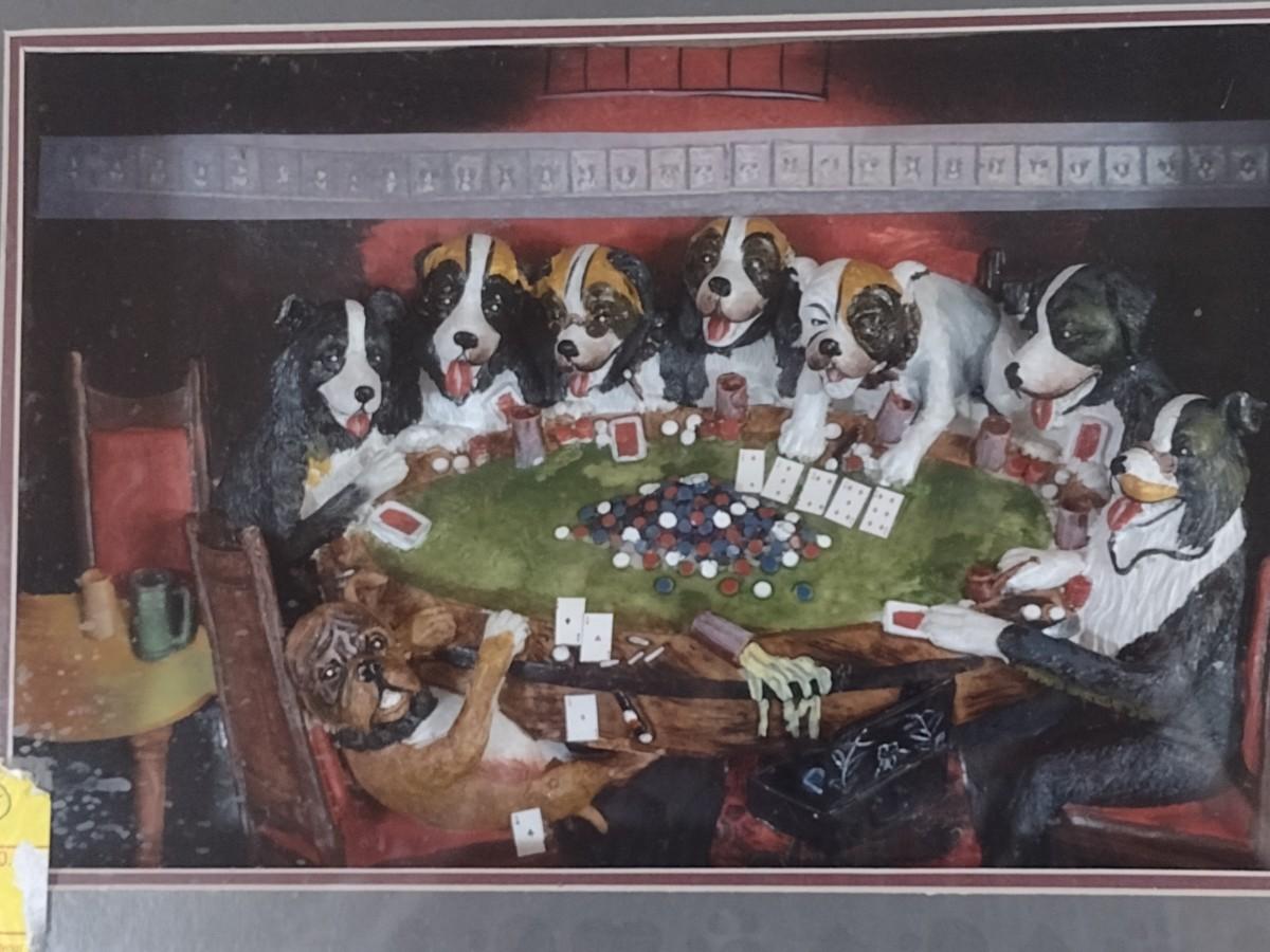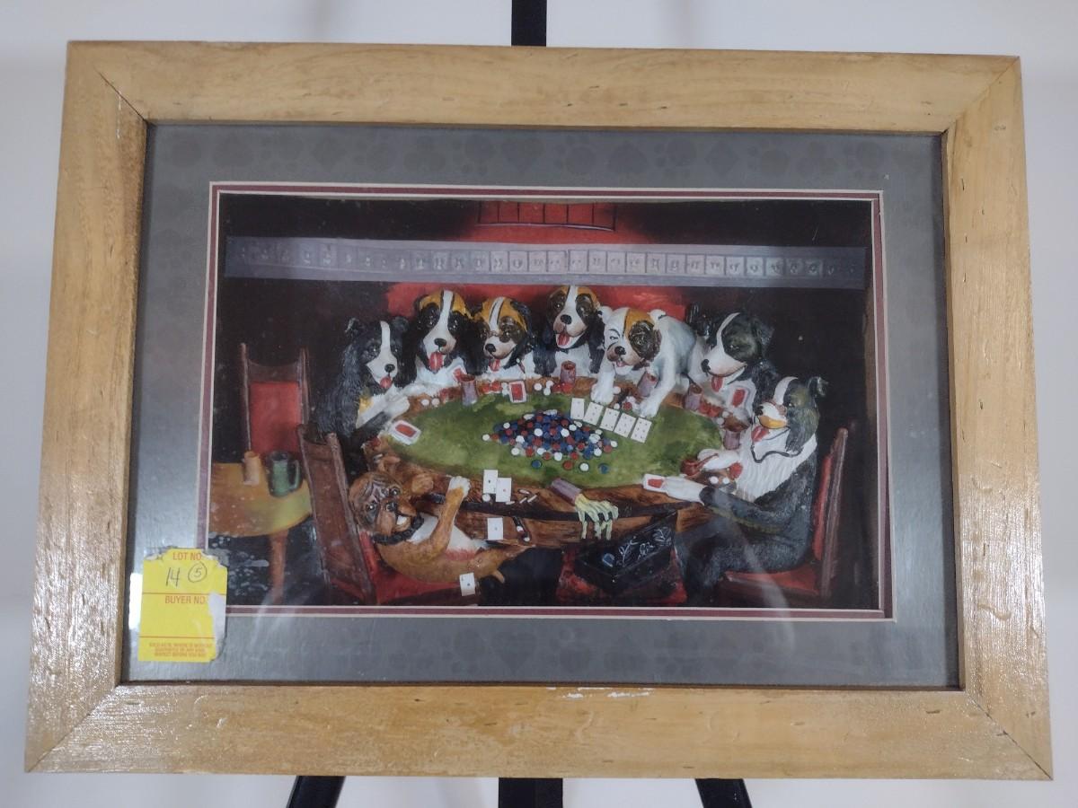Dogs Playing Poker Relief Sculpture in Shadowbox