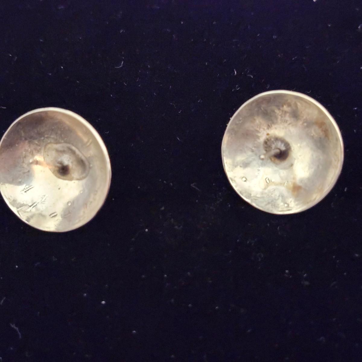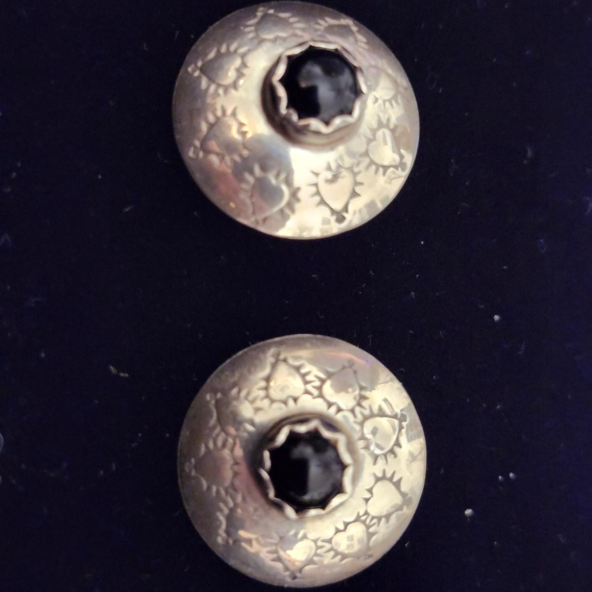 Lovely pierced earrings with a black stone, 3/4 inch diameter. Good condition