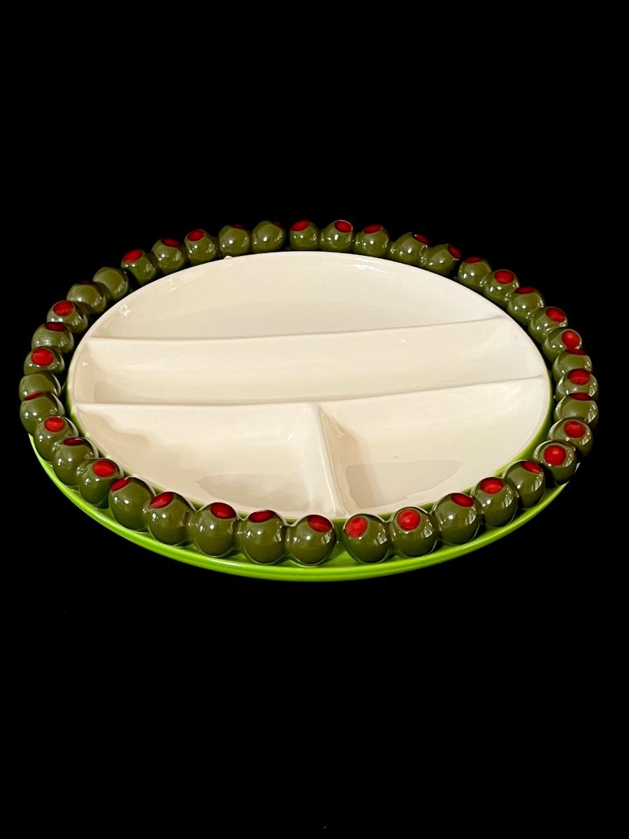 SHAFFORD ~ Bon Appetite ~ Vtg. Olive Divided Serving Tray