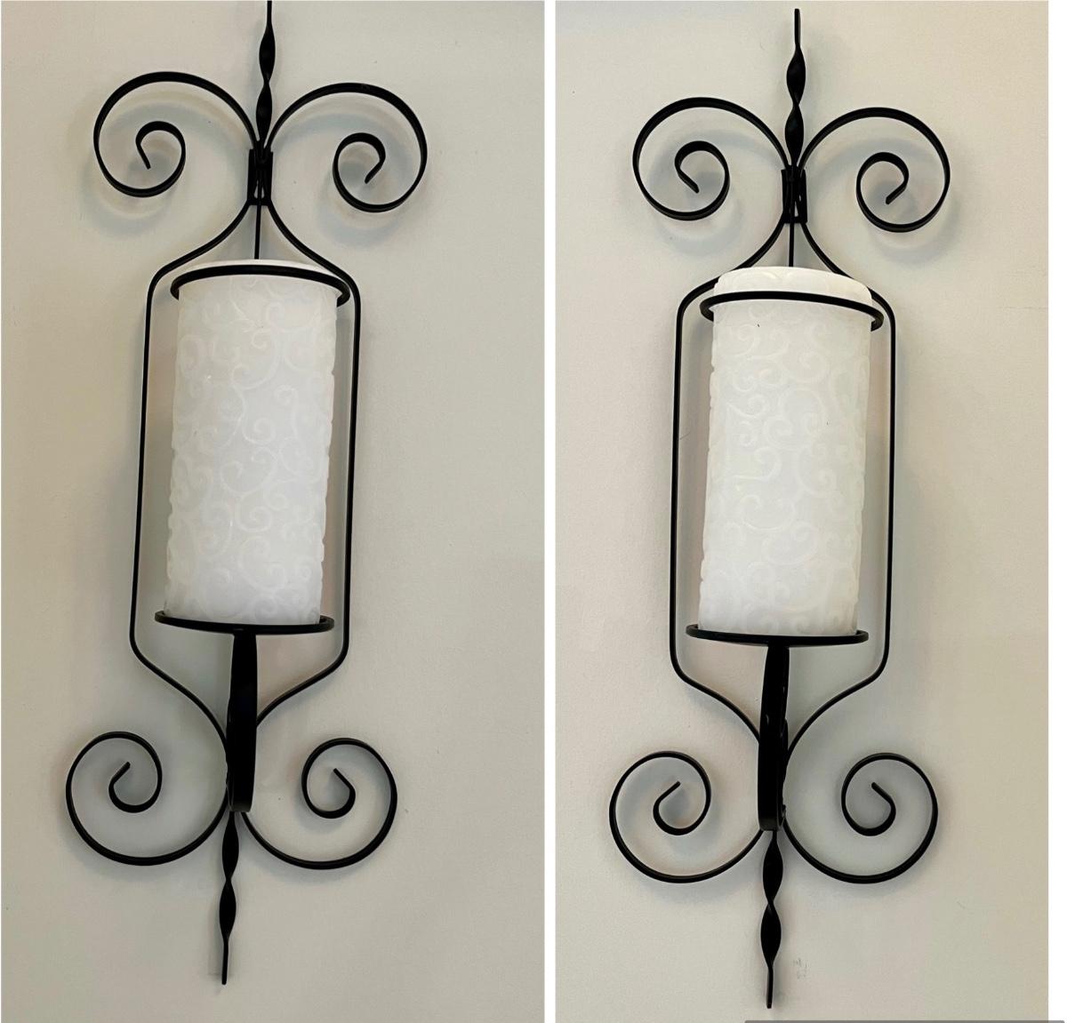 Pair Iron Decorative Wall Sconces with Candles