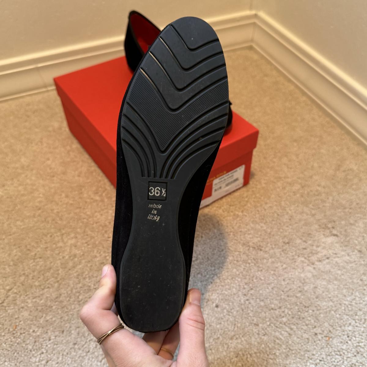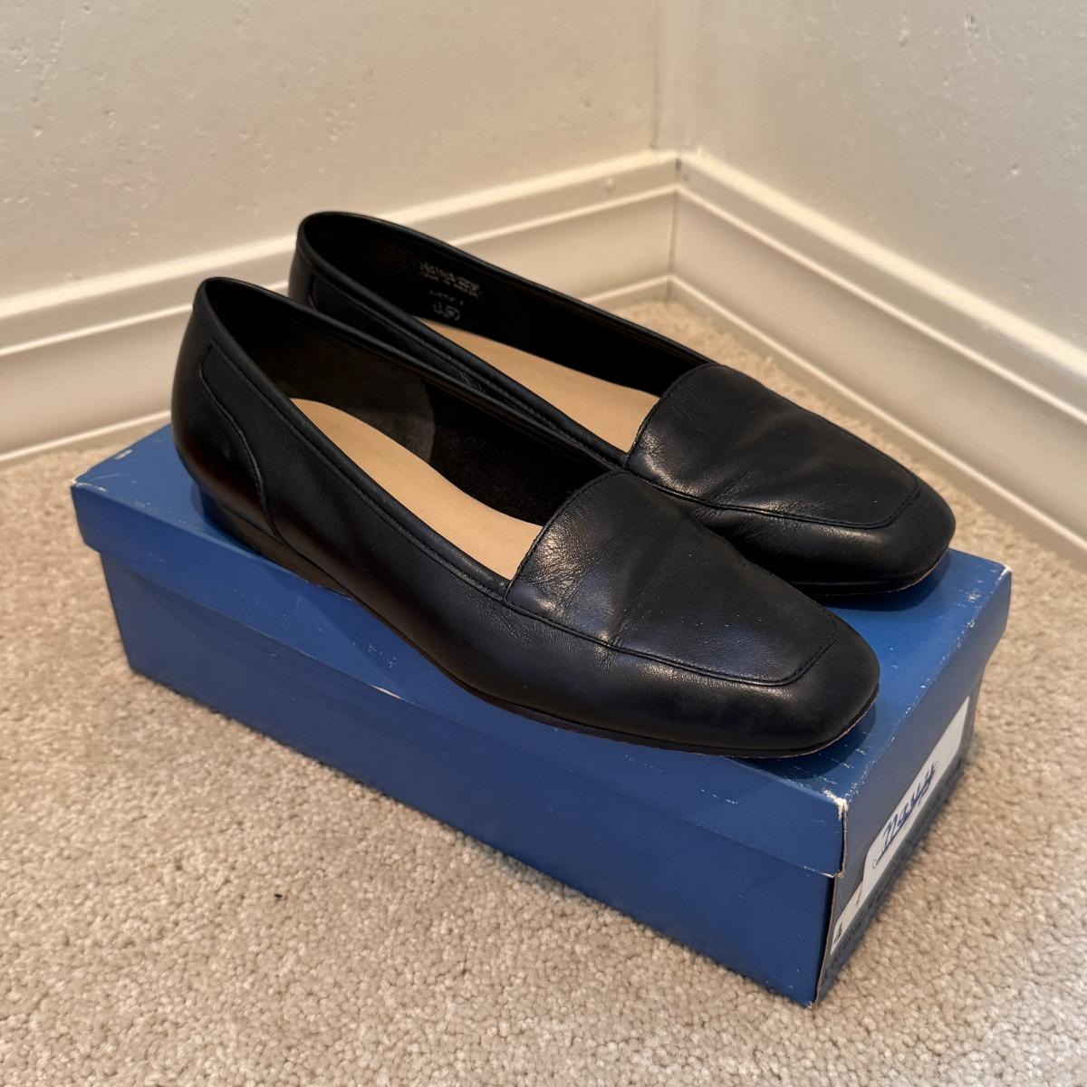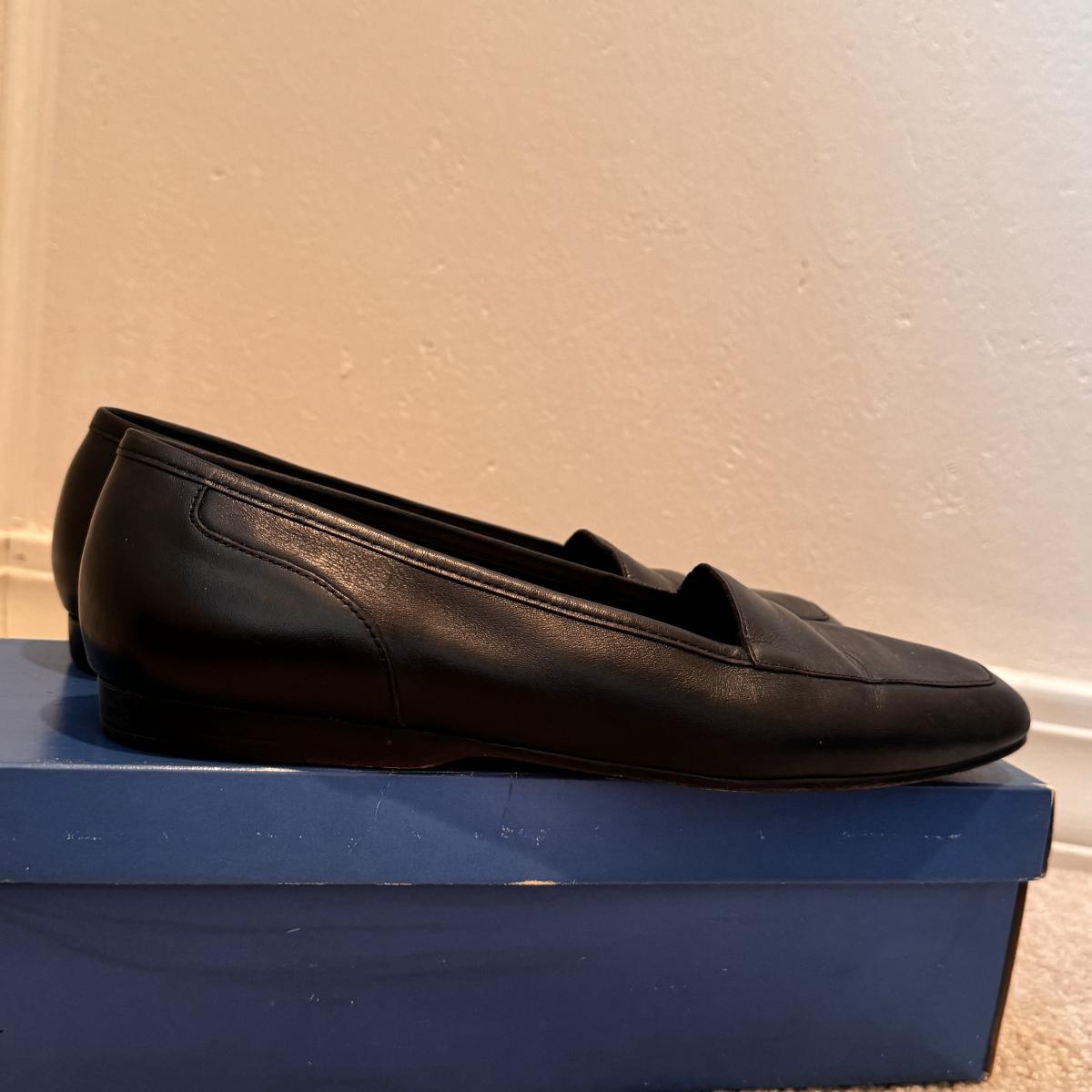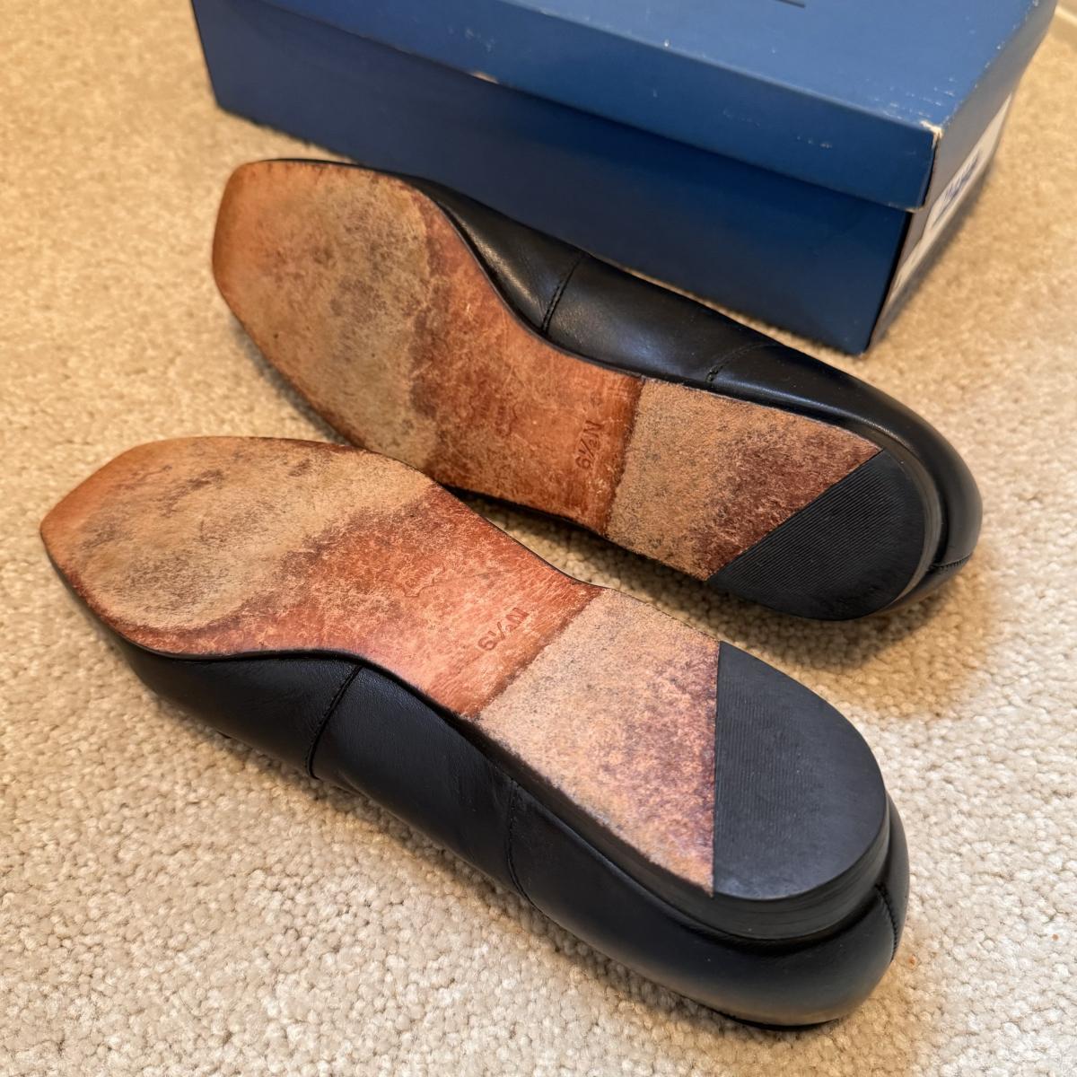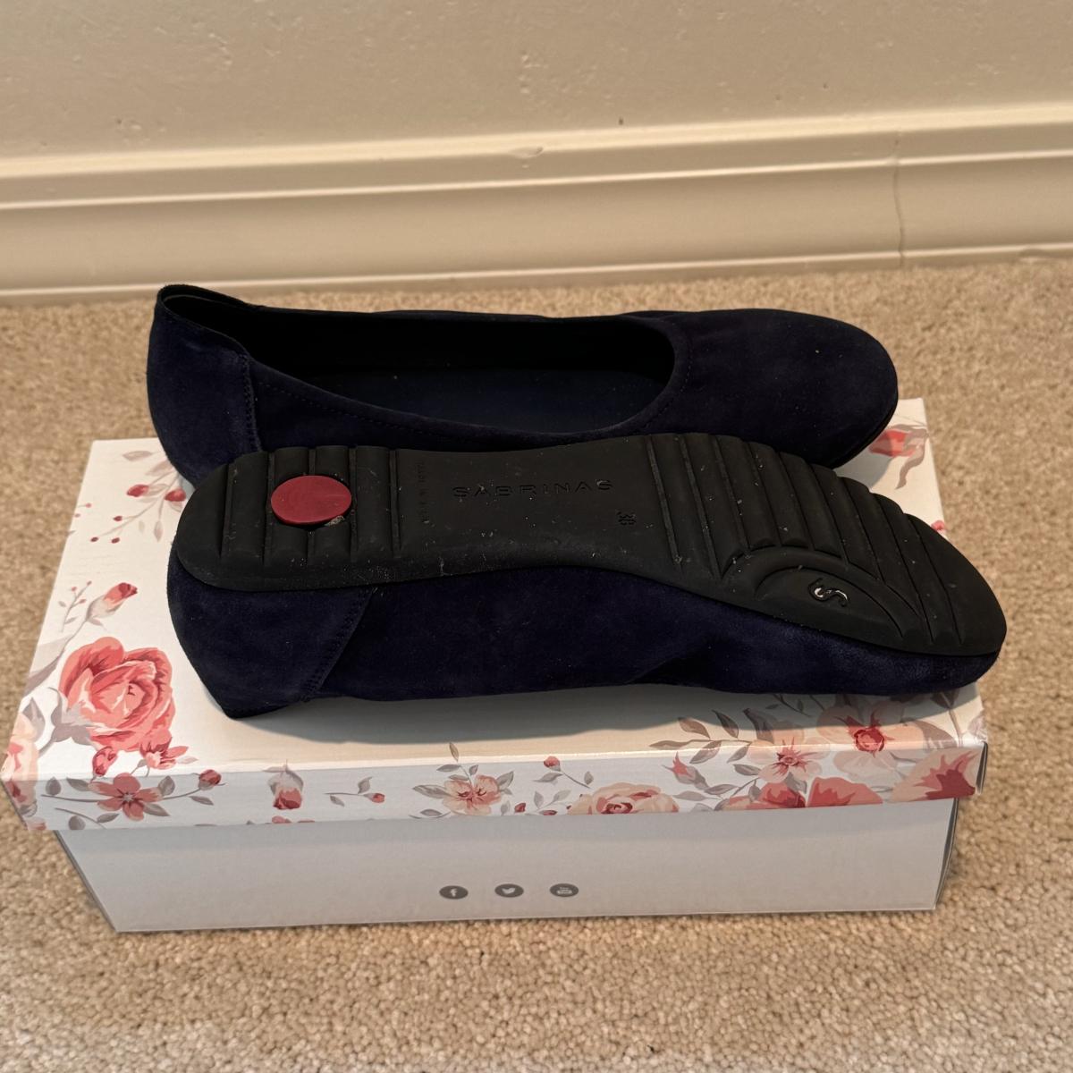 This lot includes one pair of Born handcrafted loafers in a size 6, one pair of unlabeled leather loafers in a size 6.5, one pair of Shaina Gold velvet flats with a bow on the toe in a size 6.5, one pair of leather FS/NY flats with a pom on each toe in a size 6.5, and one pair of Sabrinas navy suede flats in a size 7. All shoes are gently worn and come in their original box. Shipping available.