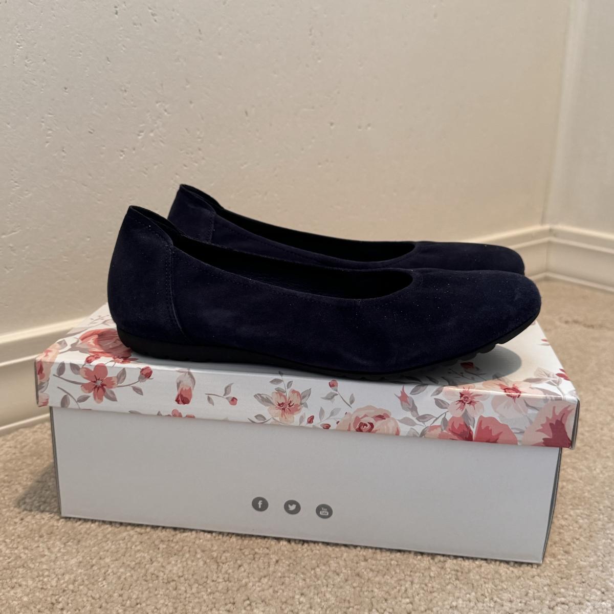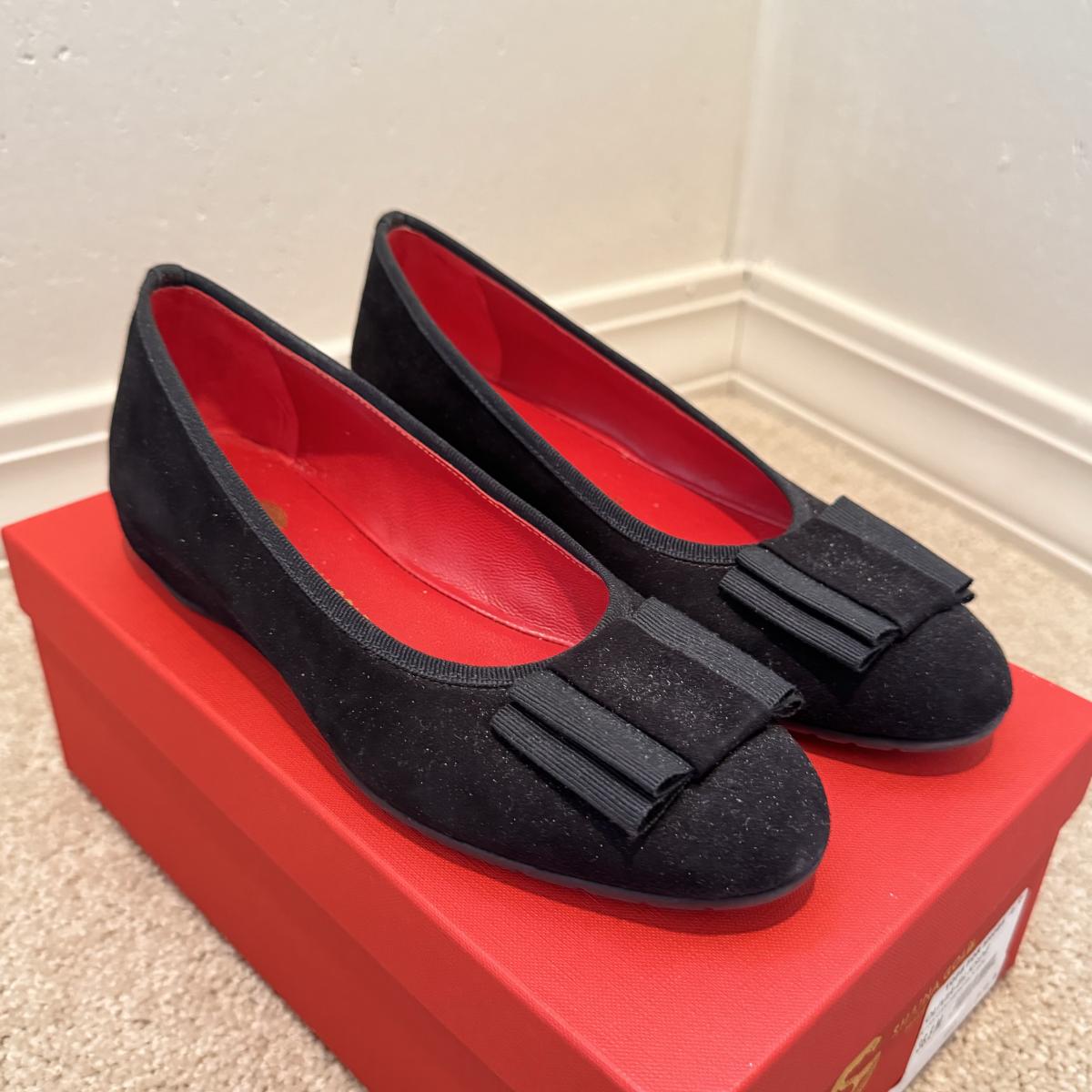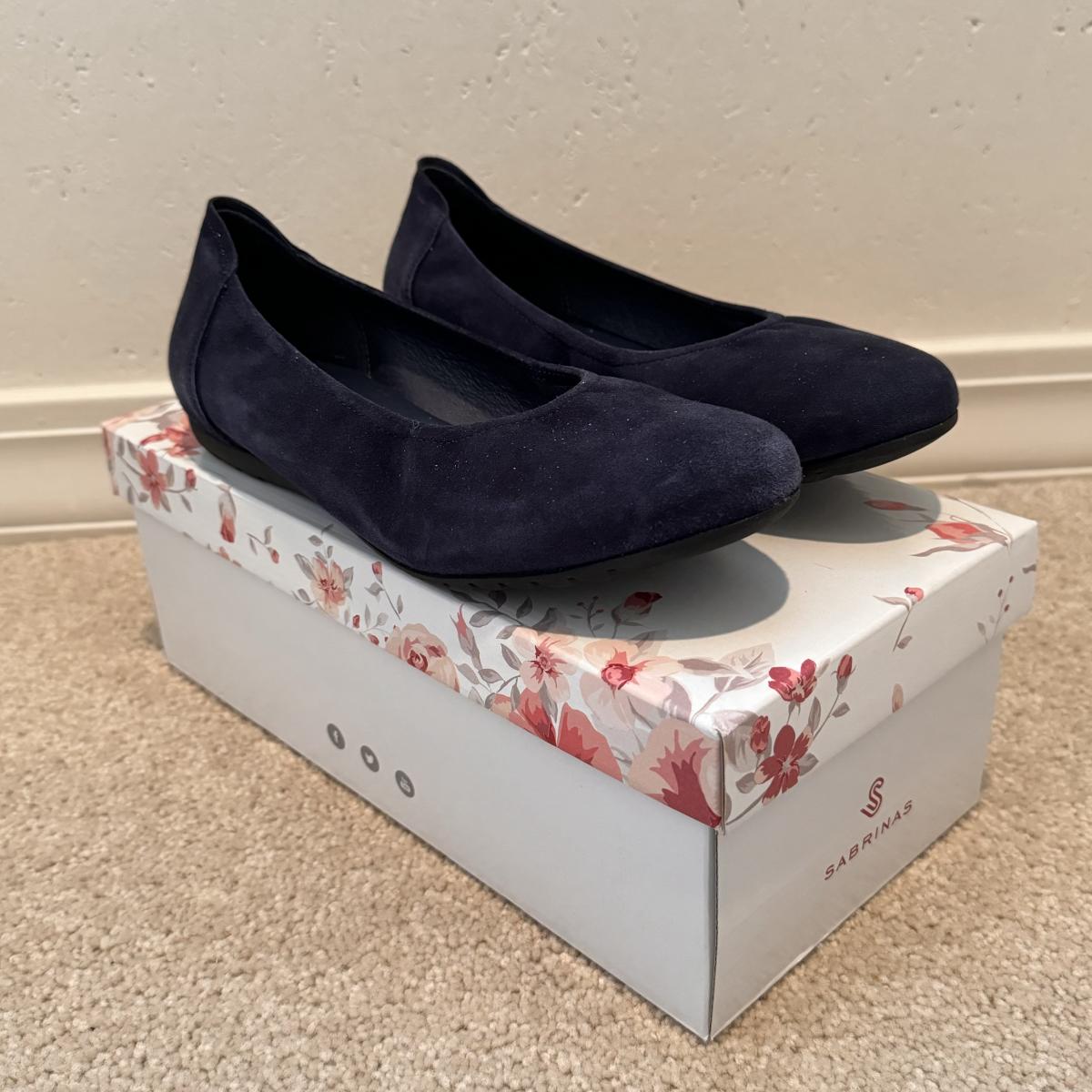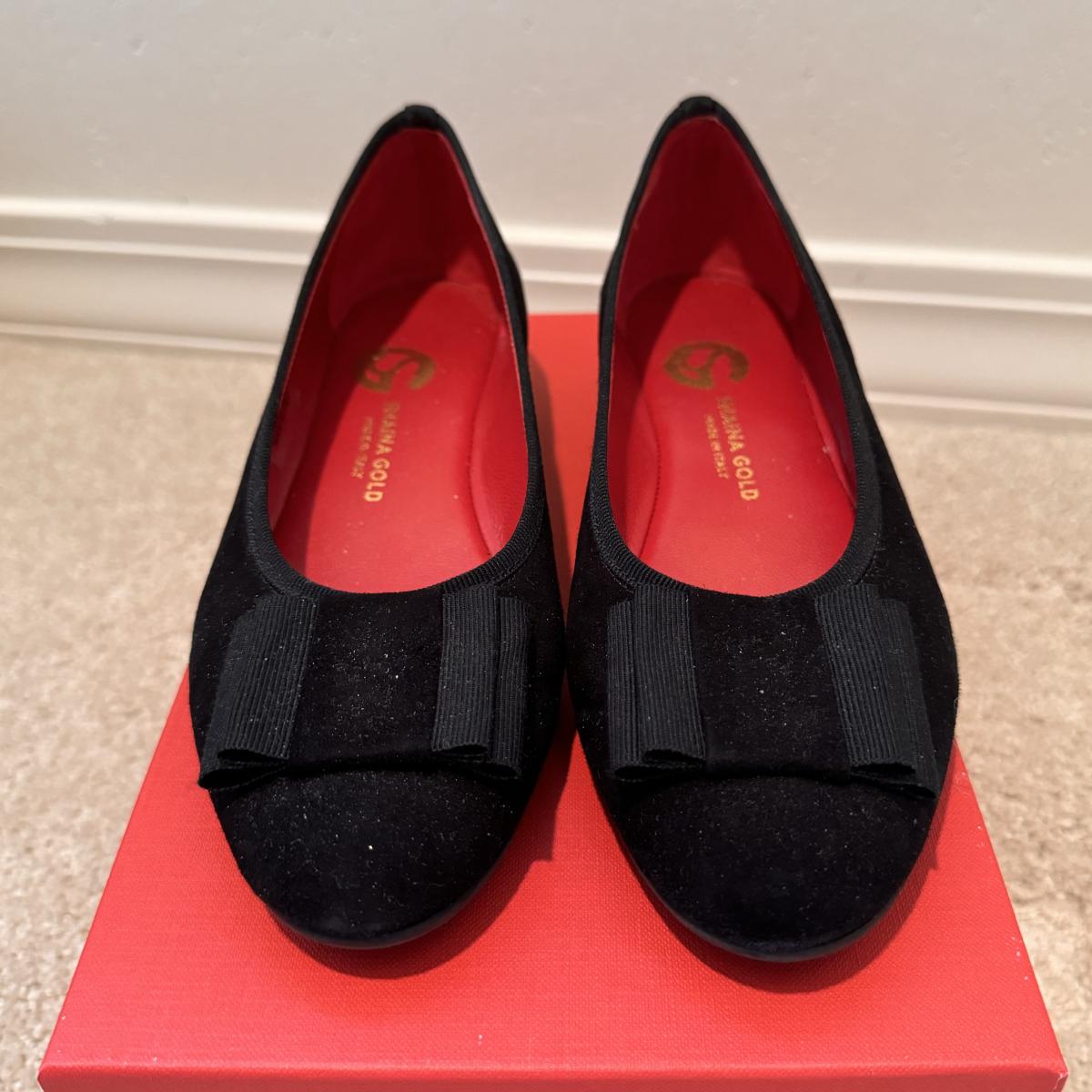 This lot includes one pair of Born handcrafted loafers in a size 6, one pair of unlabeled leather loafers in a size 6.5, one pair of Shaina Gold velvet flats with a bow on the toe in a size 6.5, one pair of leather FS/NY flats with a pom on each toe in a size 6.5, and one pair of Sabrinas navy suede flats in a size 7. All shoes are gently worn and come in their original box. Shipping available.