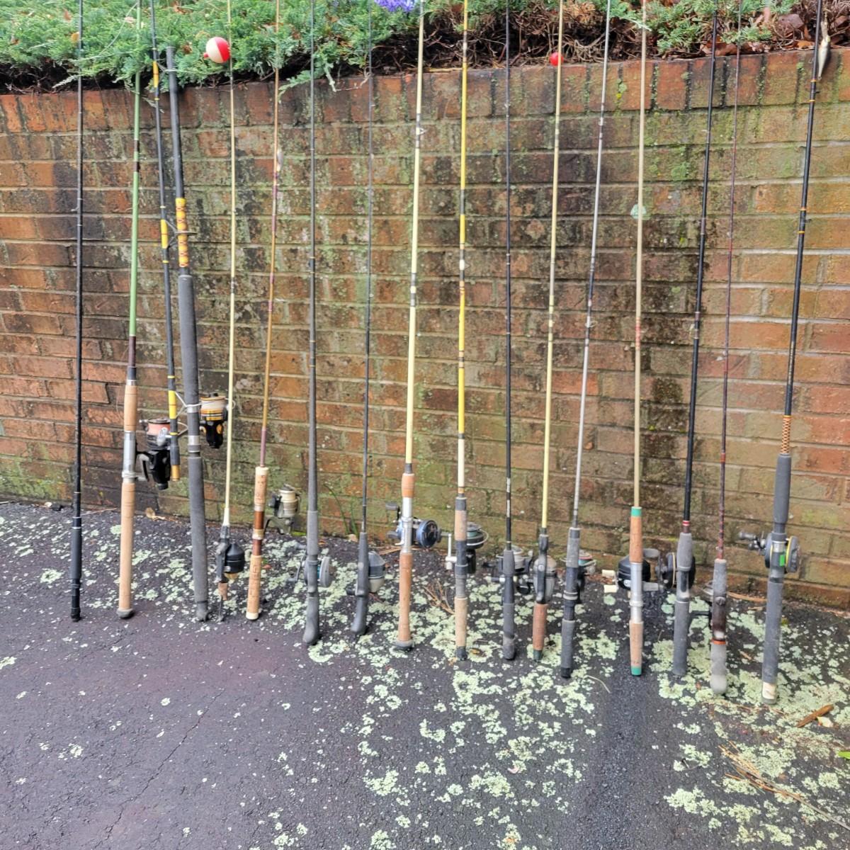 An assortment of 16 rods and 15 reels. These have been stored in a basement, so there is some mildew growing. Rods range from surf casting rods to general purpose freshwater rods. There is one fly rod without a reel. Rods are also a mix of graphite and glass. Thia lot also includes two Daiwa travel rods in cases. Local pickup only