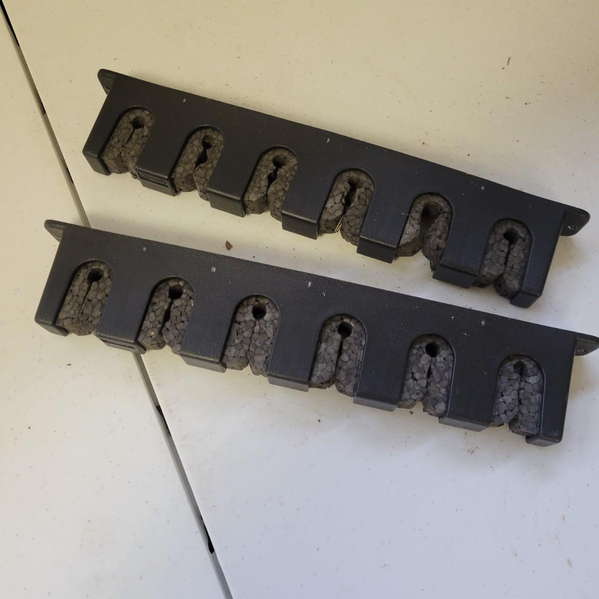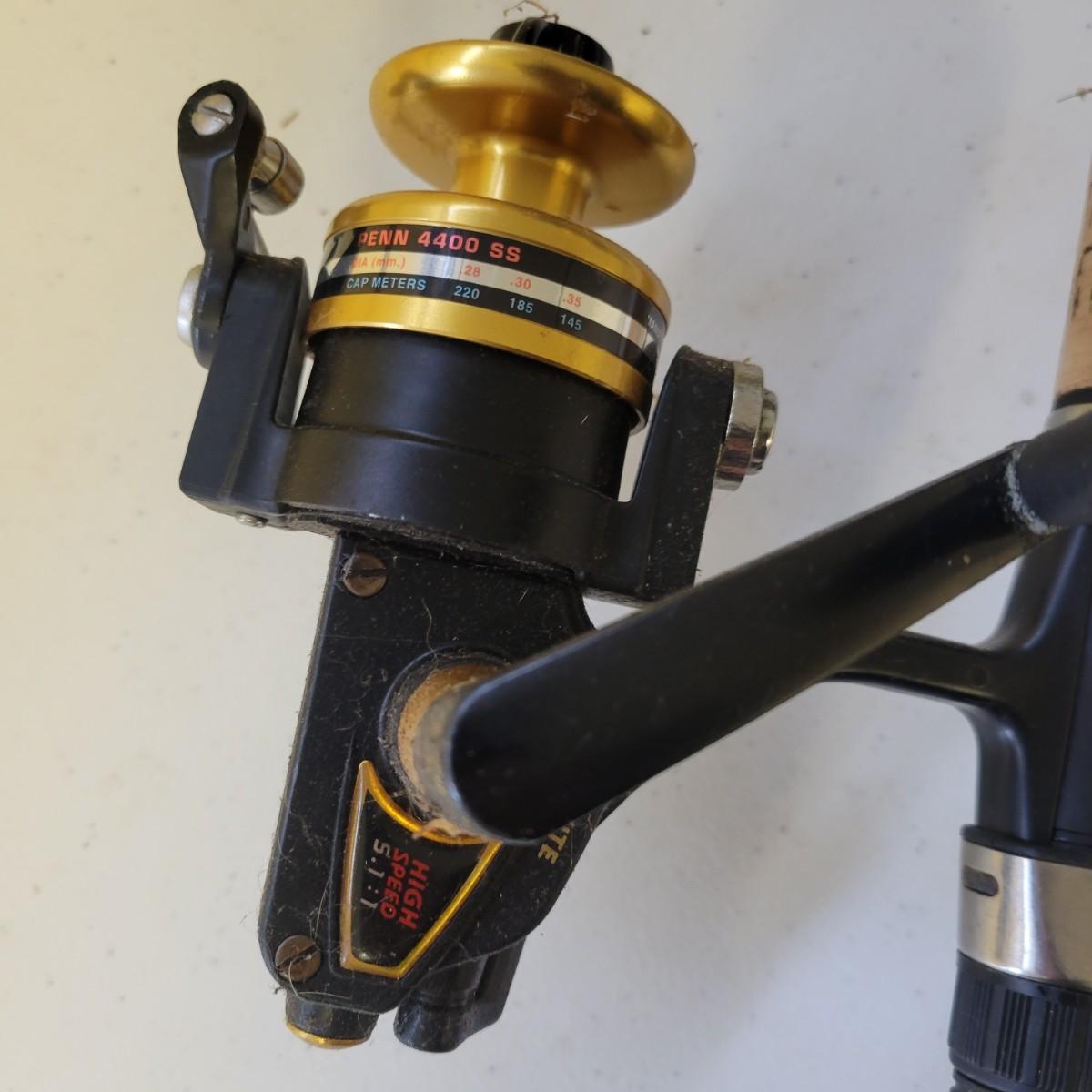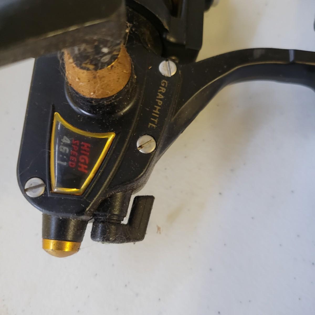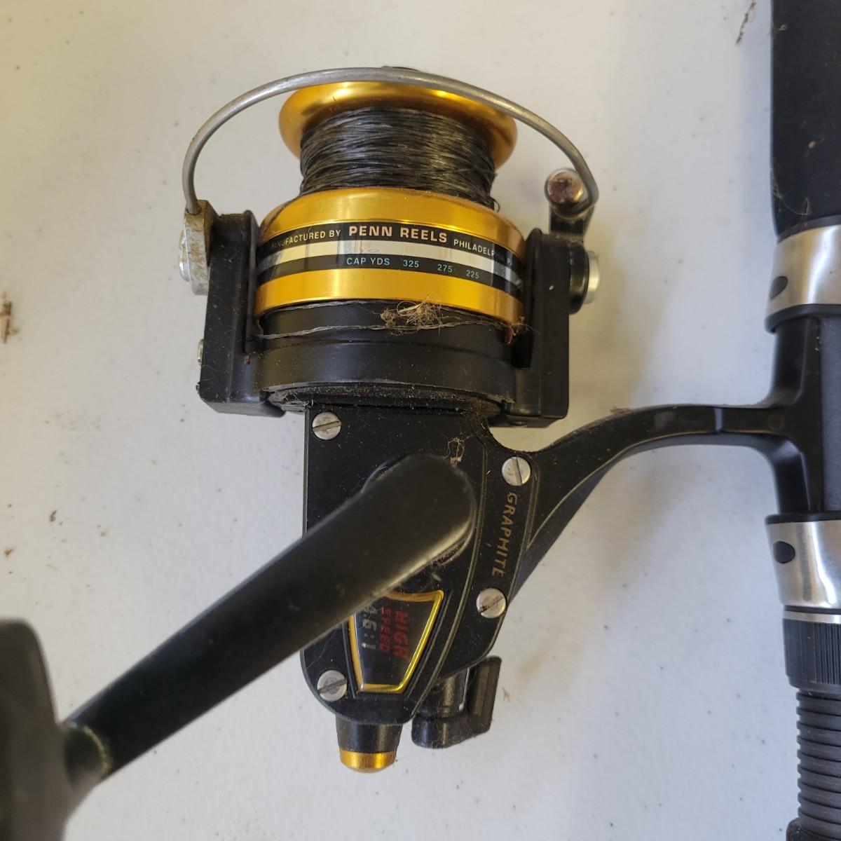 An assortment of ten rods and nine reels in good condition with no notable damage. The rods have no broken tips or missing guides. All reels have a smooth action and function as they should. The smallest rod is Shakespeare Ugly Stick at 5' and the largest rod is a Shakespeare Ugly Stick that is 7'. A variety of weights and actions ranging from ultra light to medium heavy. Lot also includes an extra samurai reel and a six slot, wall mounted rod holder. Local pickup only