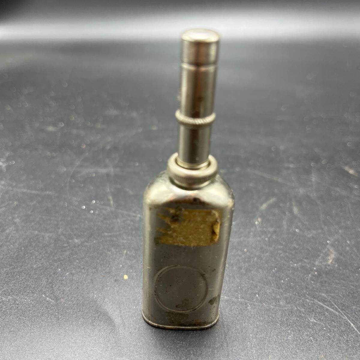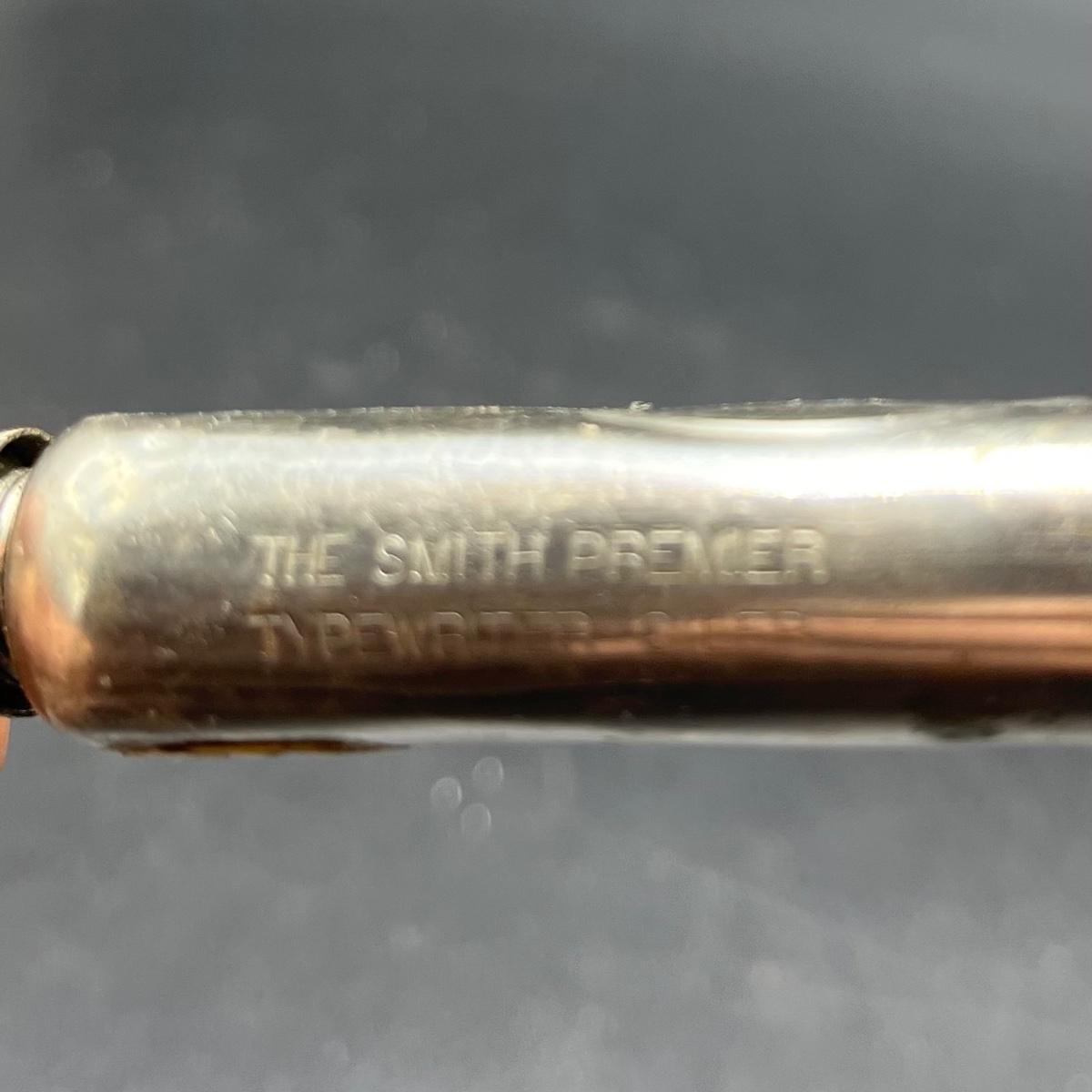 Lot includes a Shakespeare and Smith Co. typewriter and sewing machine oil cans. Also includes five unmarked oil cans and the painted one marked Japan. Largest can measures 3.25”D x 5”.
