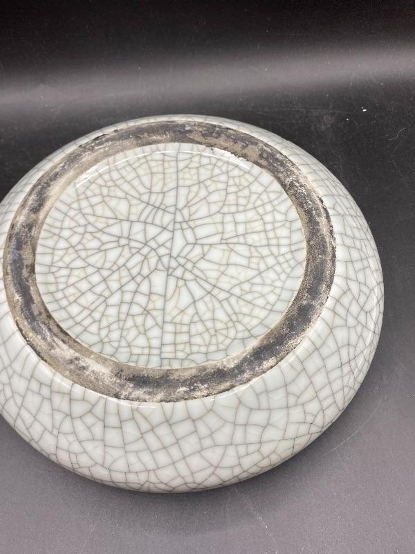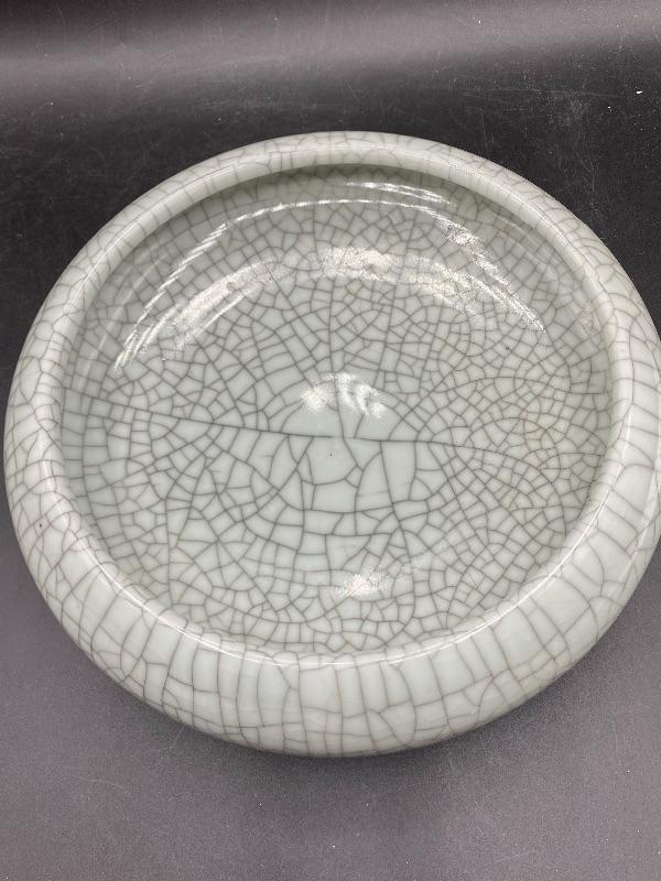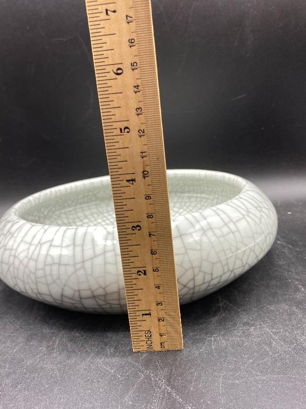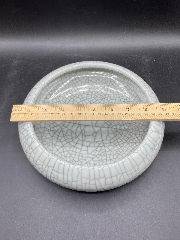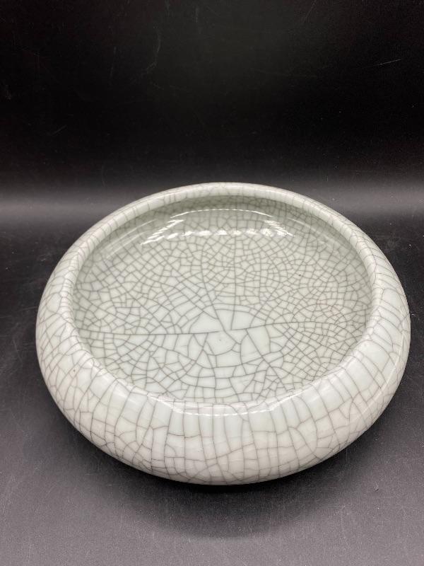 Heavy cracked/crazed finish planter pot. About 9" wide and 3" tall. Great darkened crazed finish. Displays nicely.