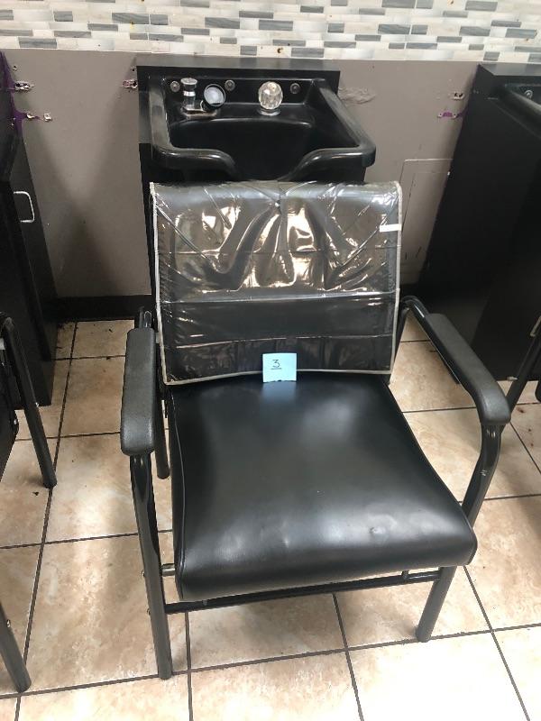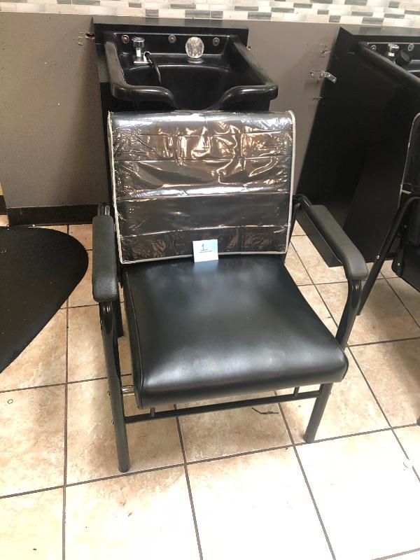 6 Shampoo chairs available. This auction is for 1 shampoo chair only.