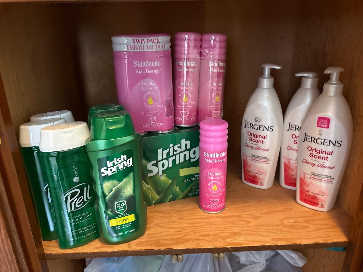 Shampoo, soap, shaving cream, and lotion