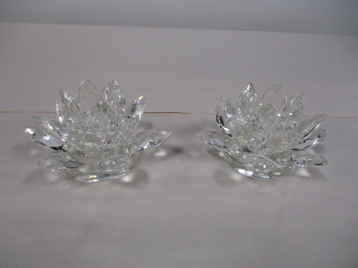 Shannon By Godinger Set Of Two Crystal Lotus Candle Holders