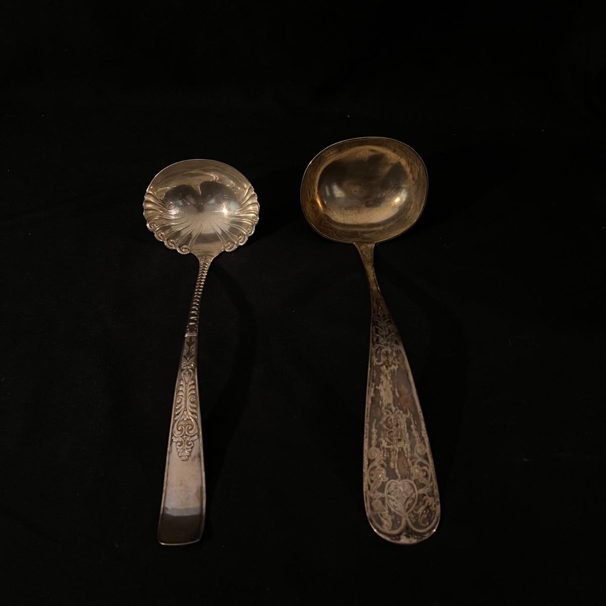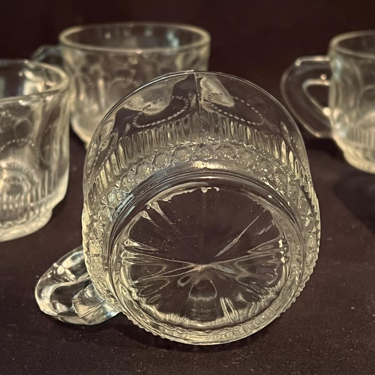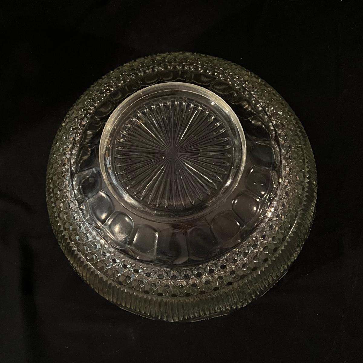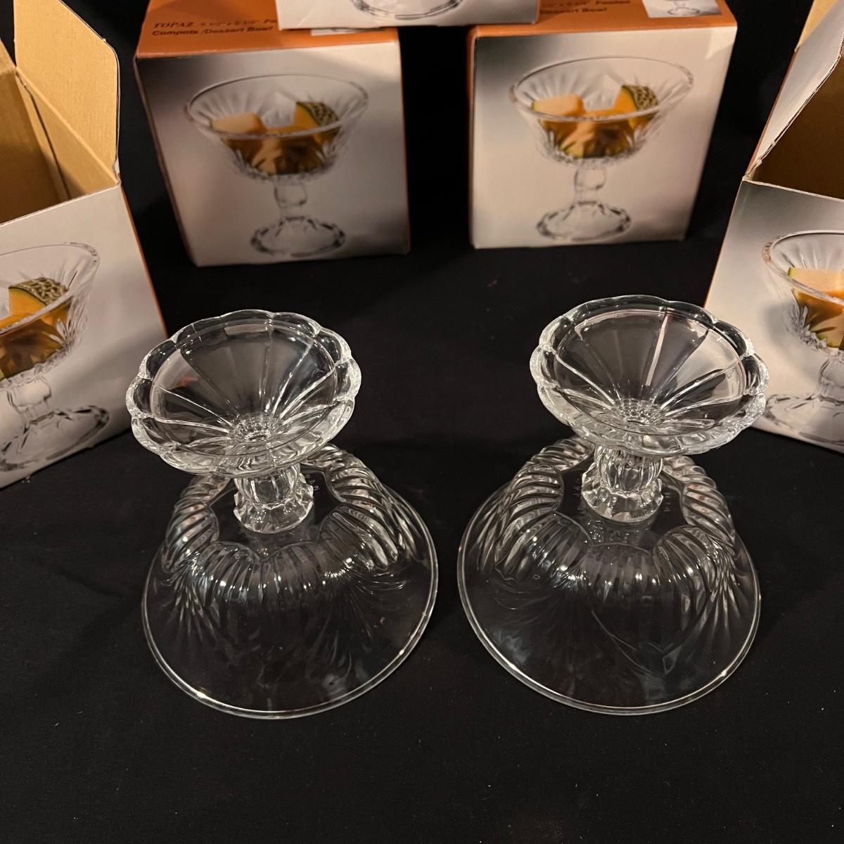 There are 29 glass teacups, one large serving platter, one large bowl, five Topaz footed dessert bowls, two silver serving spoons, and one Shannon Crystal by Godinger Brandon Bowl. The largest item is the circular serving platter that measures 23”D x 2”H. The smallest items are the glass teacups that measure 3.5”D x 2.75”H. Local pickup only.