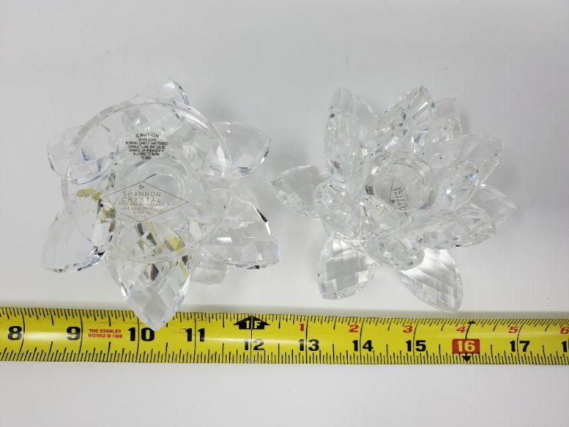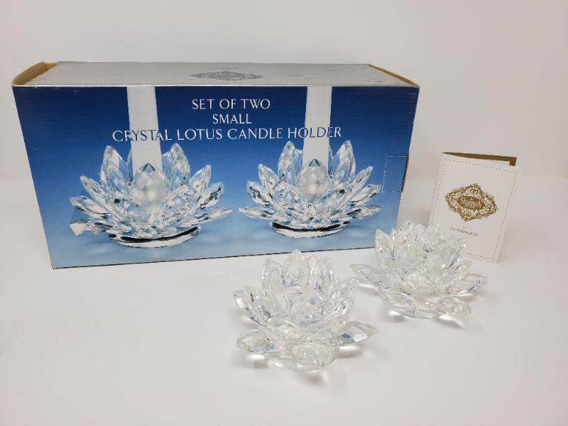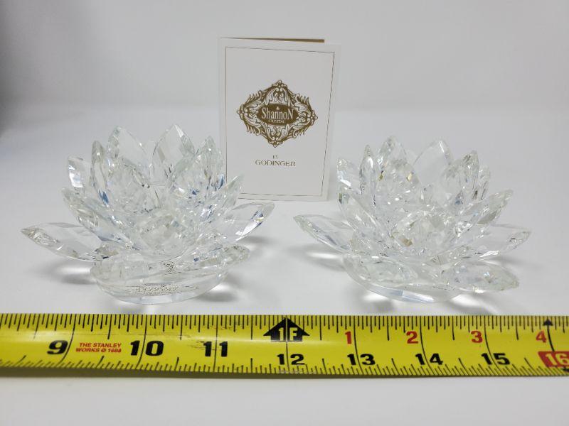 SHANNON CRYSTAL BY GODINGER SET OF 2 LOTUS FLOWER CANDLE HOLDERS
