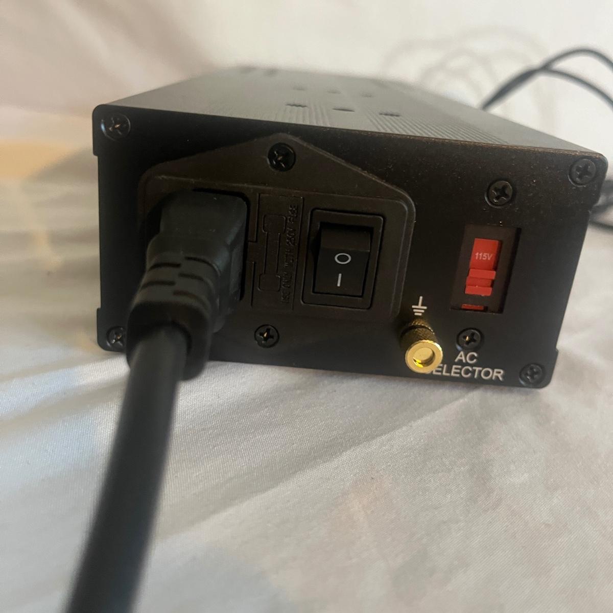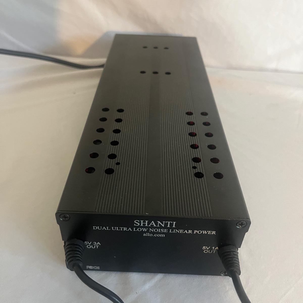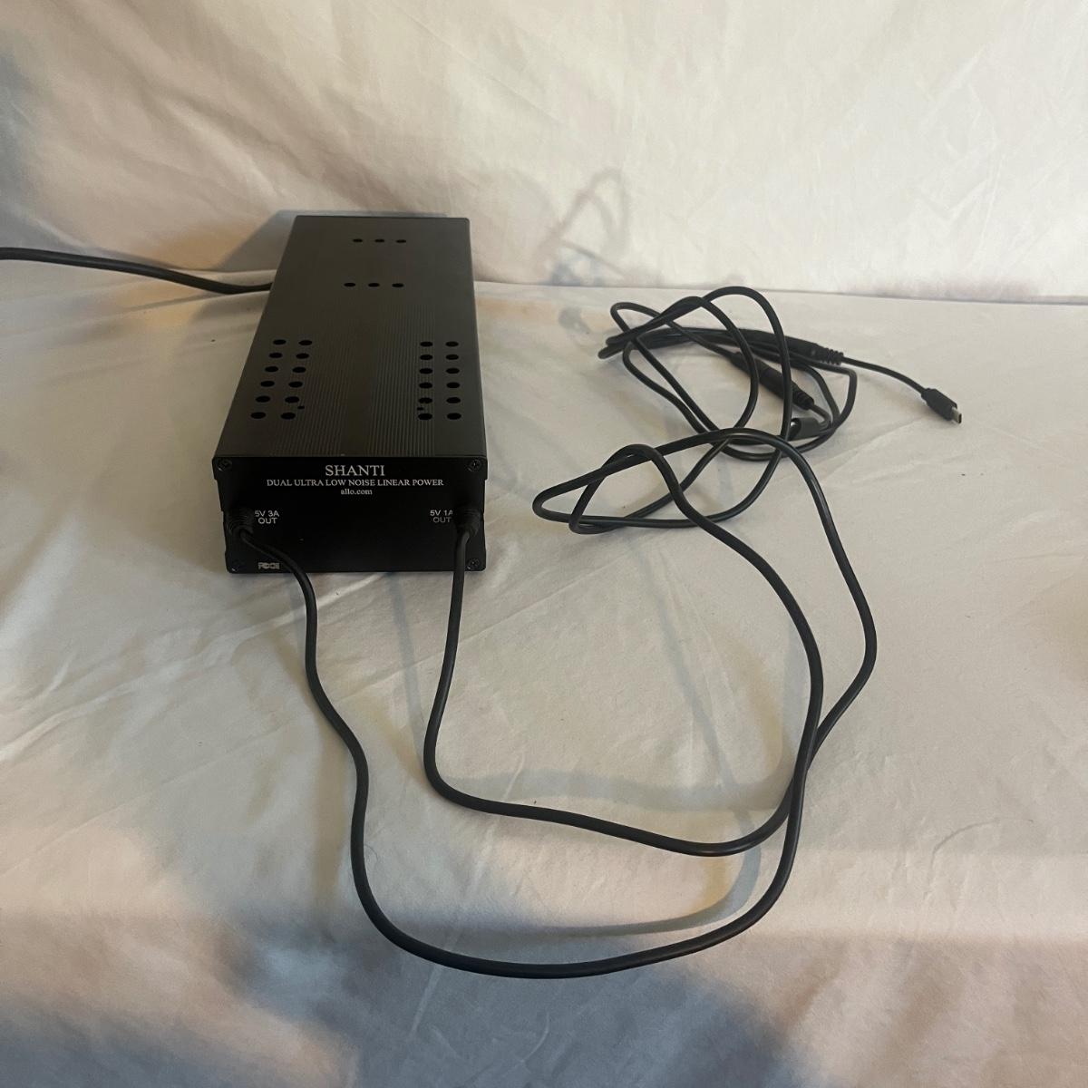 Lot includes a Shanti dual ultra low noise linear power supply with switchable voltage. Unit measures 4" x 12" x 2.25"H and powered on when plugged in.